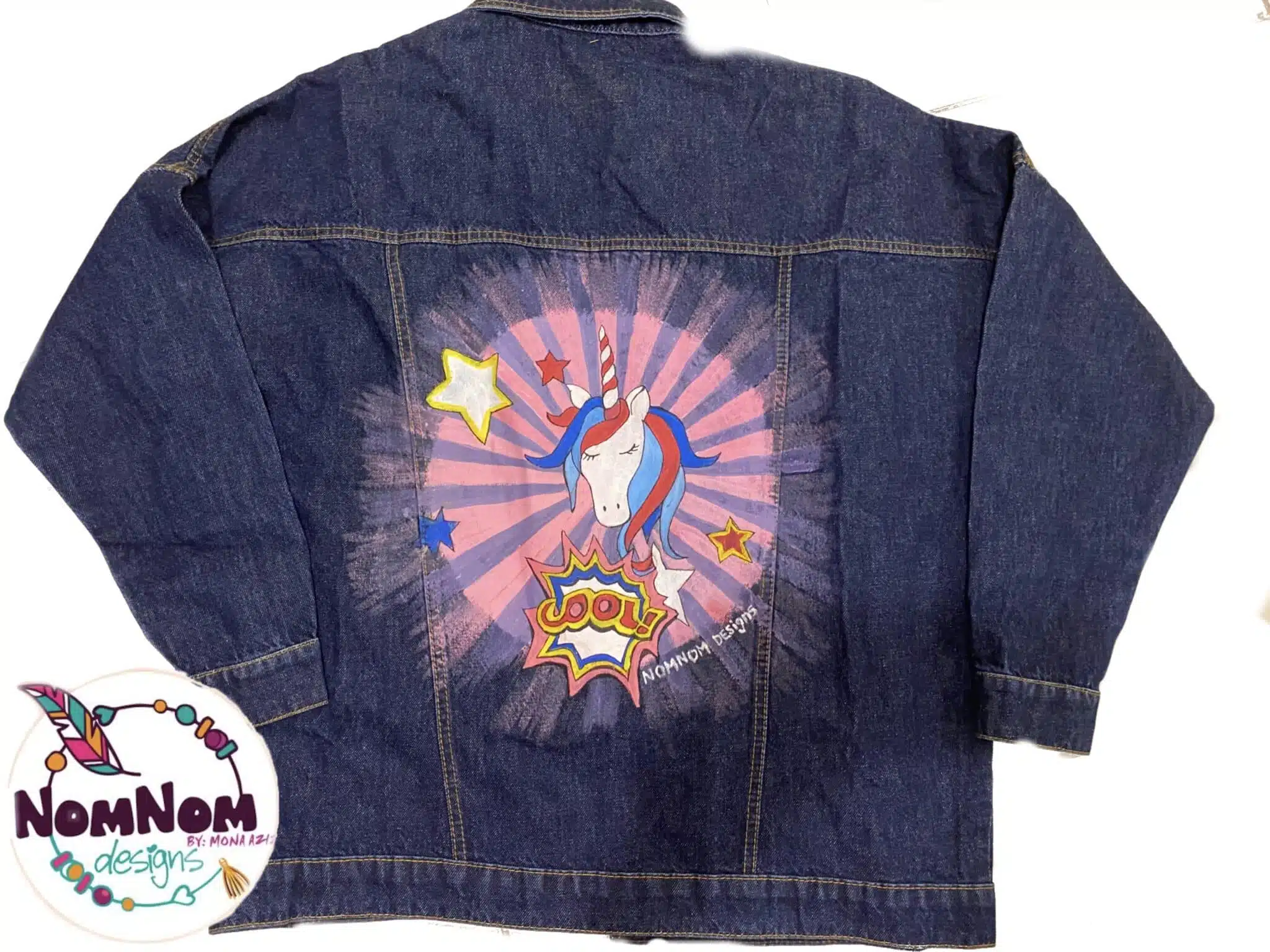 Handpainted Unicorn Themed Oversized Jeans Jacket