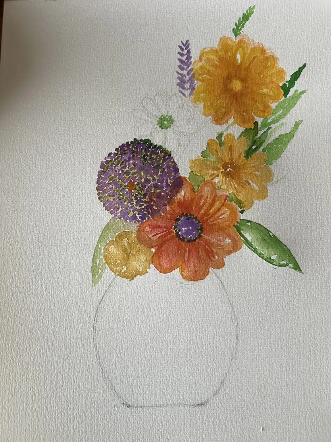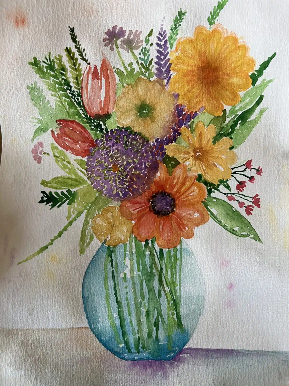Colorful flowers in a vase ,, size 21 x 31 .. watercolor.