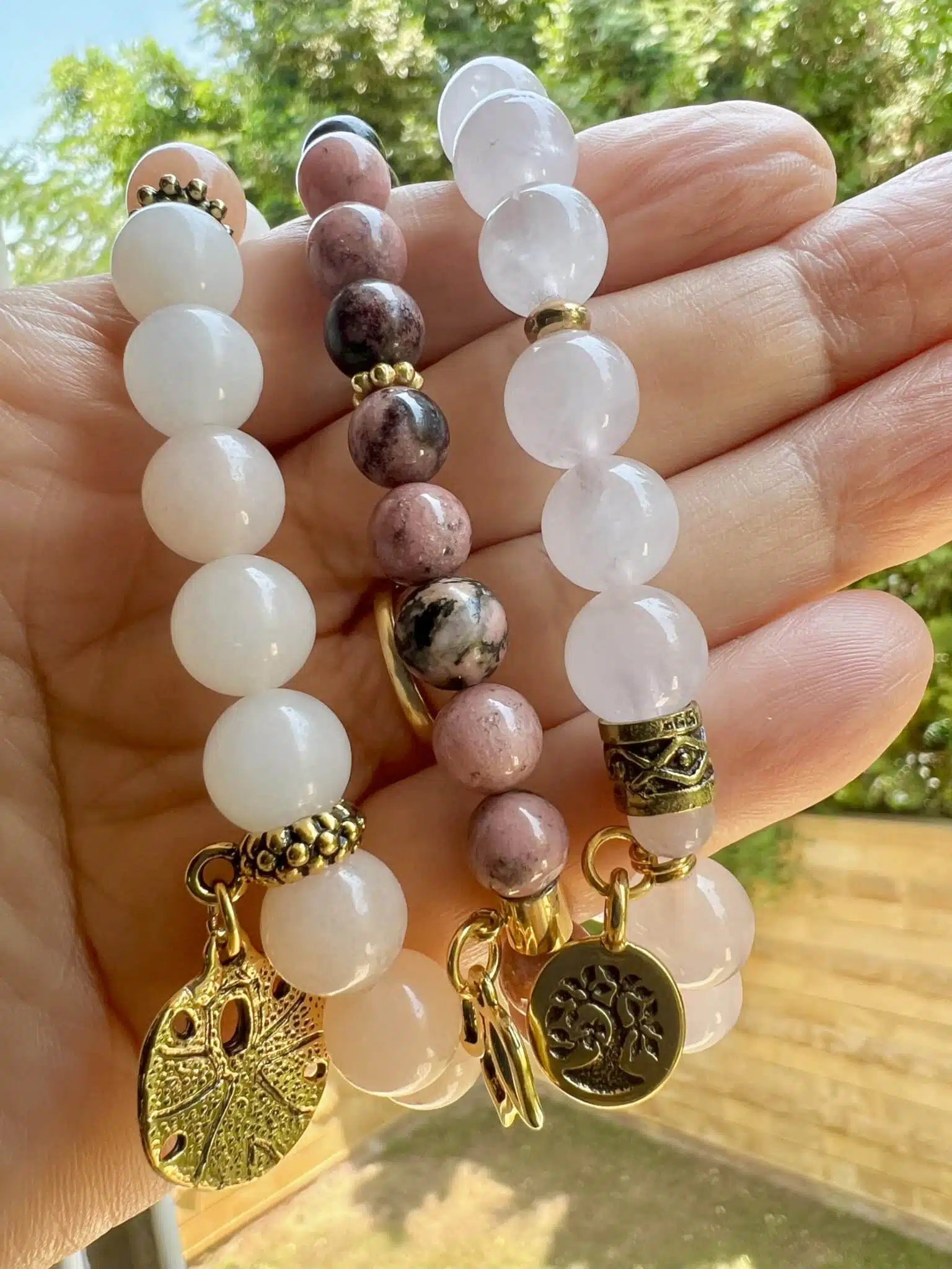 opal pink, Rhodonite, Rose quartz, gemstone.