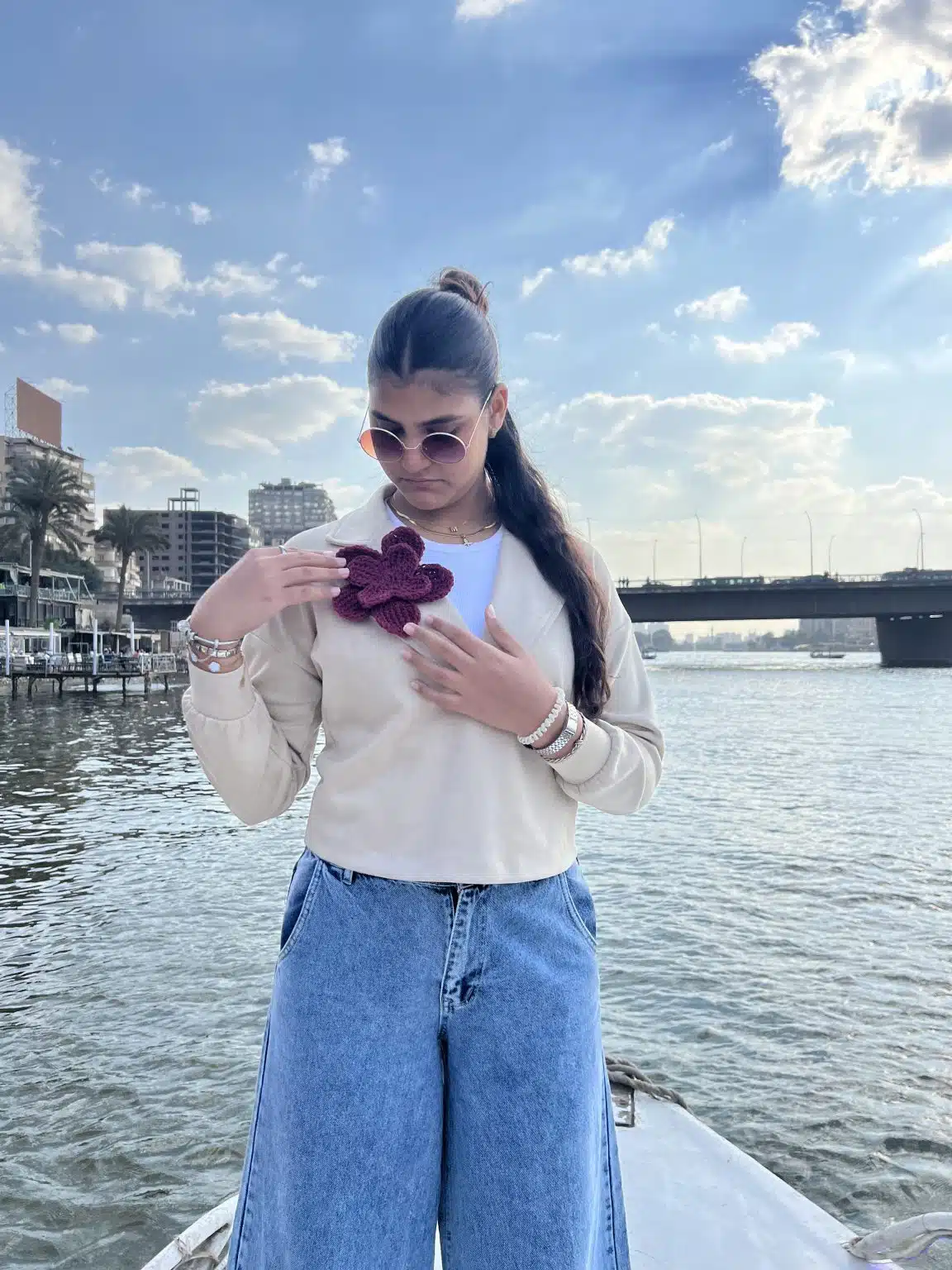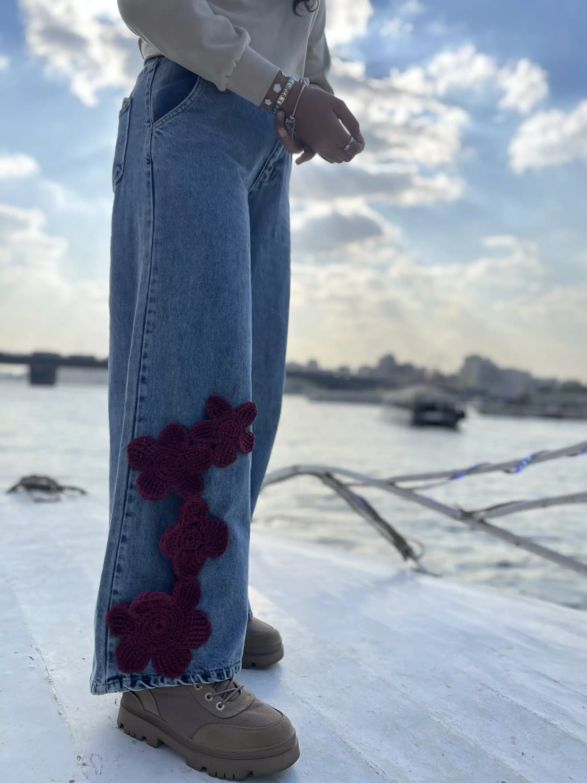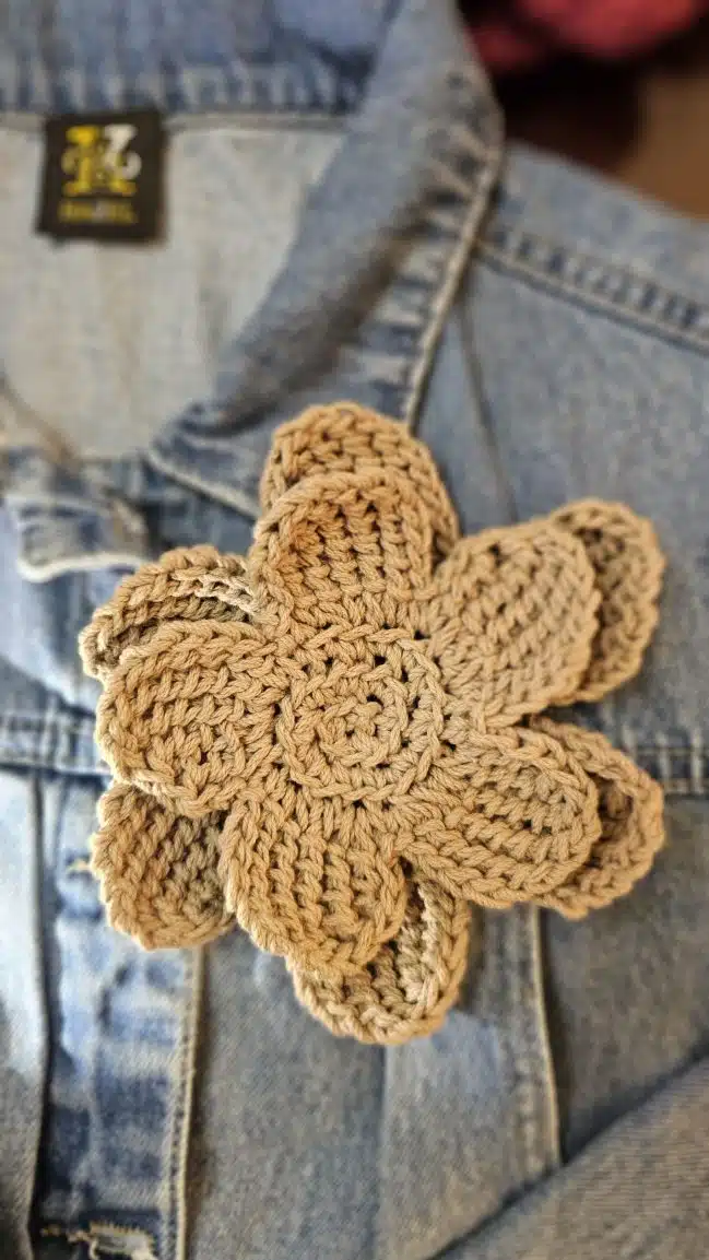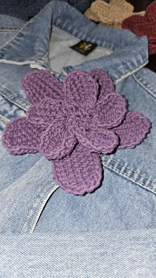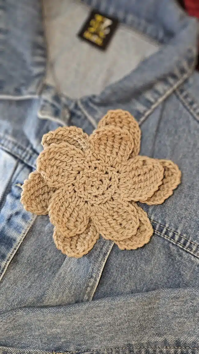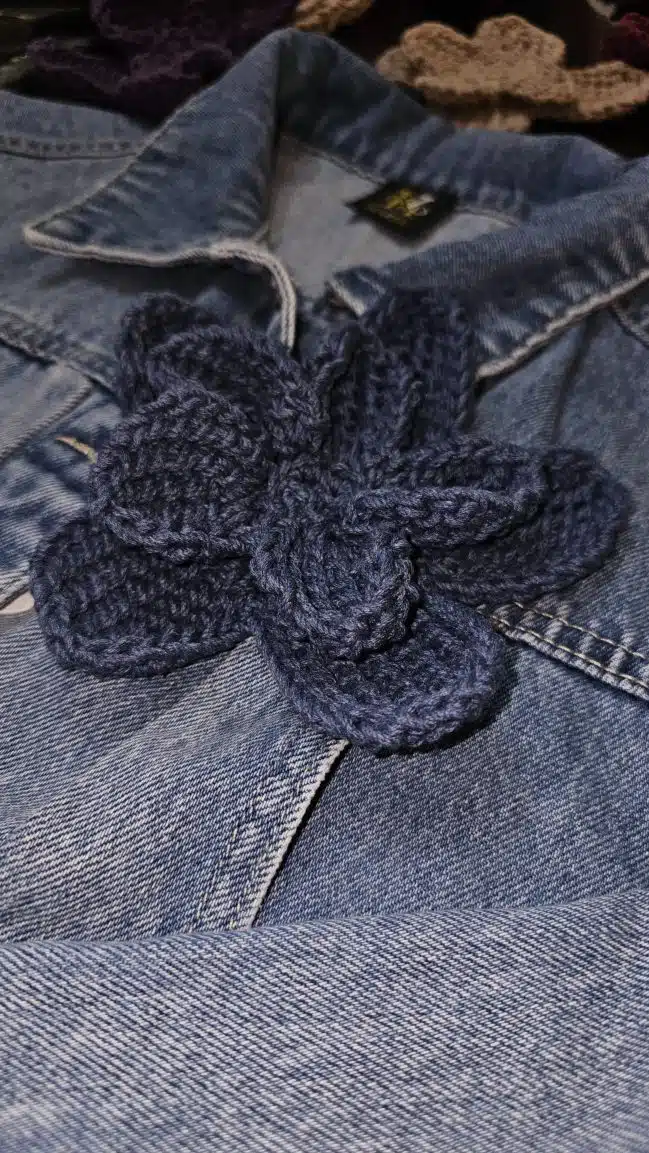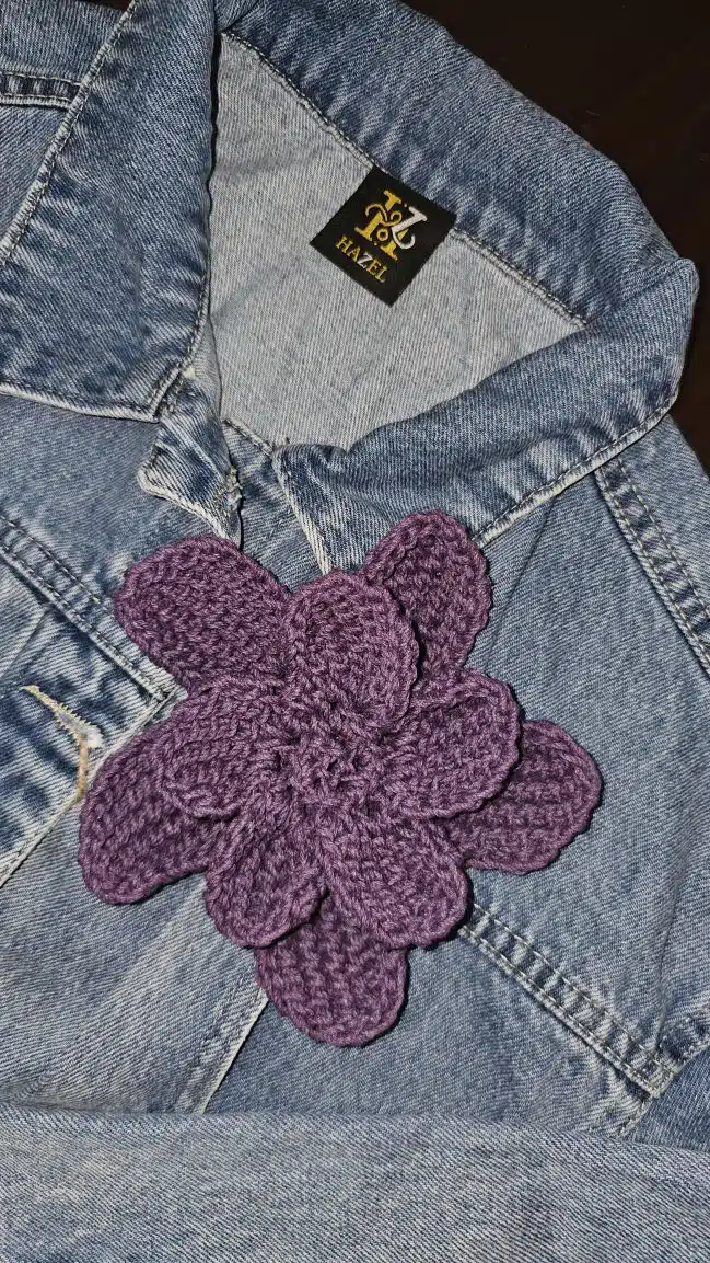 HAZEL Crochet Flowers are 3D-shaped and come in a variety of stunning colors: gold, beige, blue, purple, and dark red, adding a unique, textured touch to any outfit or accessory.