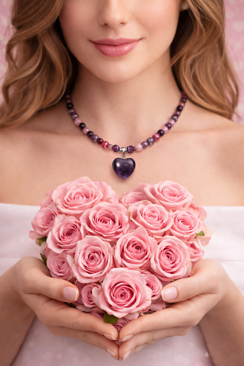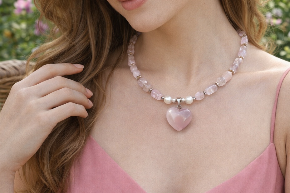 Pretty handmade necklaces, beautiful color , you can choose between Rose Quartz, Jade, Amethyst. With beautiful heart pendant