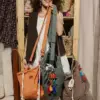 شنطة من الكتان الثقيل لون زيتي مع ميدالية بدوية