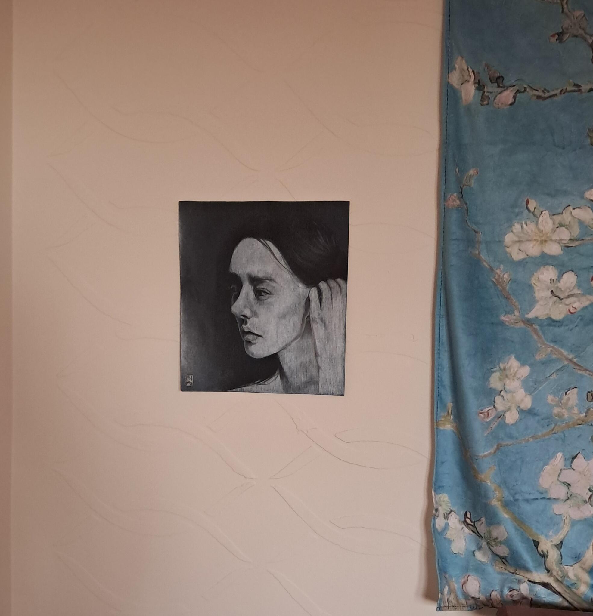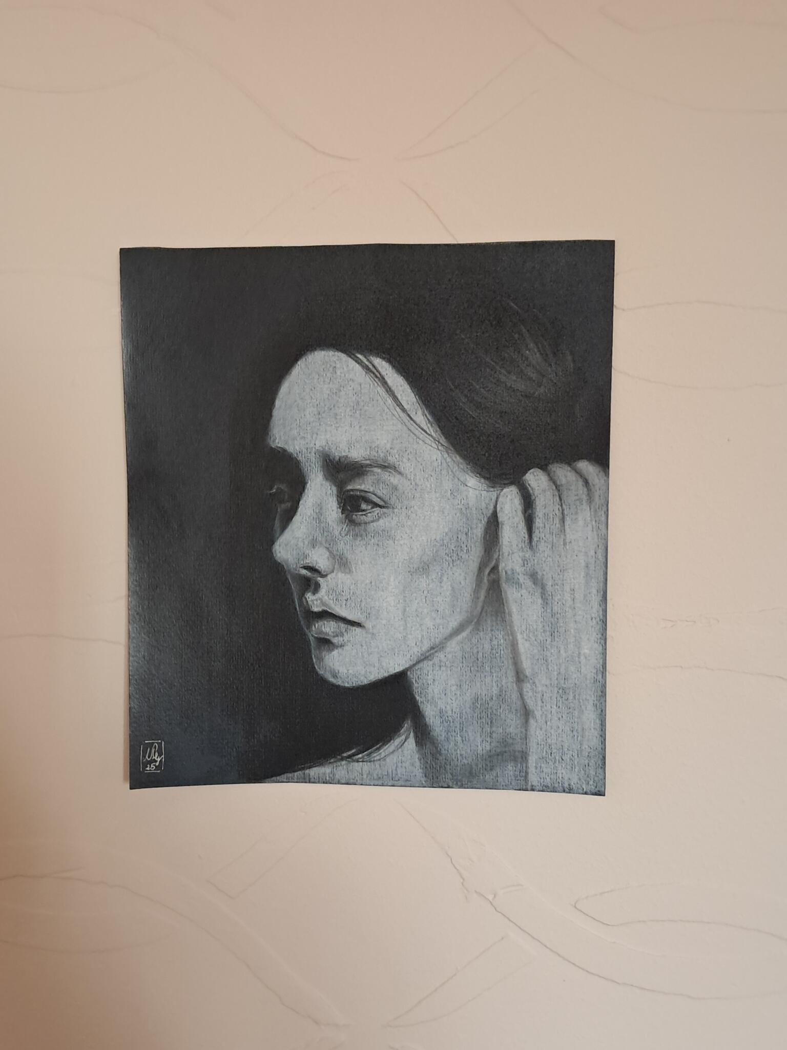 A unique piece made with much love, care and passion, looking for a forever home. A realistic portrait with accentuated features and dreamy vibes. A glimpse of a moment, a feeling with minimalistic details that adds a touch of elegance, style and emotion to your wall. perfect for living room, bedroom, reception, or any space that can use a piece that adds glamour, dreamy vibes and inspires creativity. Each painting conveys deep emotions and carries a piece of the artist’s soul, but most importantly, carries a story waiting to be told only by the viewer.