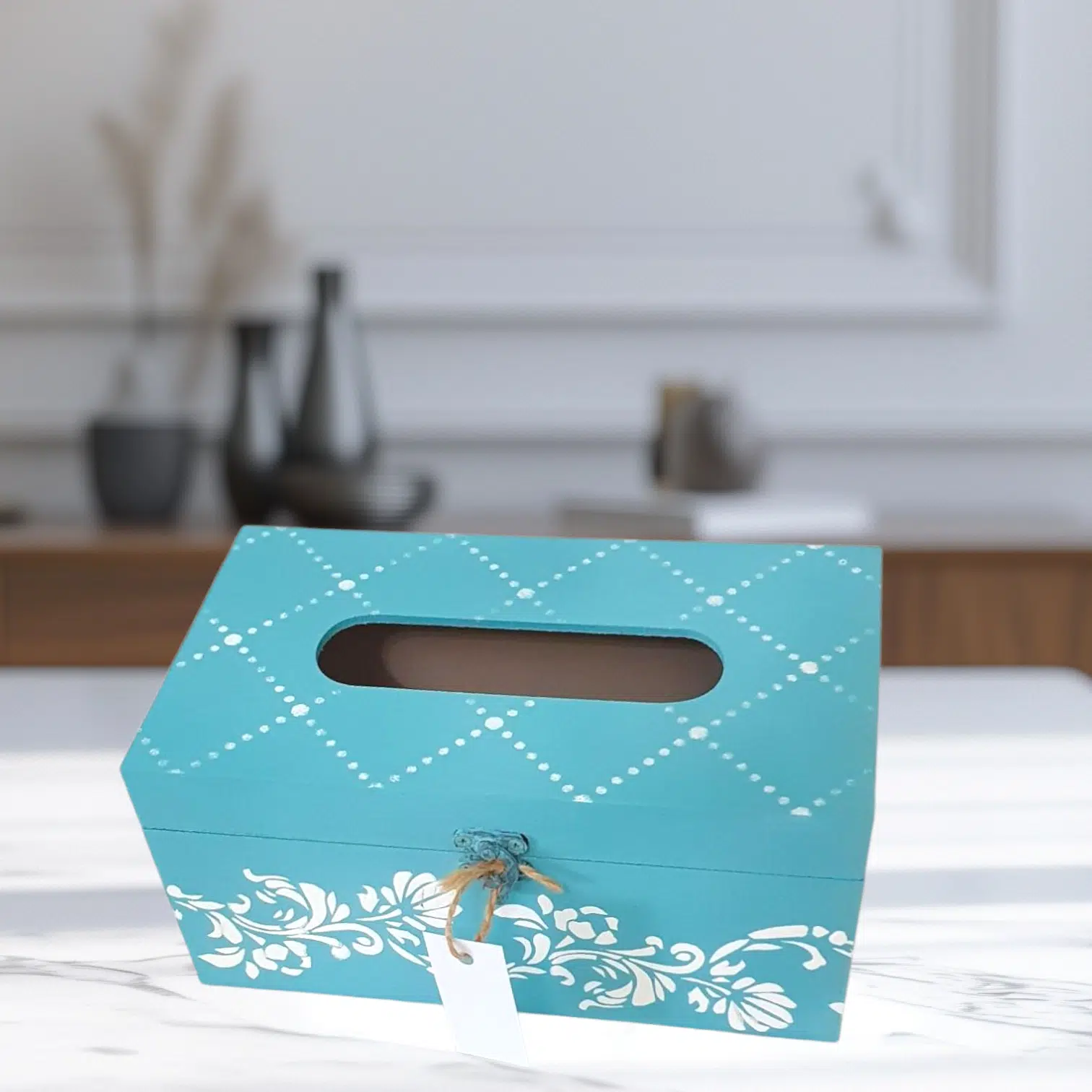 Set includes a tissue box, set of coasters, basket (can be used a a bin or a plant pot).