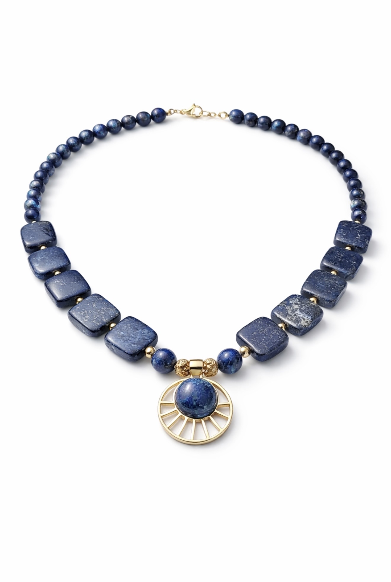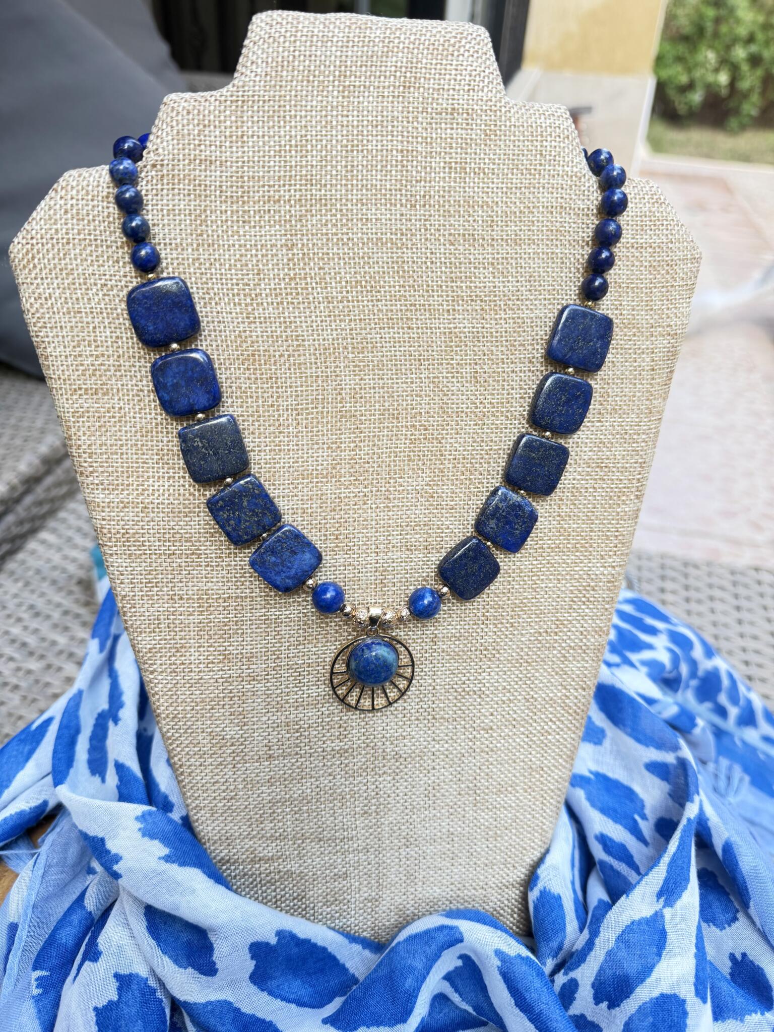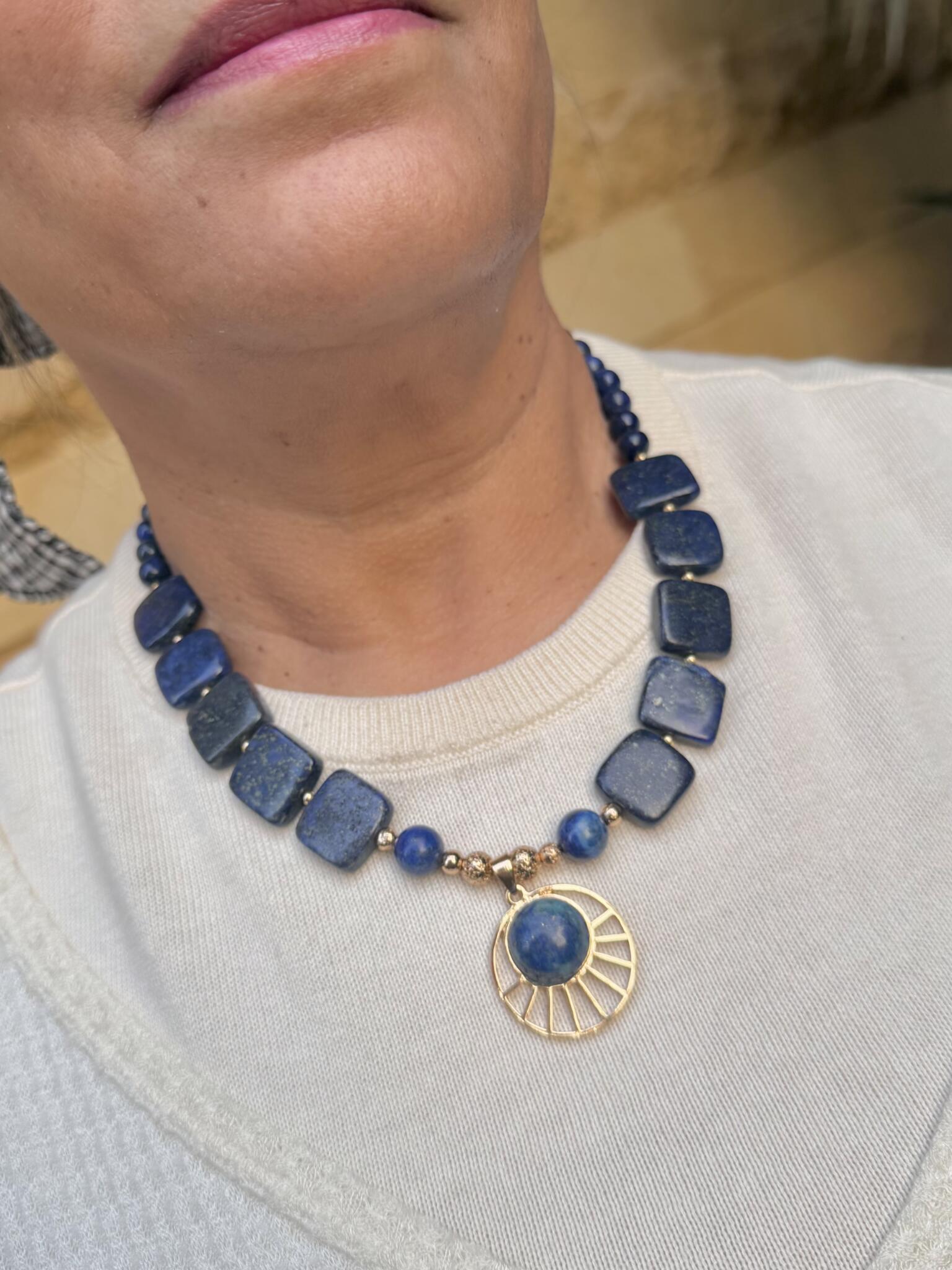 with statement lapis gold plated imported pendant.