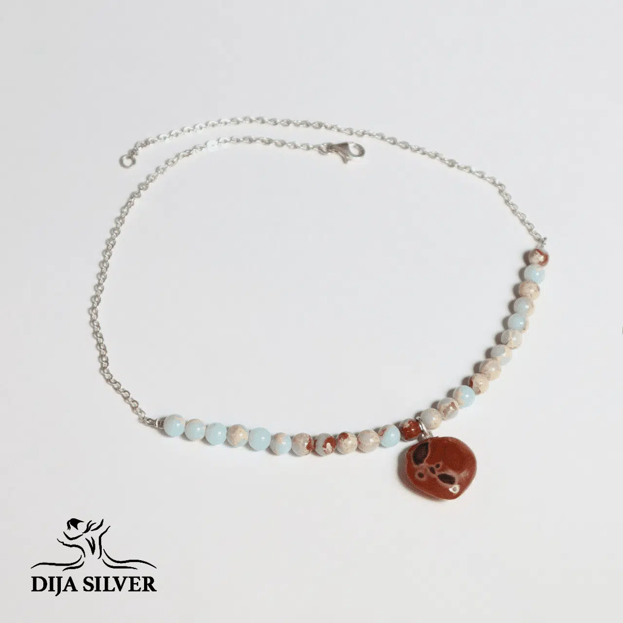 silver 925 necklace with indian agate , brownish amazonita stones