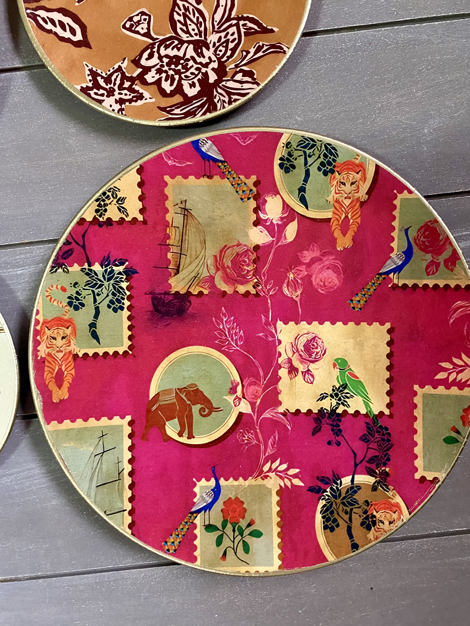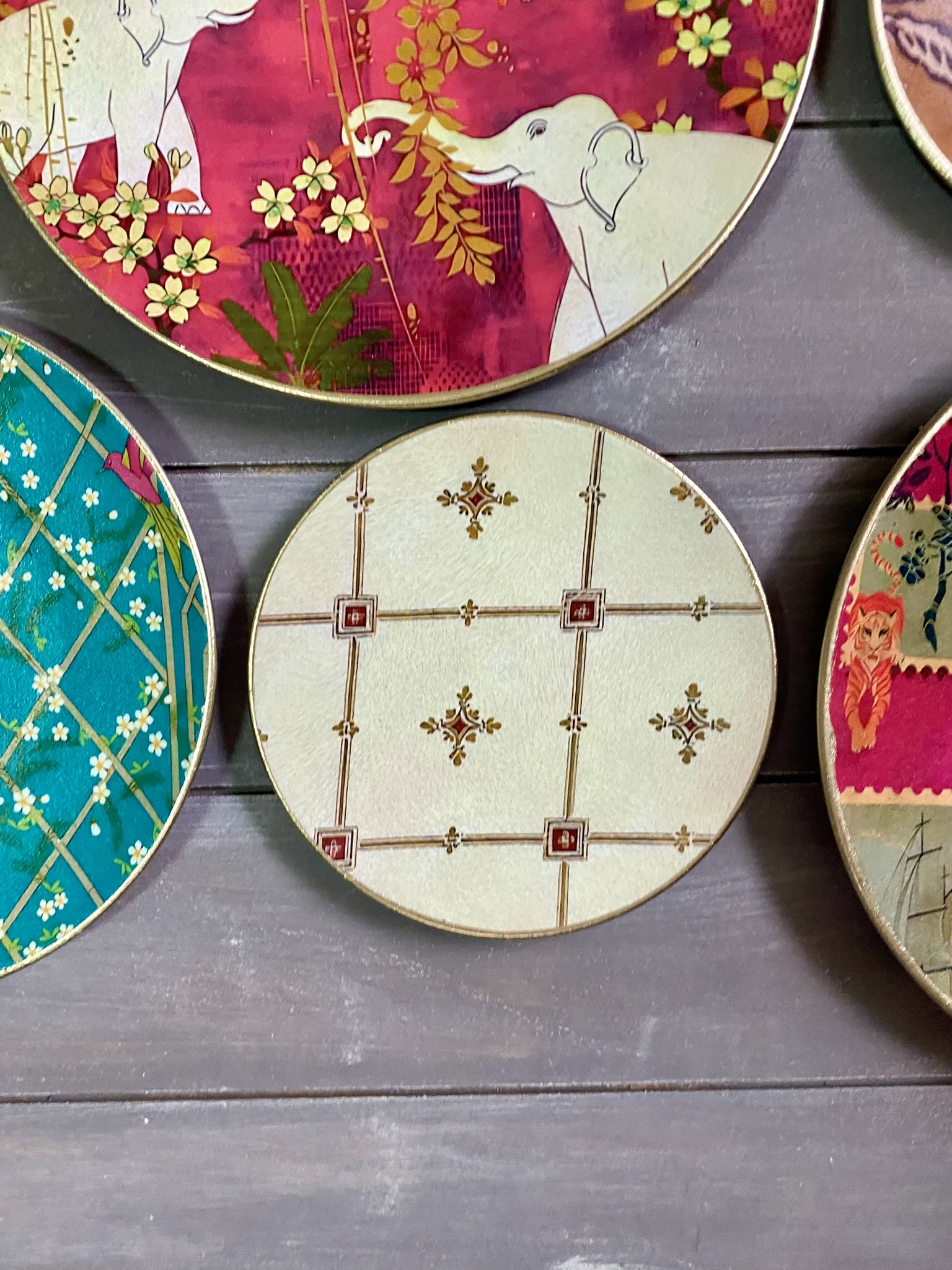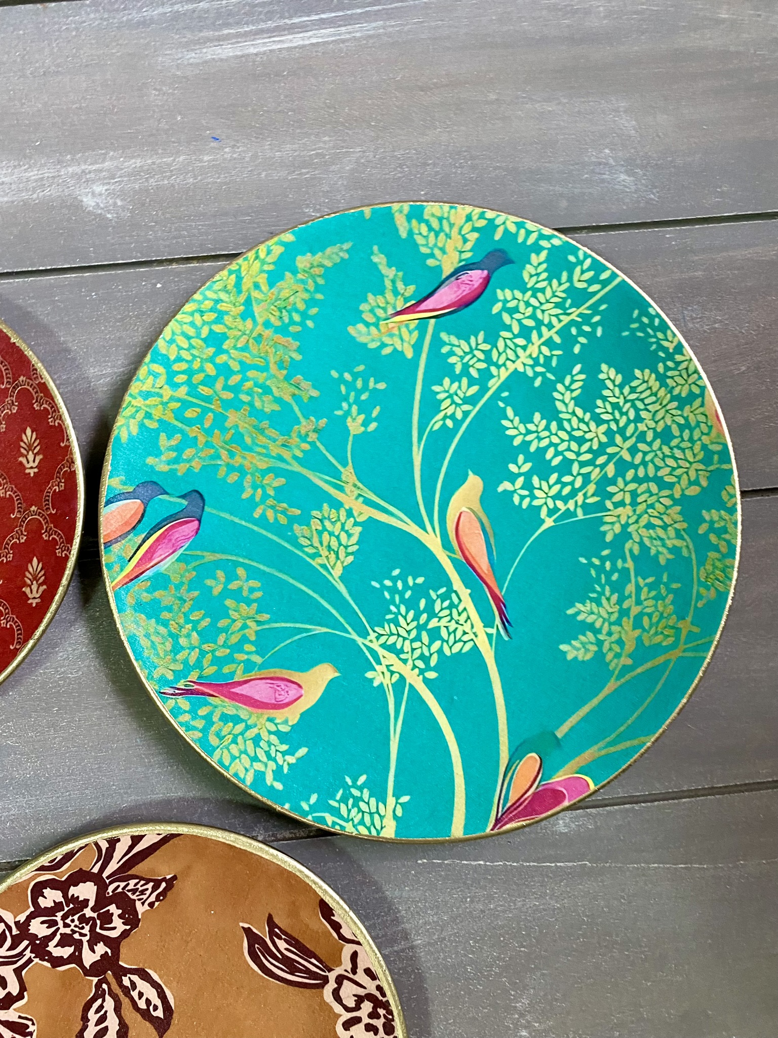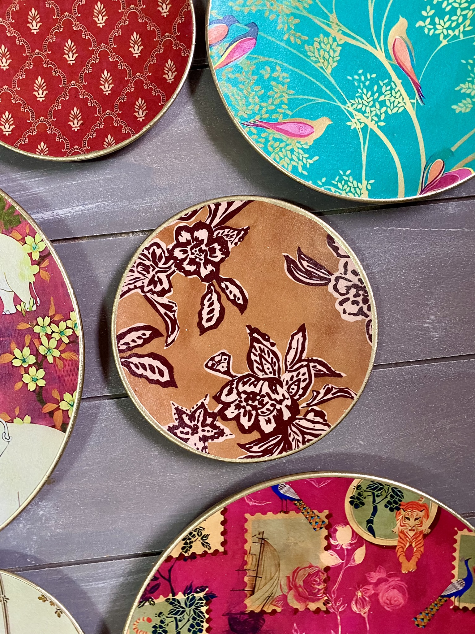 Decoupaged wall plates in indian patterns