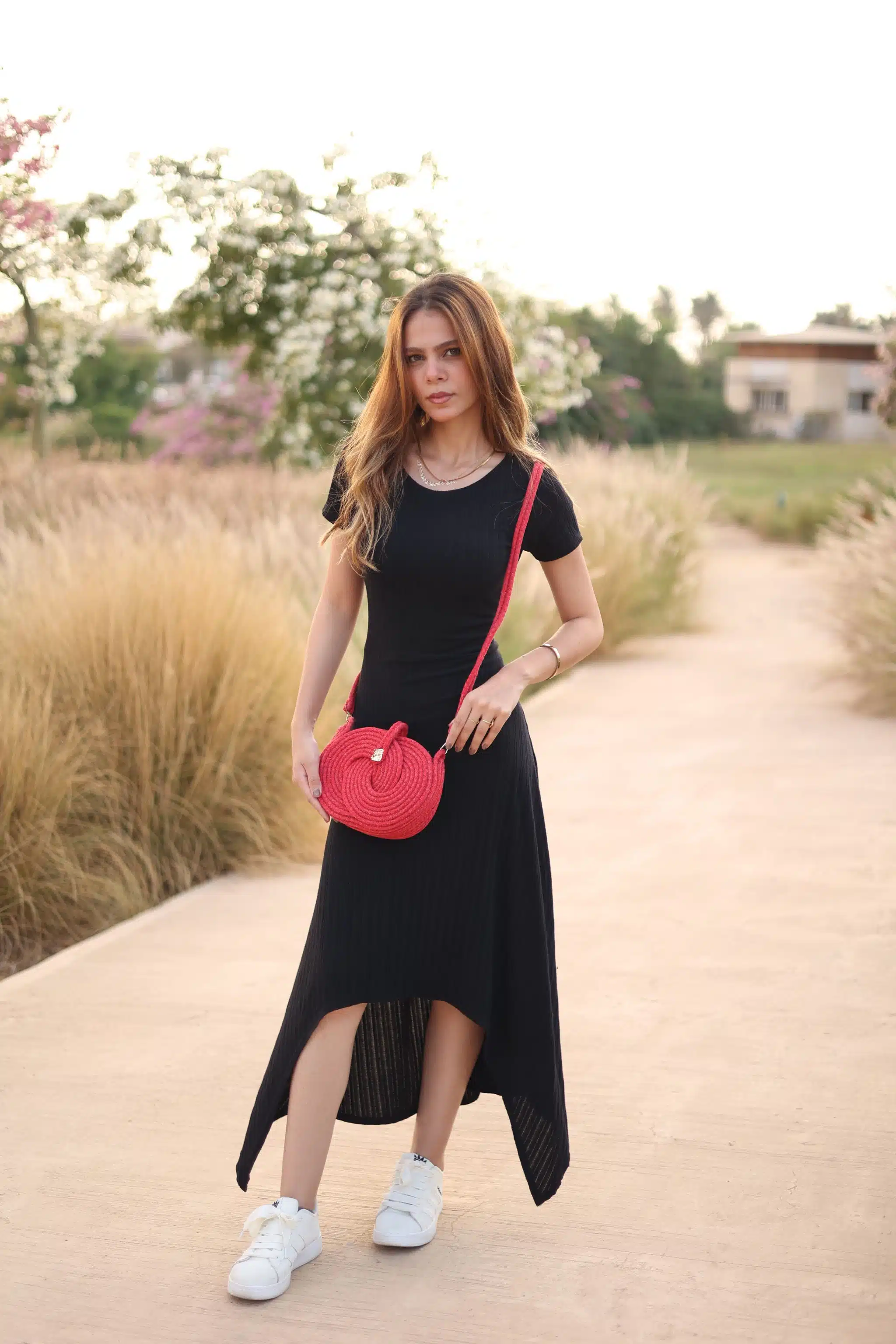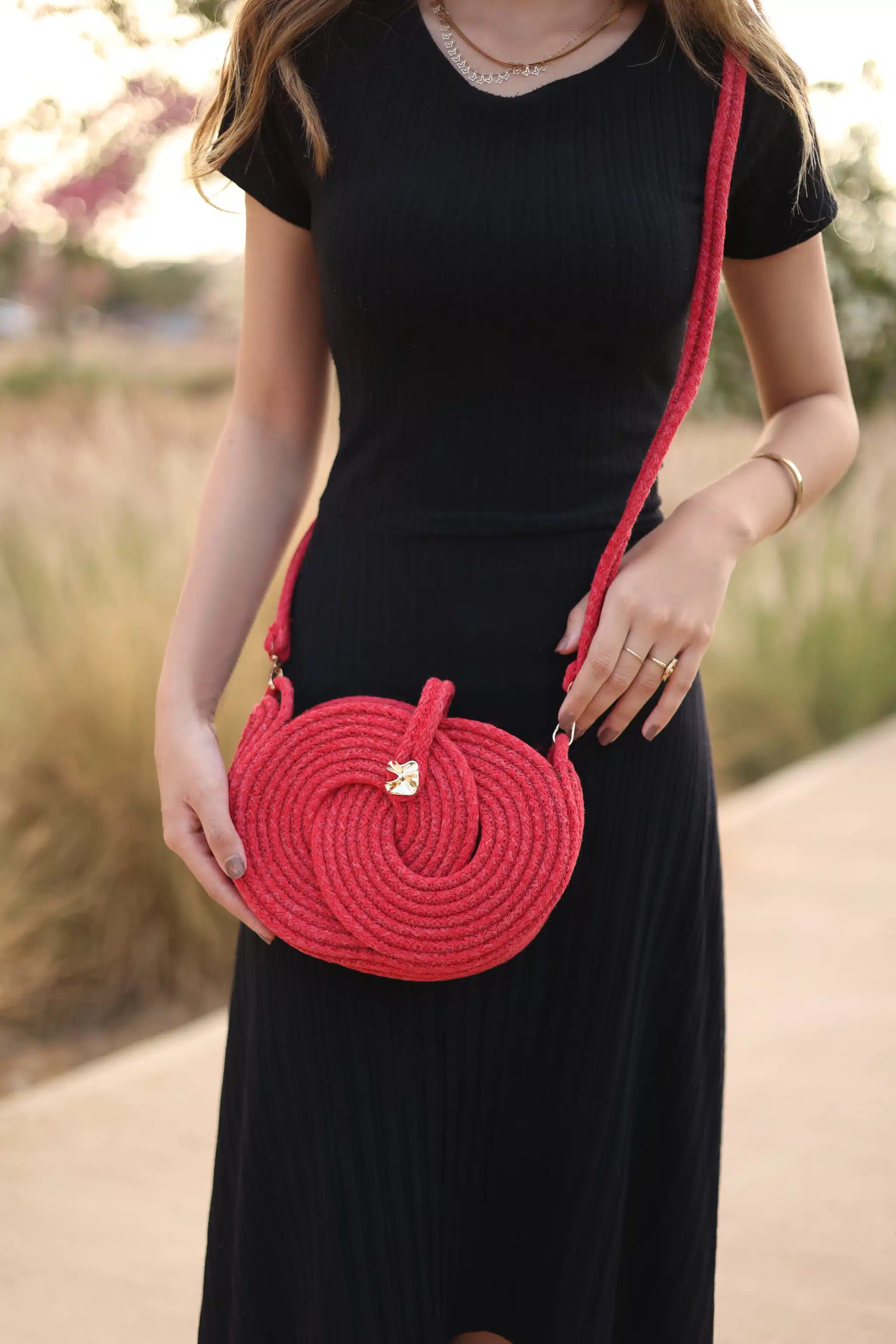 This unique, sustainable bag is crafted with eco-friendly braided rope, embracing both style and environmental consciousness. Designed with a compact 20 cm width, it’s perfect for holding your essentials in a chic, minimalistic form. The intricate sewing pattern adds durability, making it a stylish companion for any occasion.