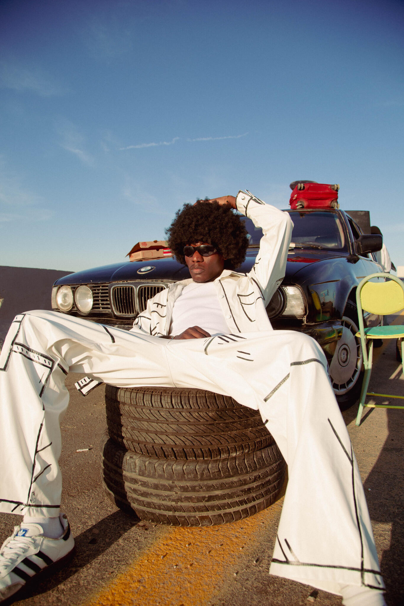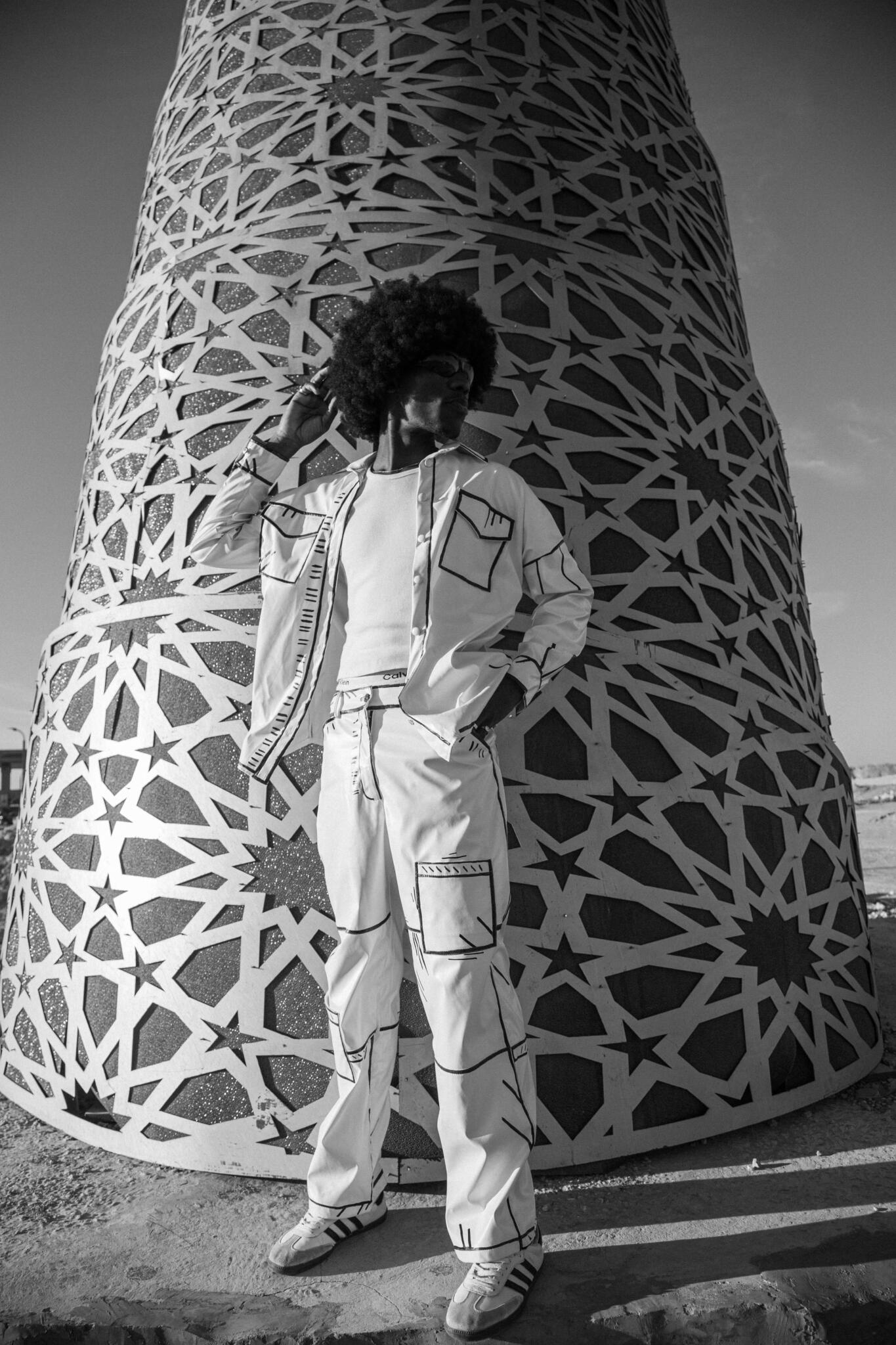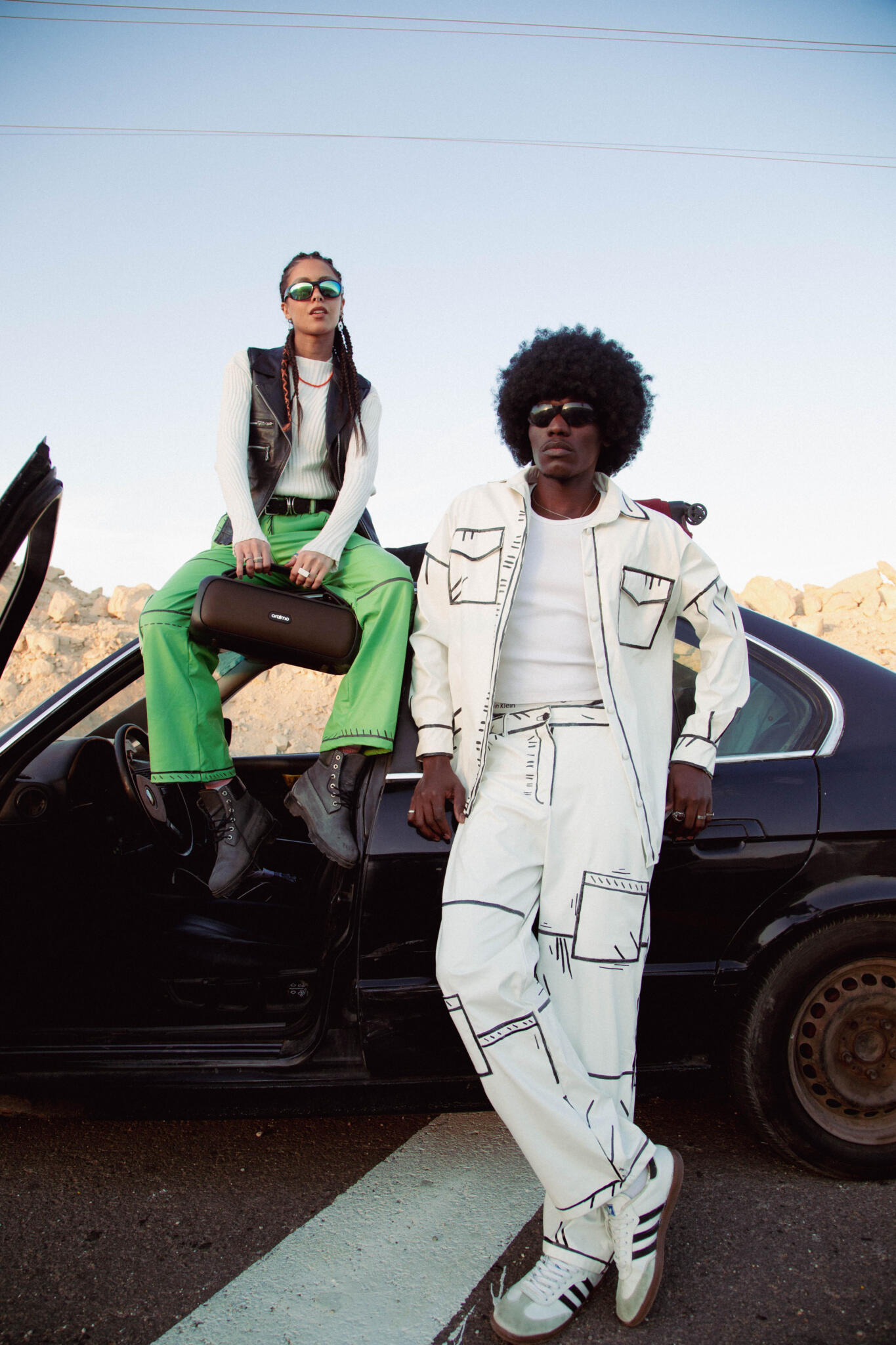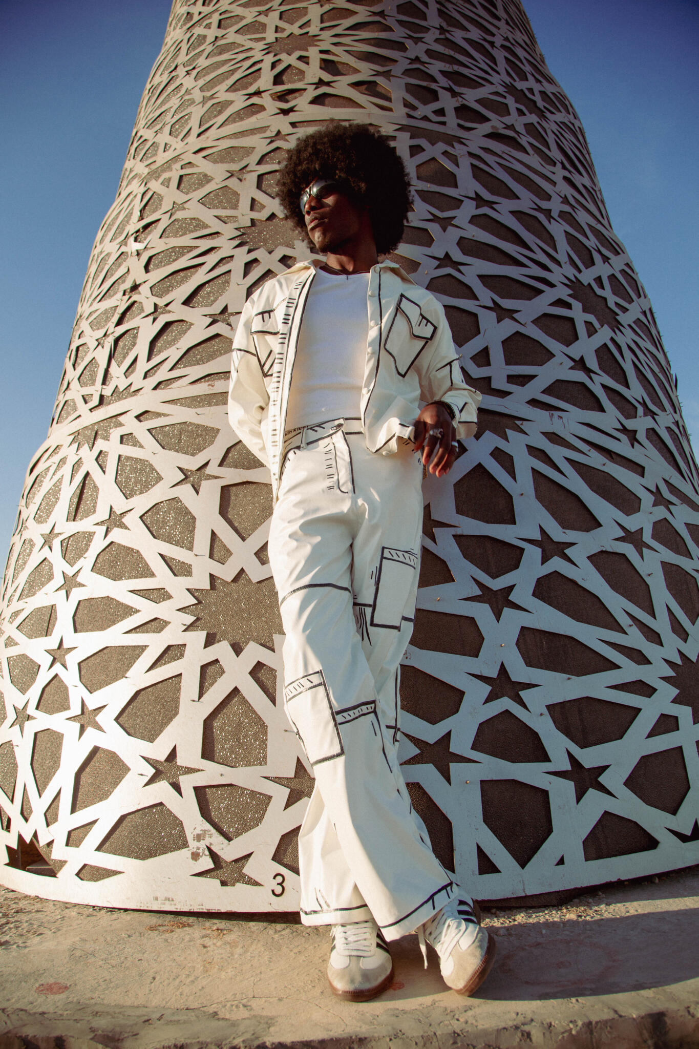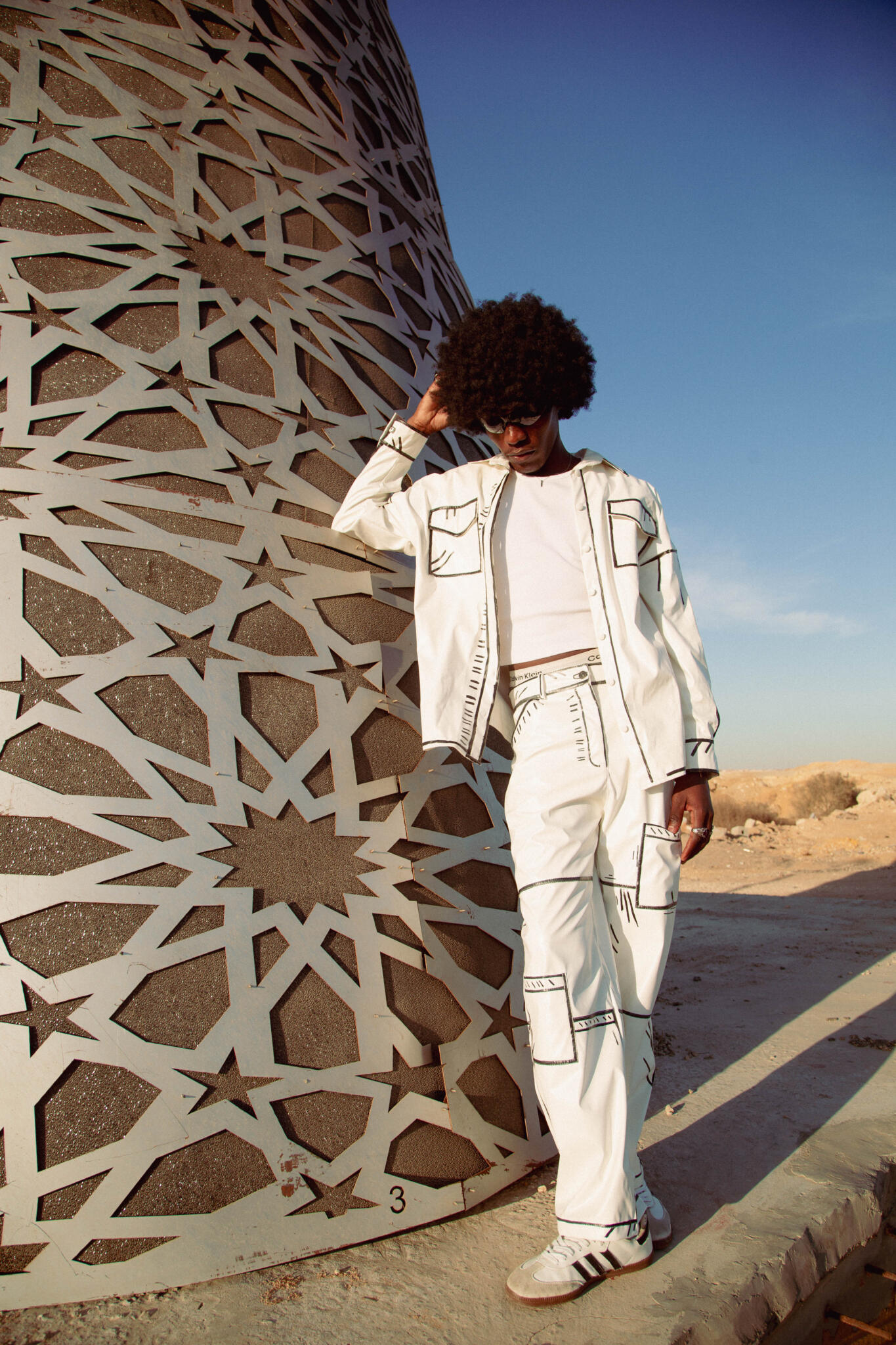 These white leather pants transform into a moving canvas, framed with 2D-inspired artwork that turns simple lines into bold expression. A fusion of minimal design and artistic detail, made to stand out in every step.