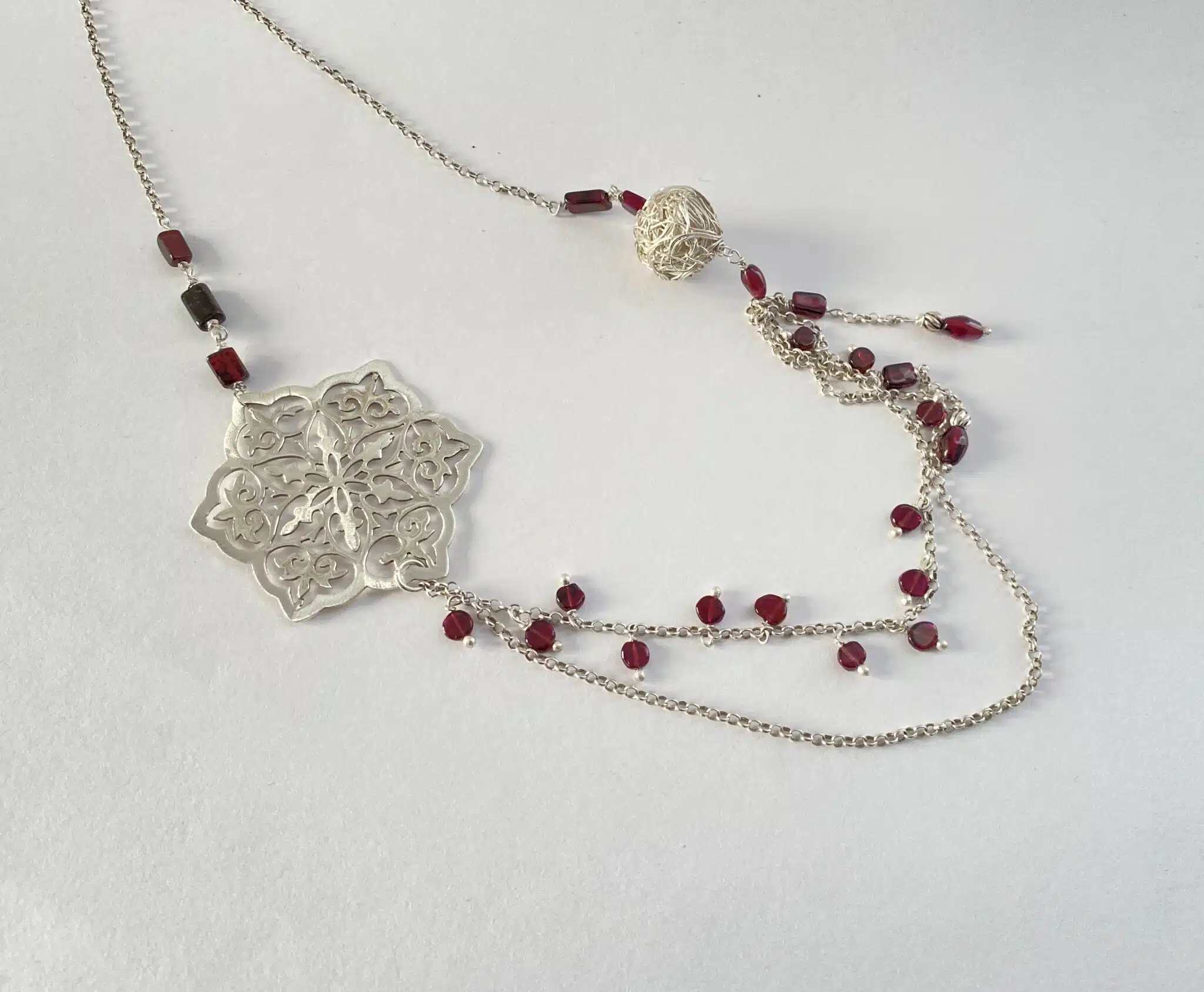 Sterling silver 925 necklace with garnet stones