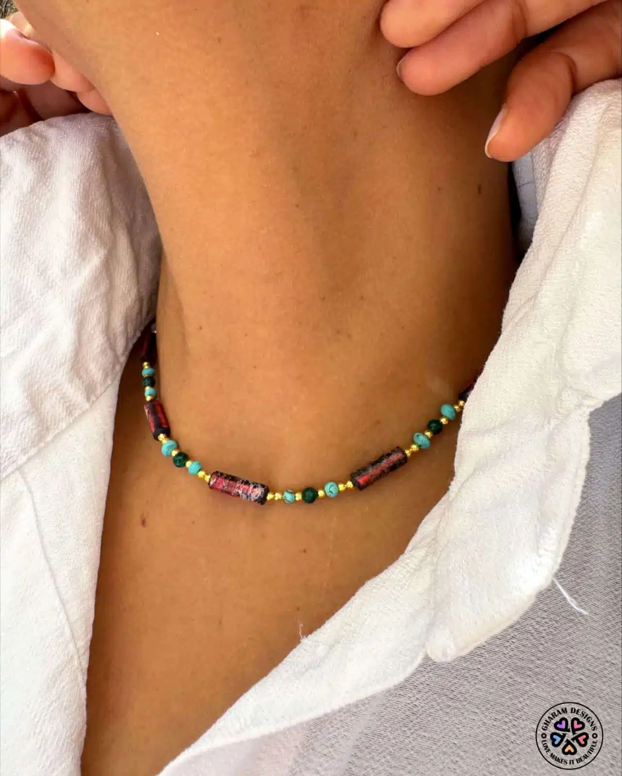 Natural stone necklace made of Turquoise, Jasper, Agate & Hematite