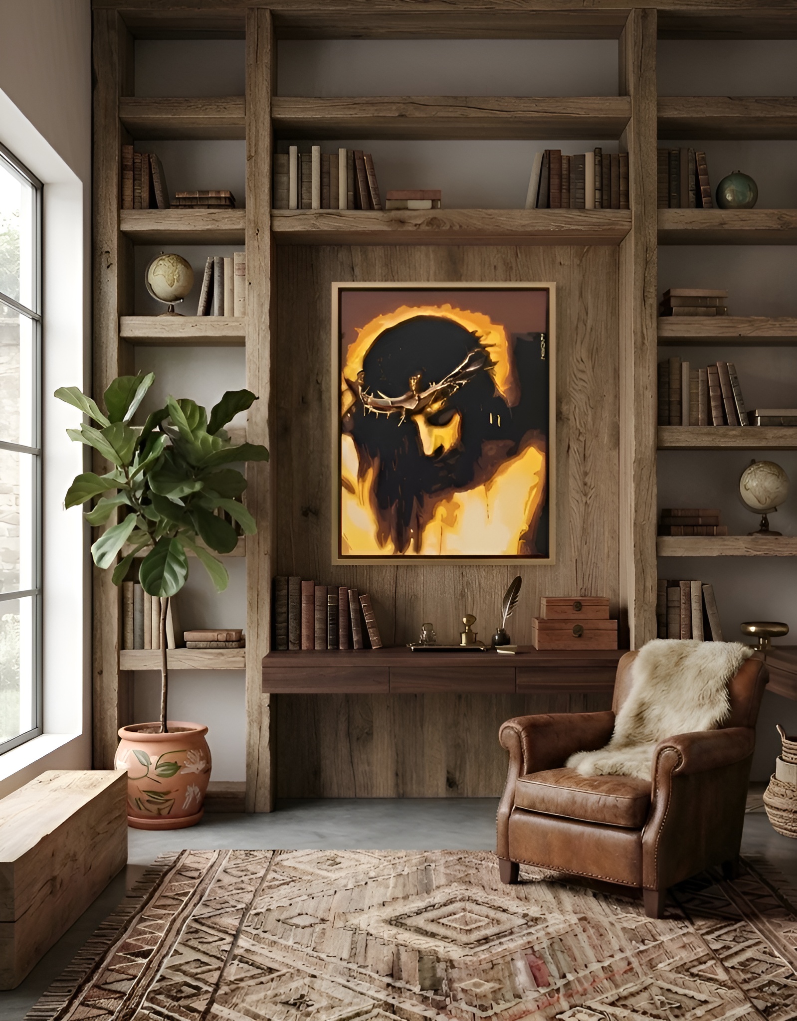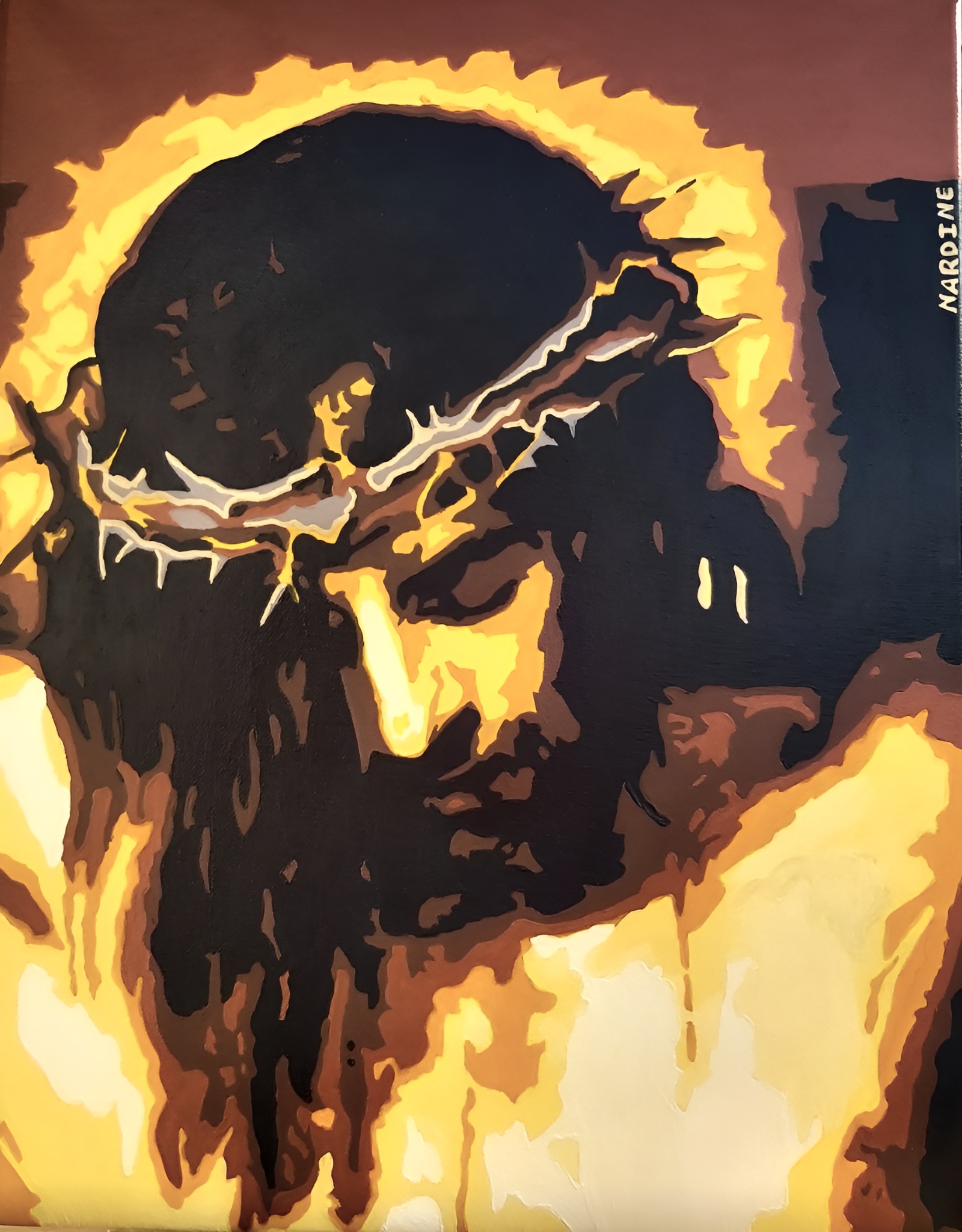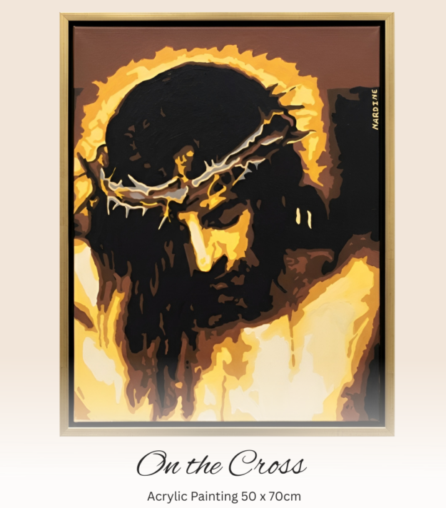 This is an acrylic painting of Jesus on the cross on canvas. The painting style is called pop/wpap art. It is a unique and artistic style for your home. It takes long hours to create this portrait.