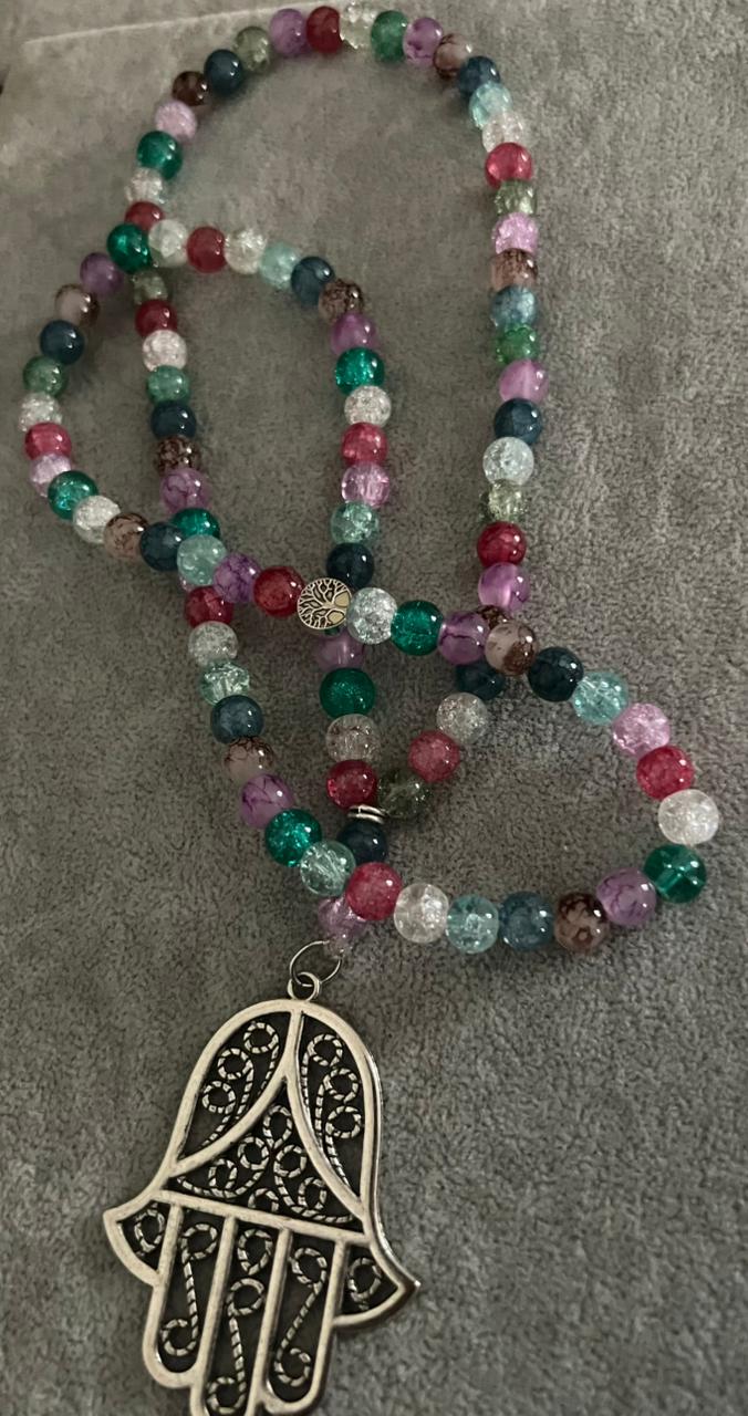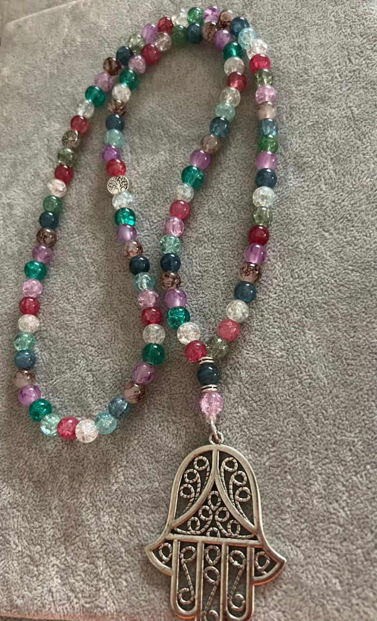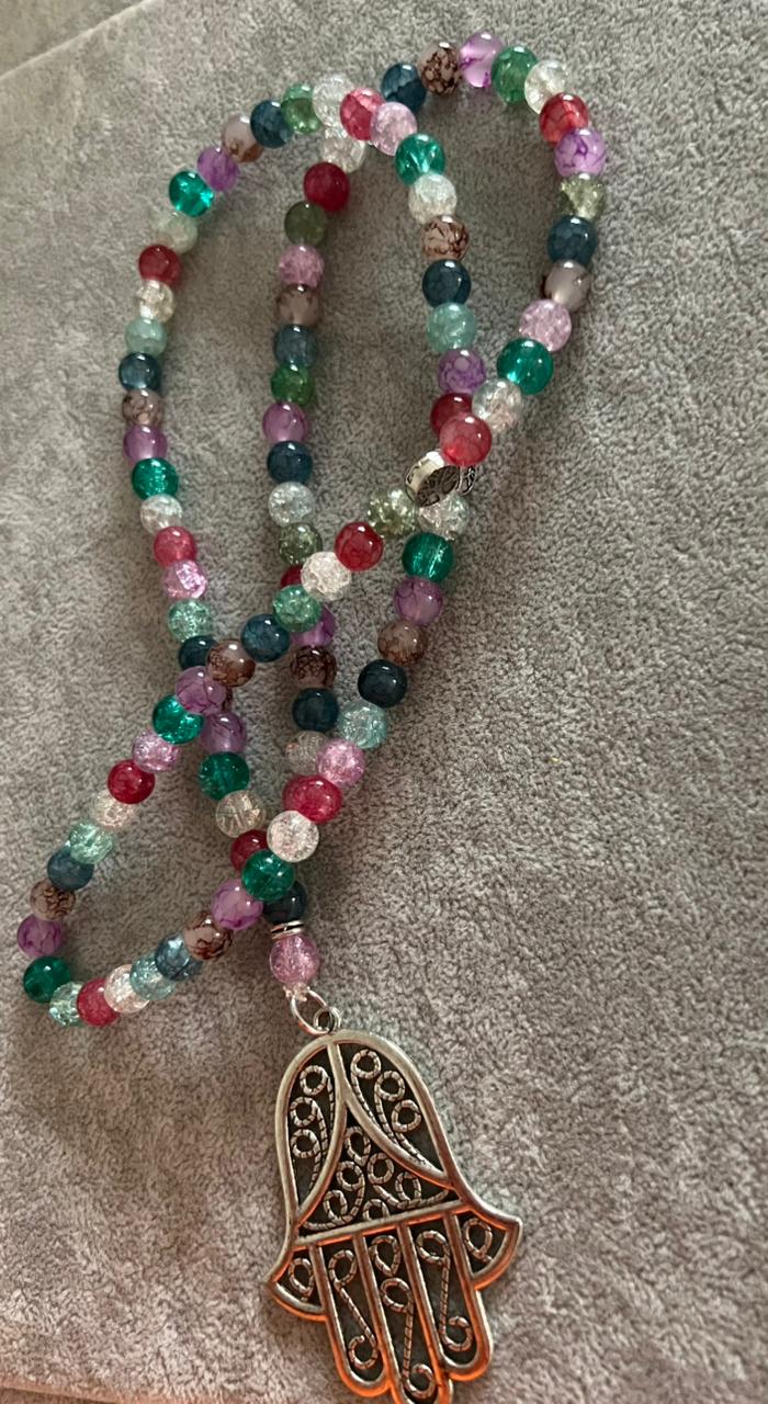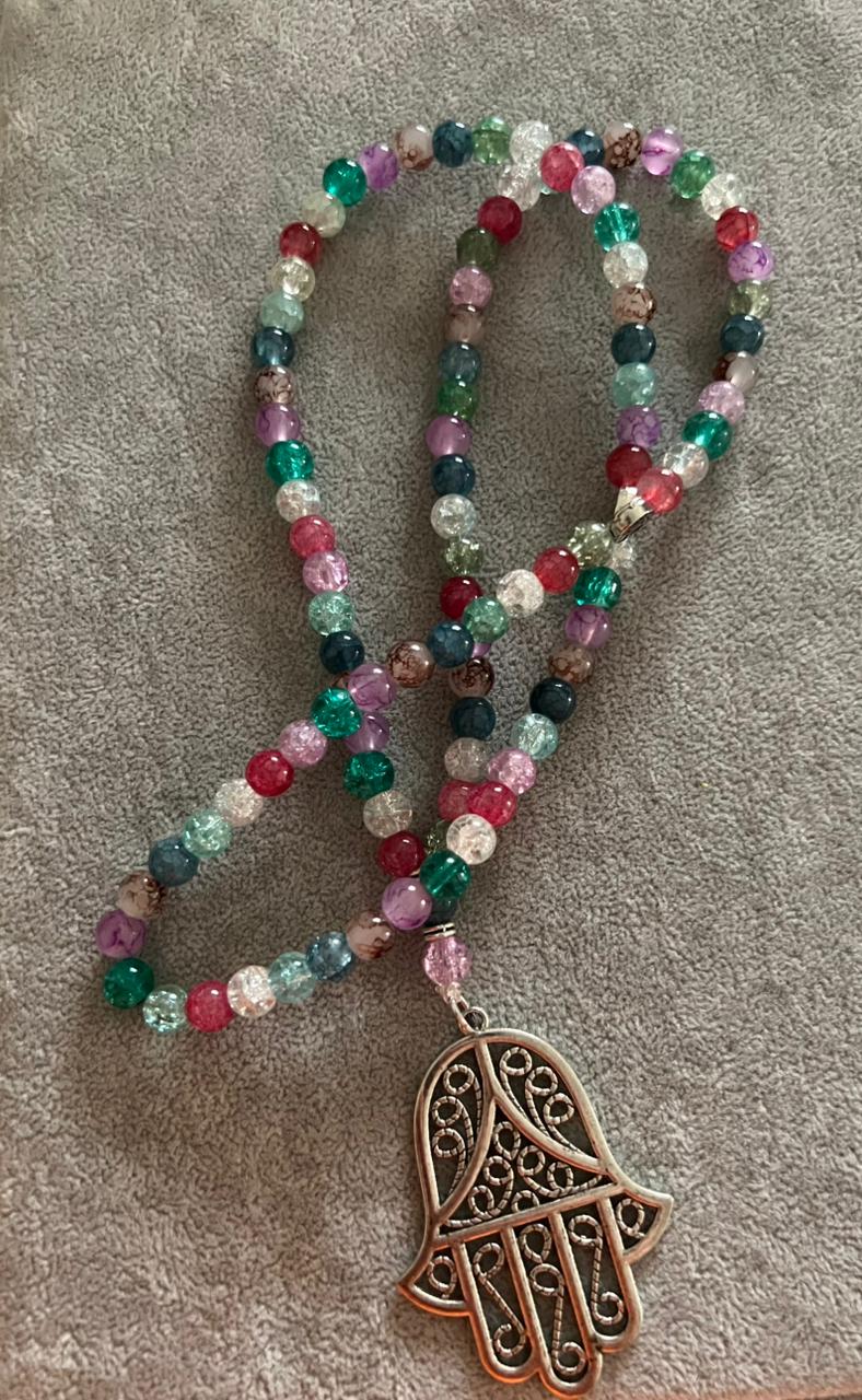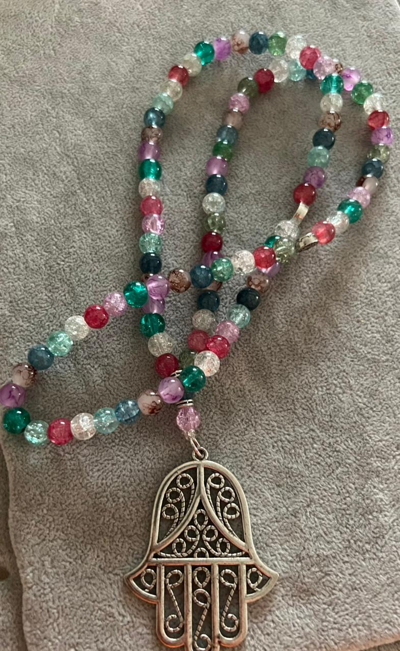A beautiful handcrafted sebha featuring a vibrant mix of multicolored crystal beads, carefully arranged to create a lively yet elegant look.