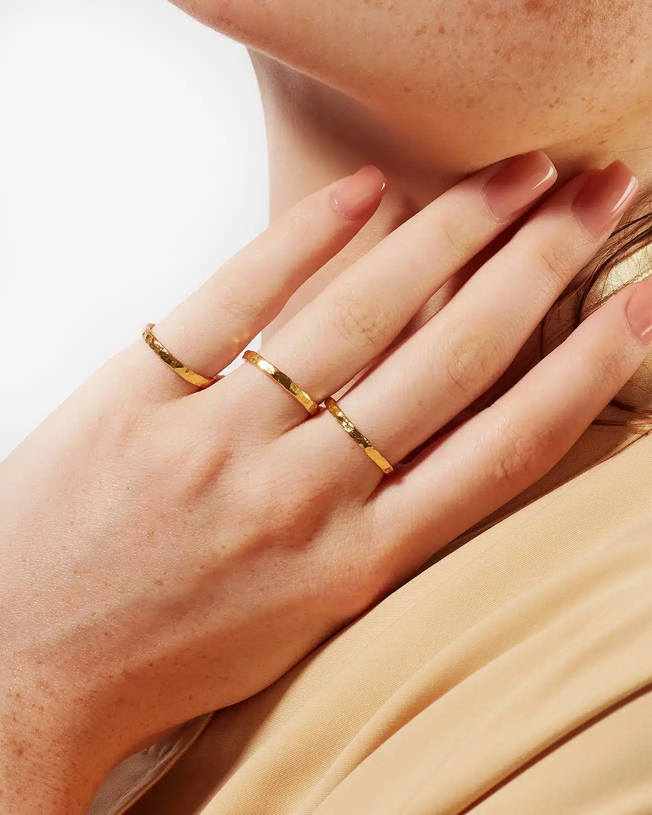 Just Rings Collection, Handmade, Sterling Silver, Gold Plated, Stacking Ring Round Texture