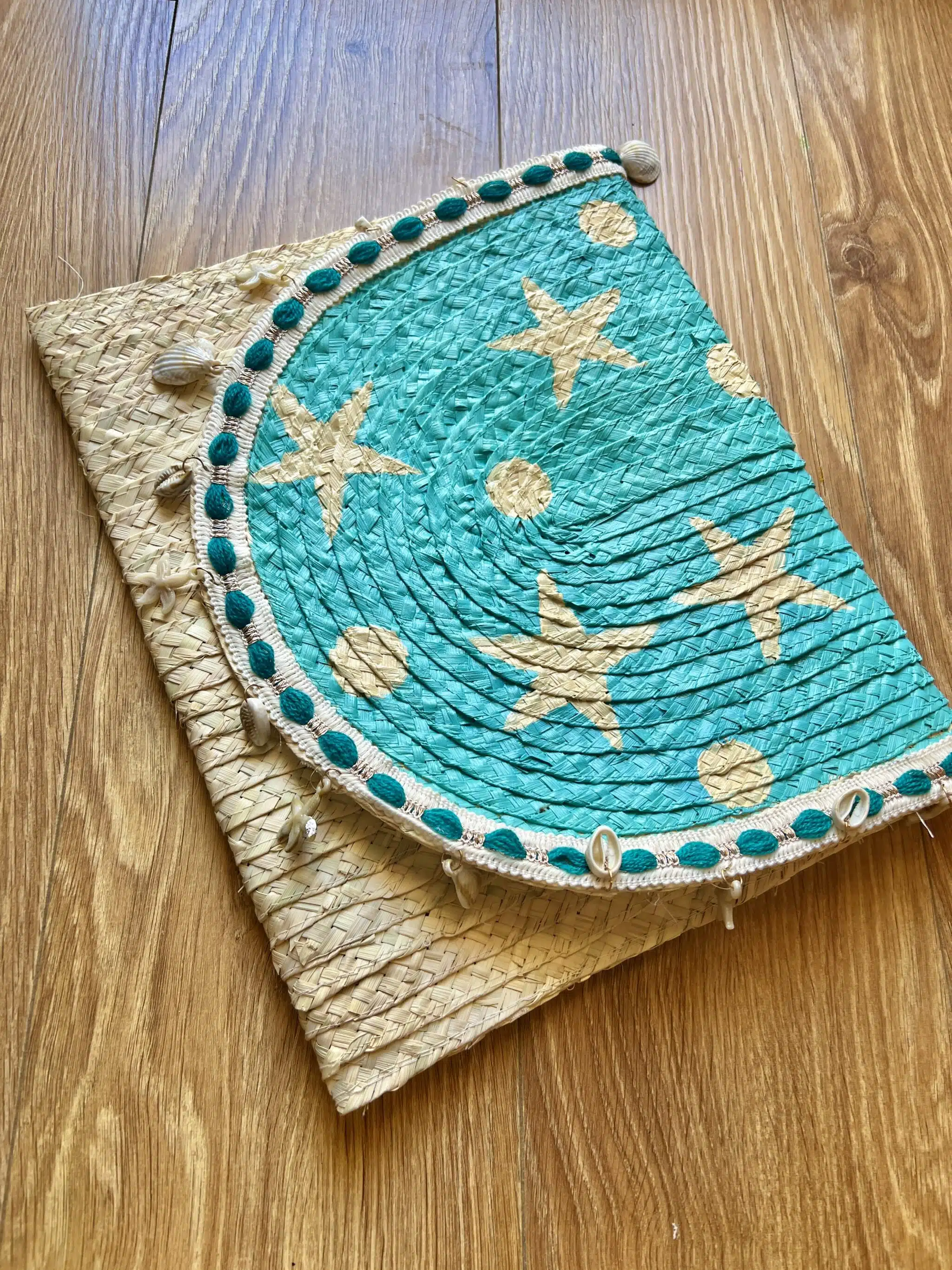These hand-painted clutches are made of natural straw and feature a vibrant combination of summer colors. With a size of 24 x32 cm medium size