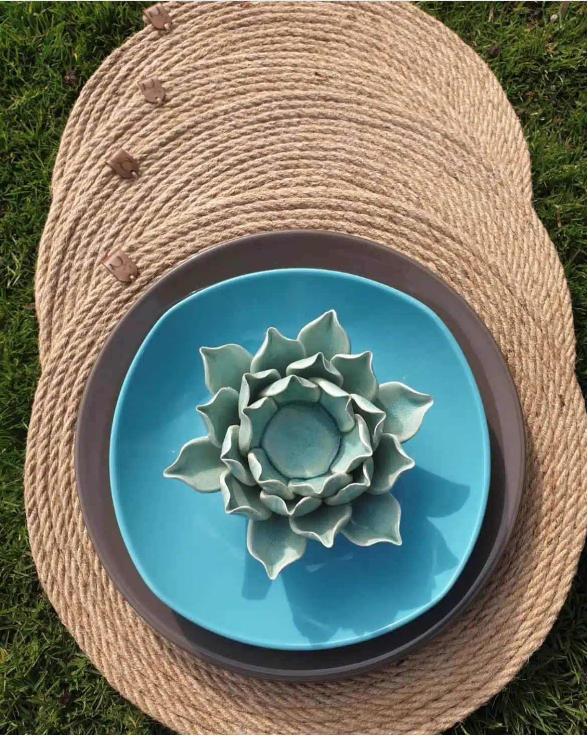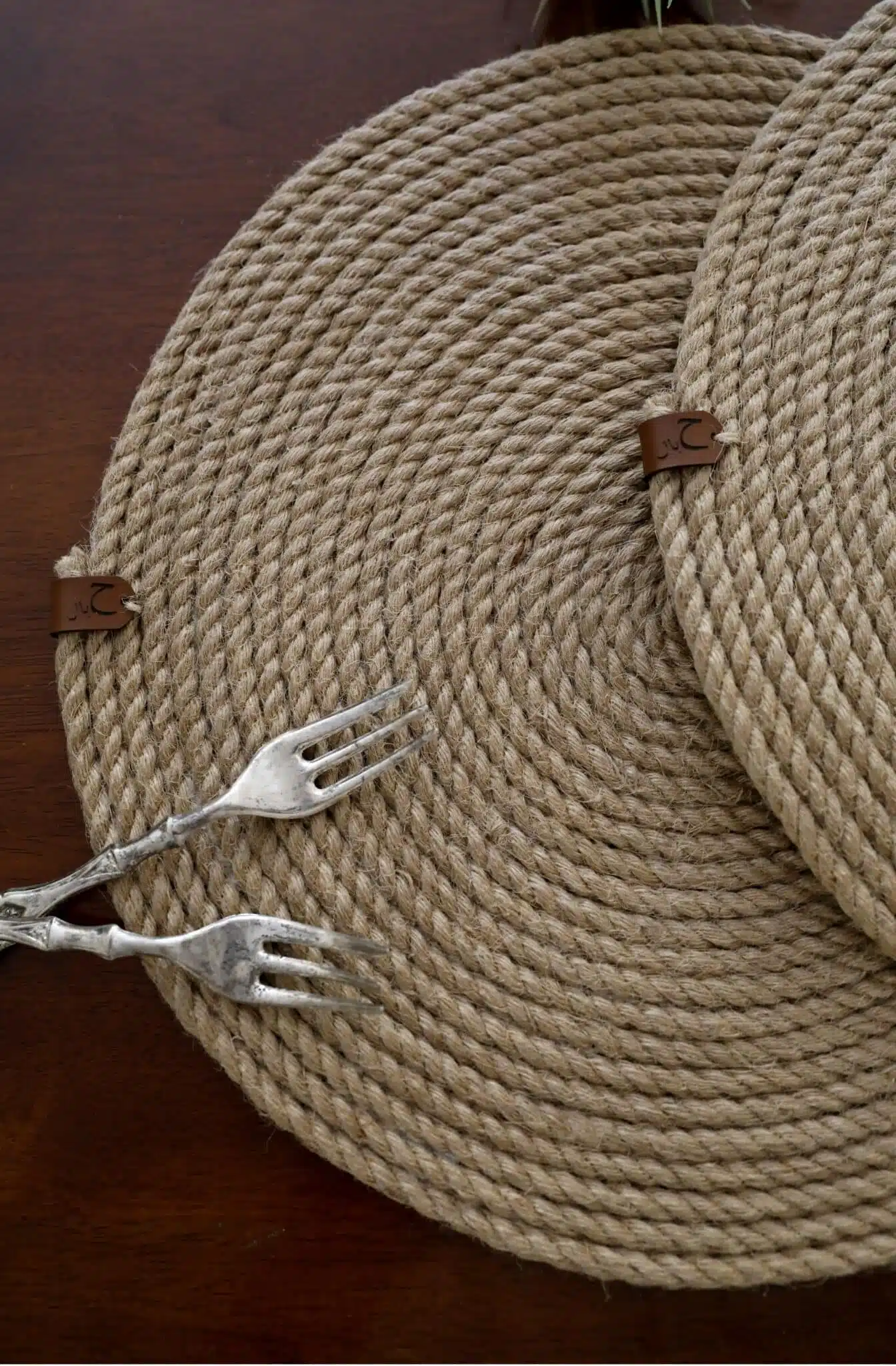 Handmade placemat diameter 37 cm made by natural jute rope.