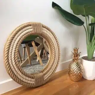 Mirror diameter 46cm, frame made by jute rope, outer diameter 60 cm