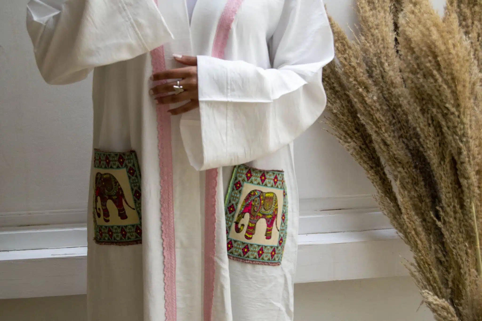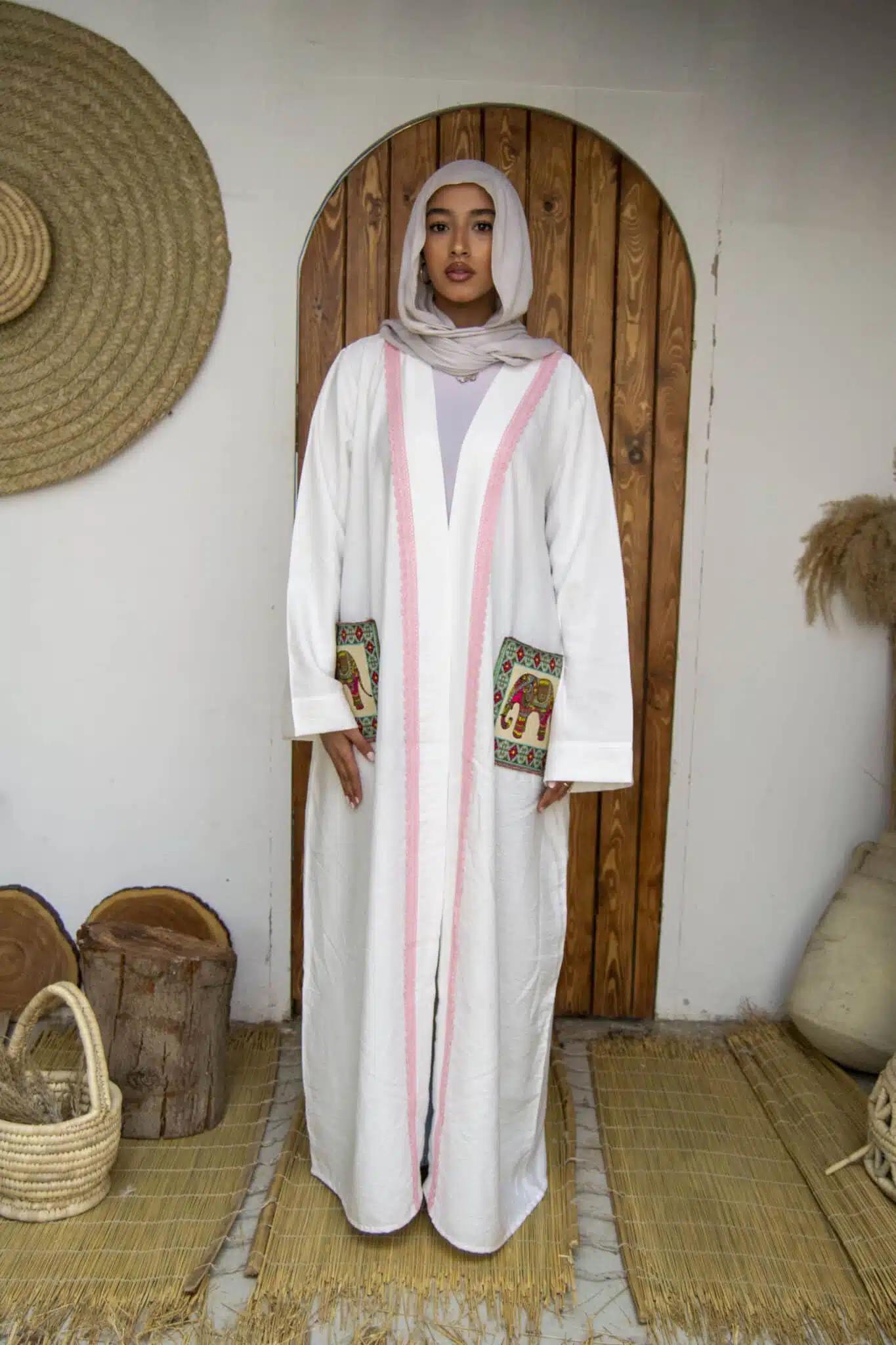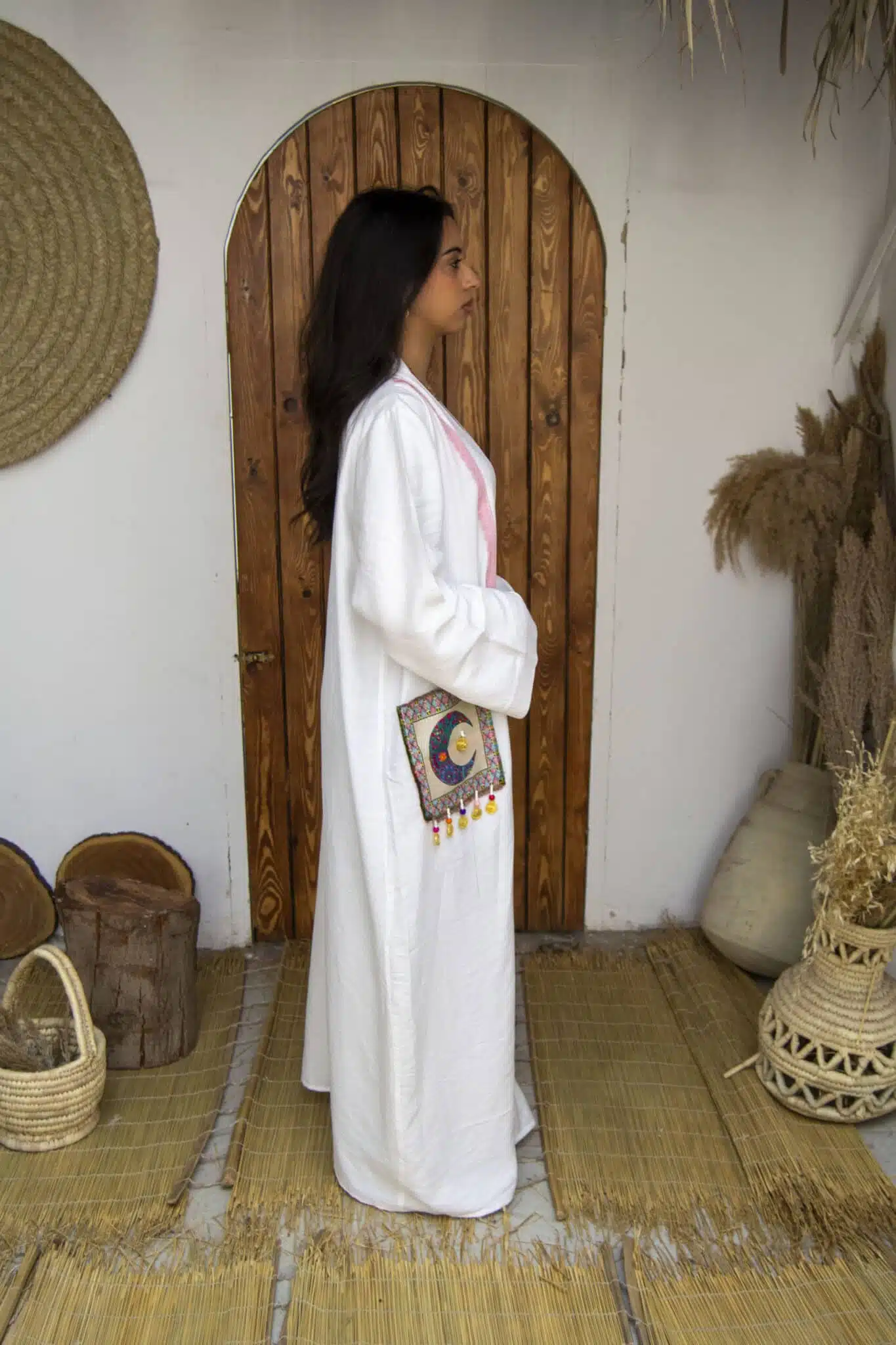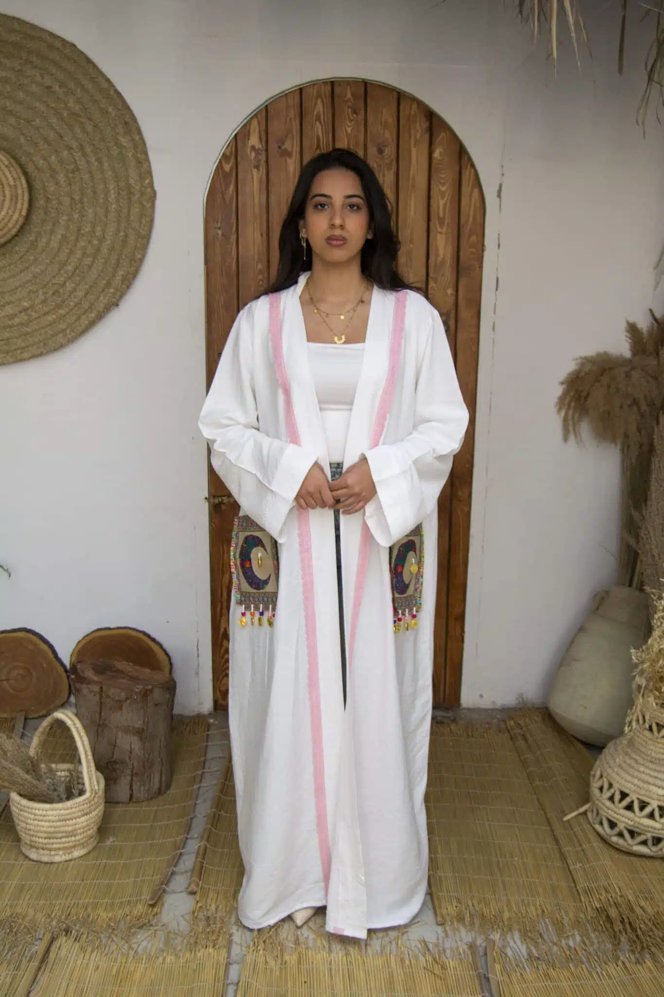 Linen kaftan with a bedouin embroidery