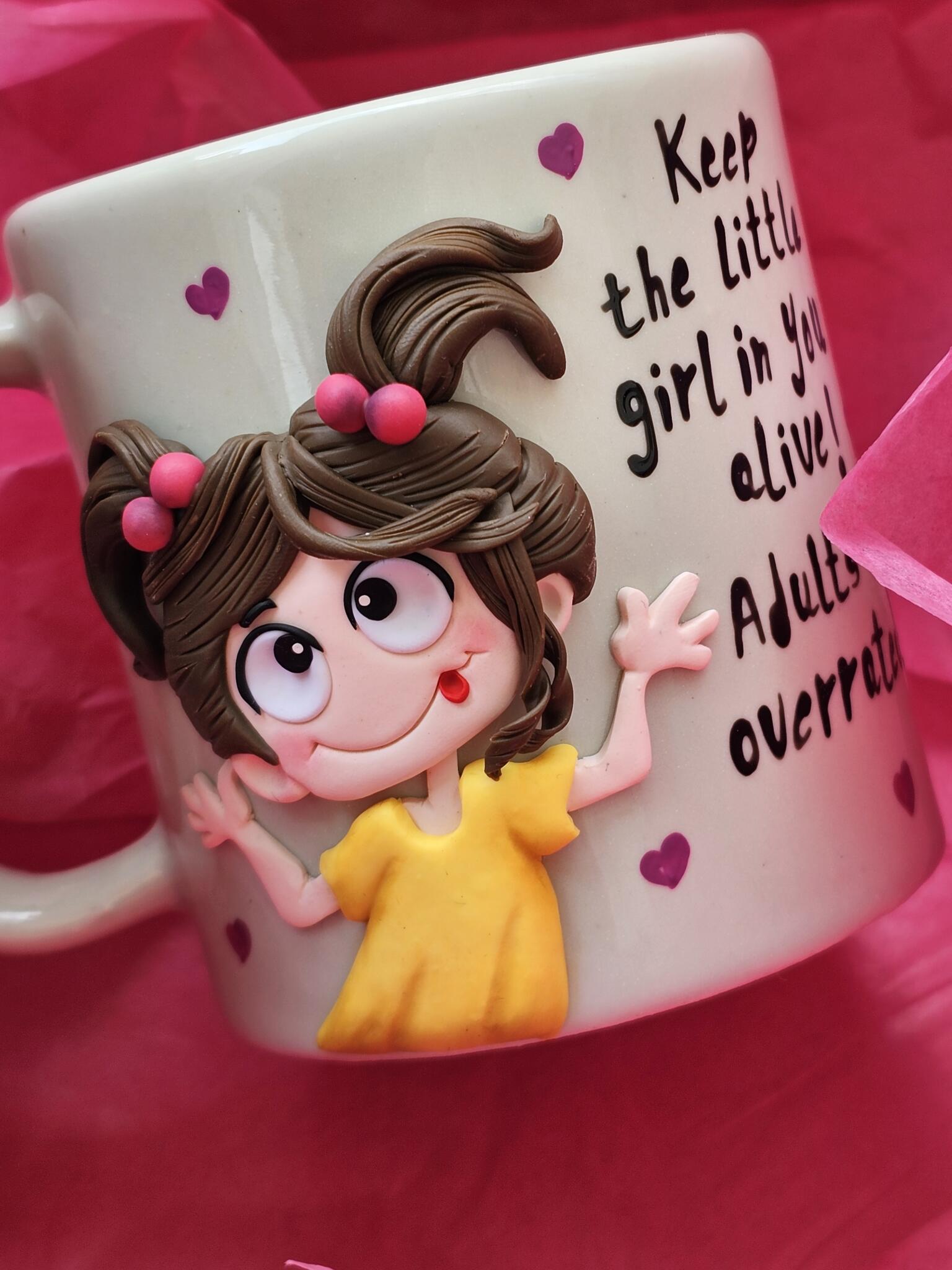 Porcelain mug with a design made of polymerclay