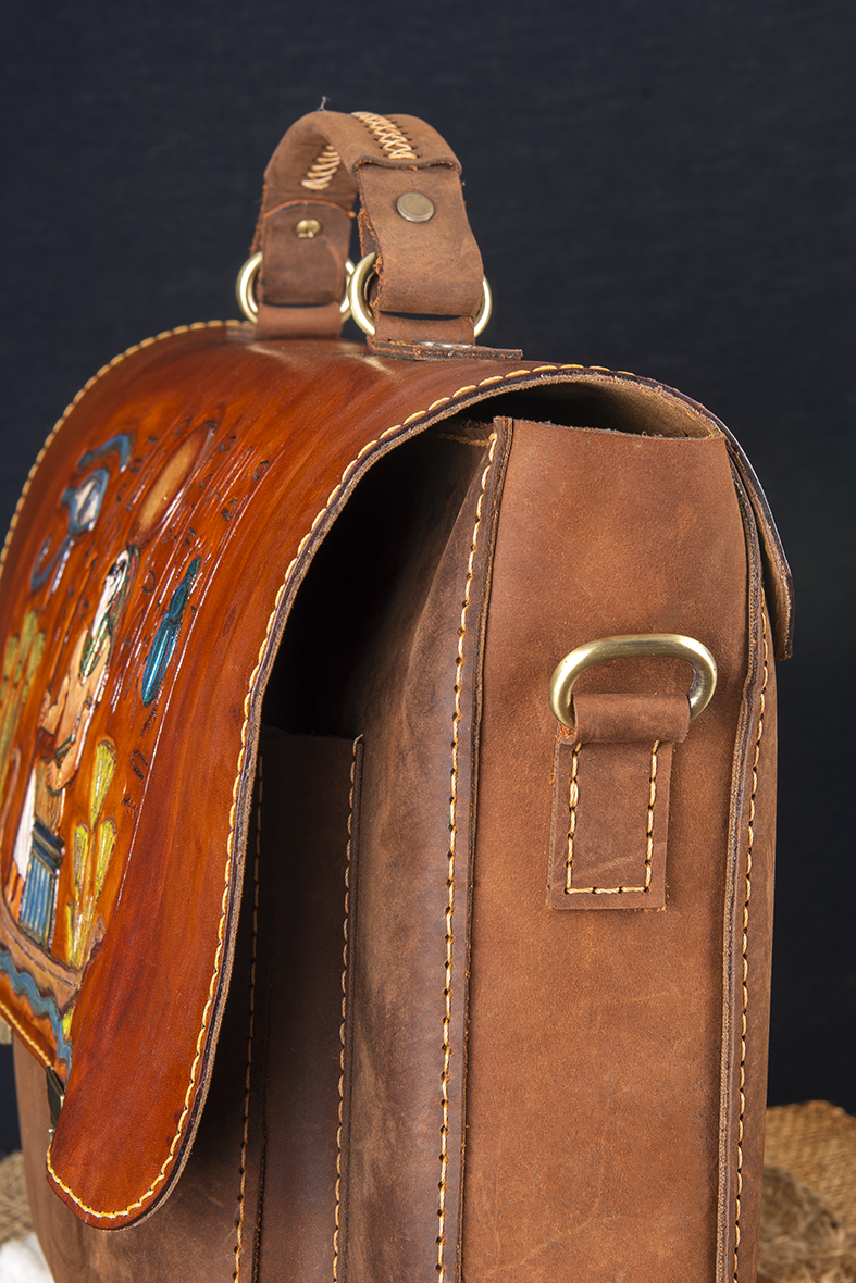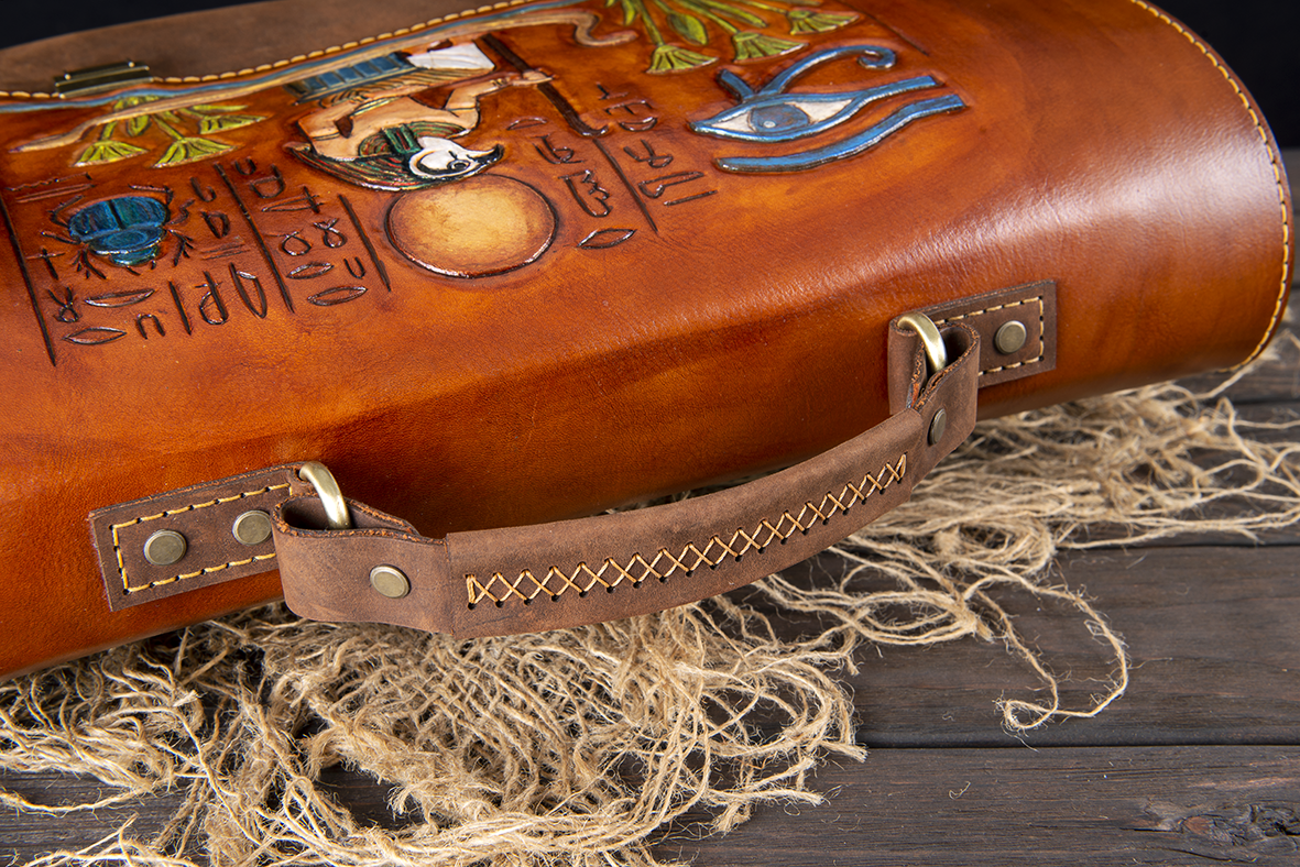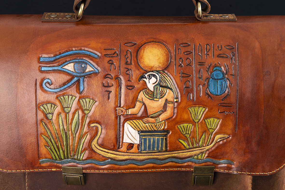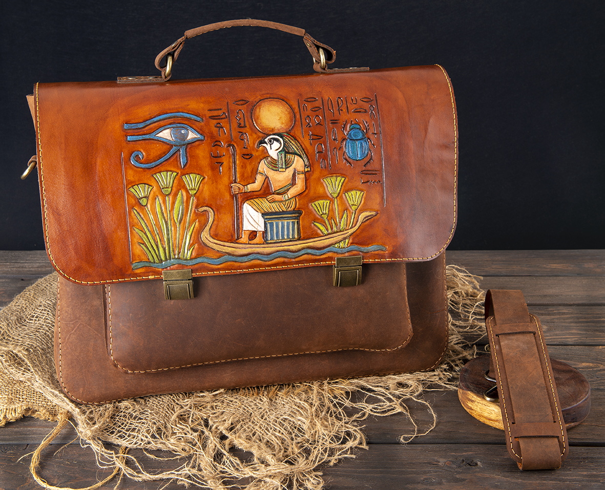 Step into timeless elegance with this exquisite Pull-Up Cowhide Leather Laptop Bag, crafted from chrome-free natural leather and hand-embossed using the raised carving technique inspired by ancient Egyptian art.