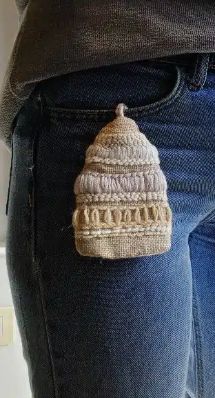 punch needle key covers features a design of an original textile pattern .