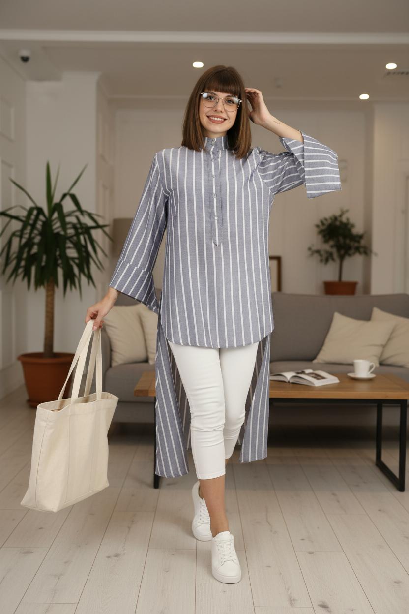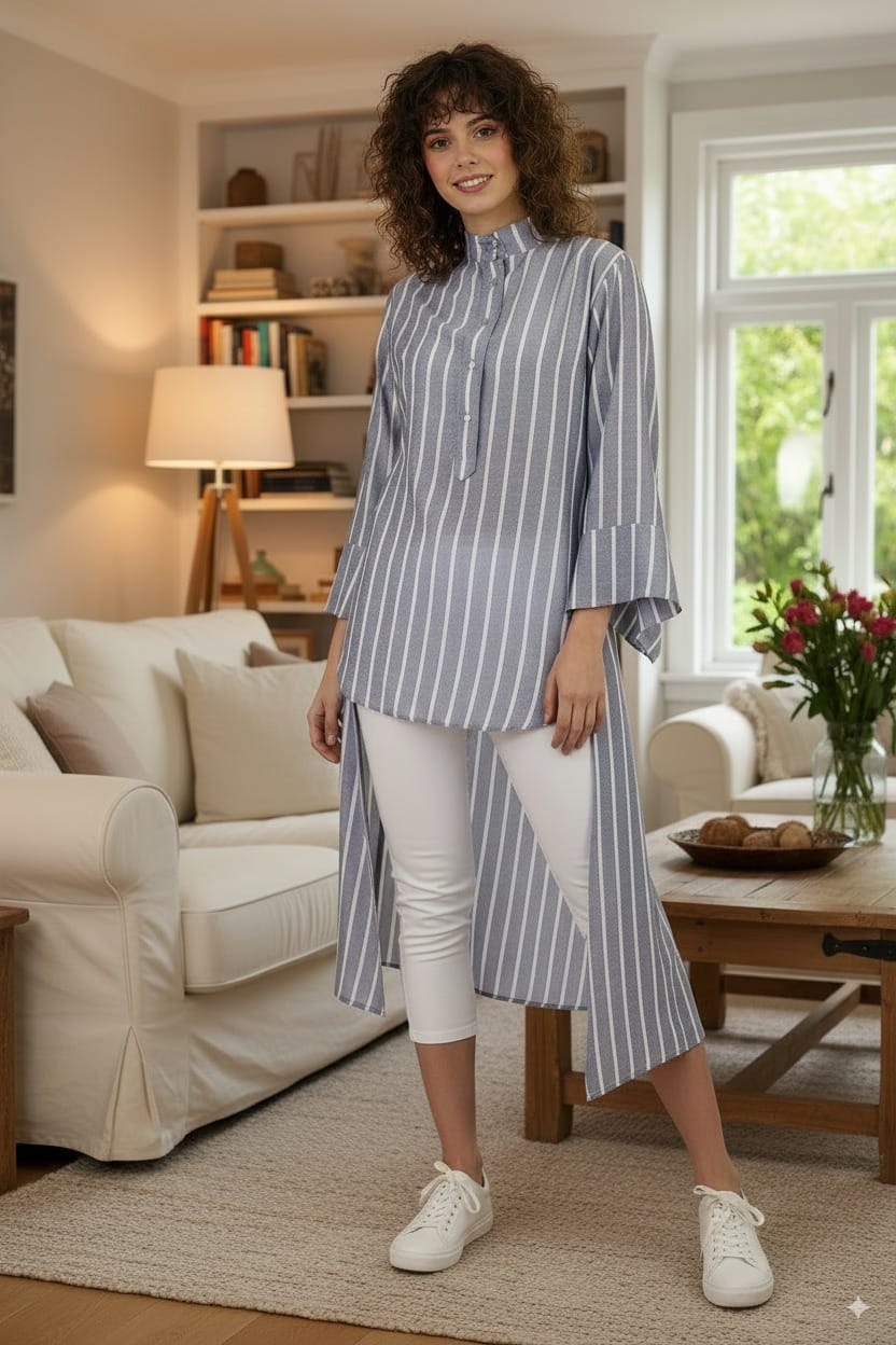 Linen stripped shirt.Midi length fits 65 kilos