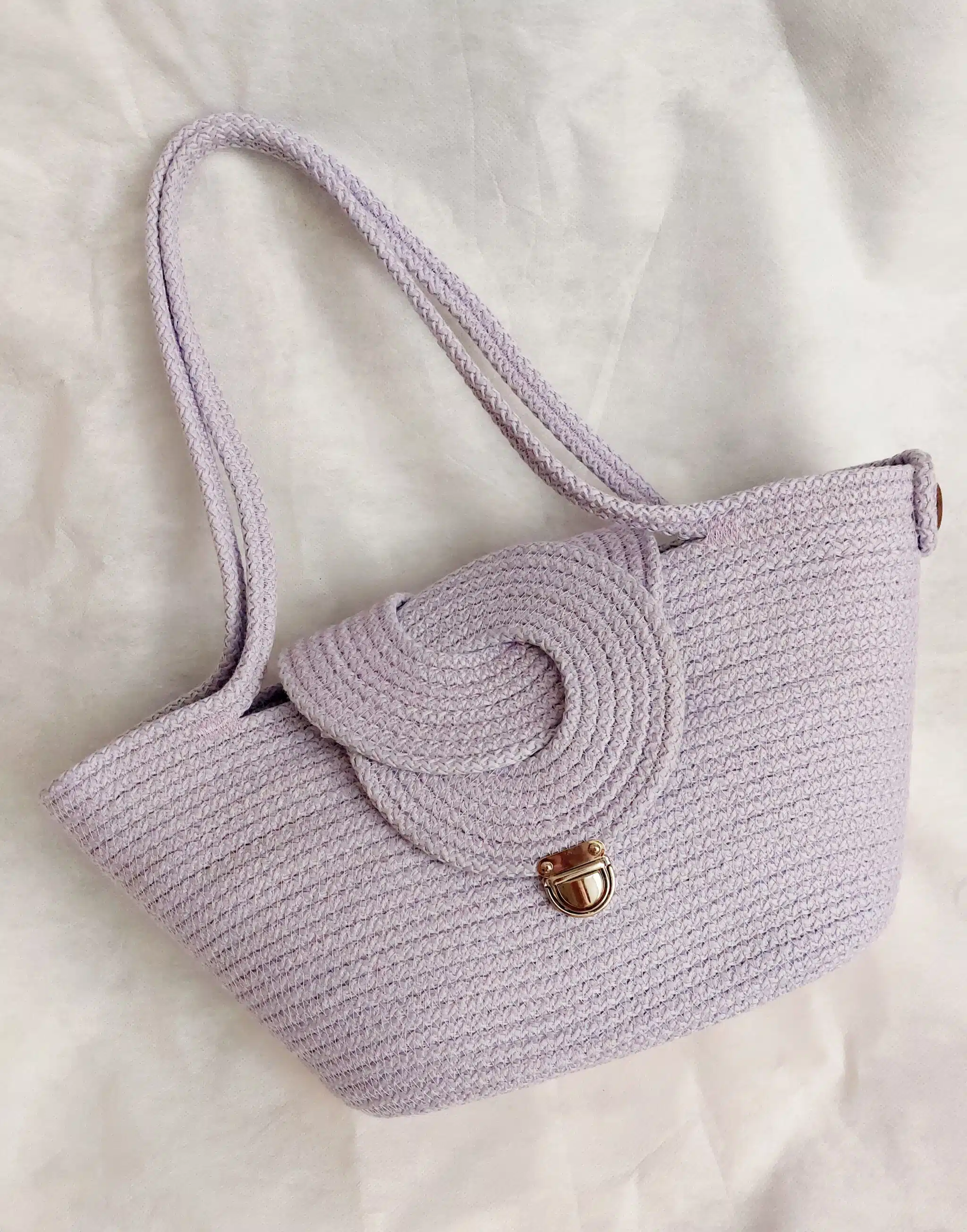 Discover your new favorite getaway accessory! Our large-capacity Lilac Woven Tote offers ample space for all your essentials, making it ideal for travel, beach days, or daily use. The beautiful lilac color and distinctive braided flap with a secure clasp elevate this bag from practical to truly stylish. Lightweight and durable, it’s designed to bring a touch of chic ease to your every adventure.