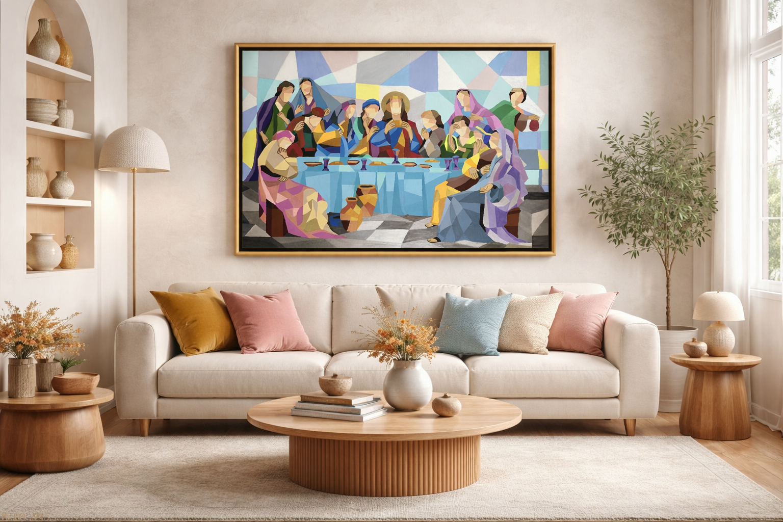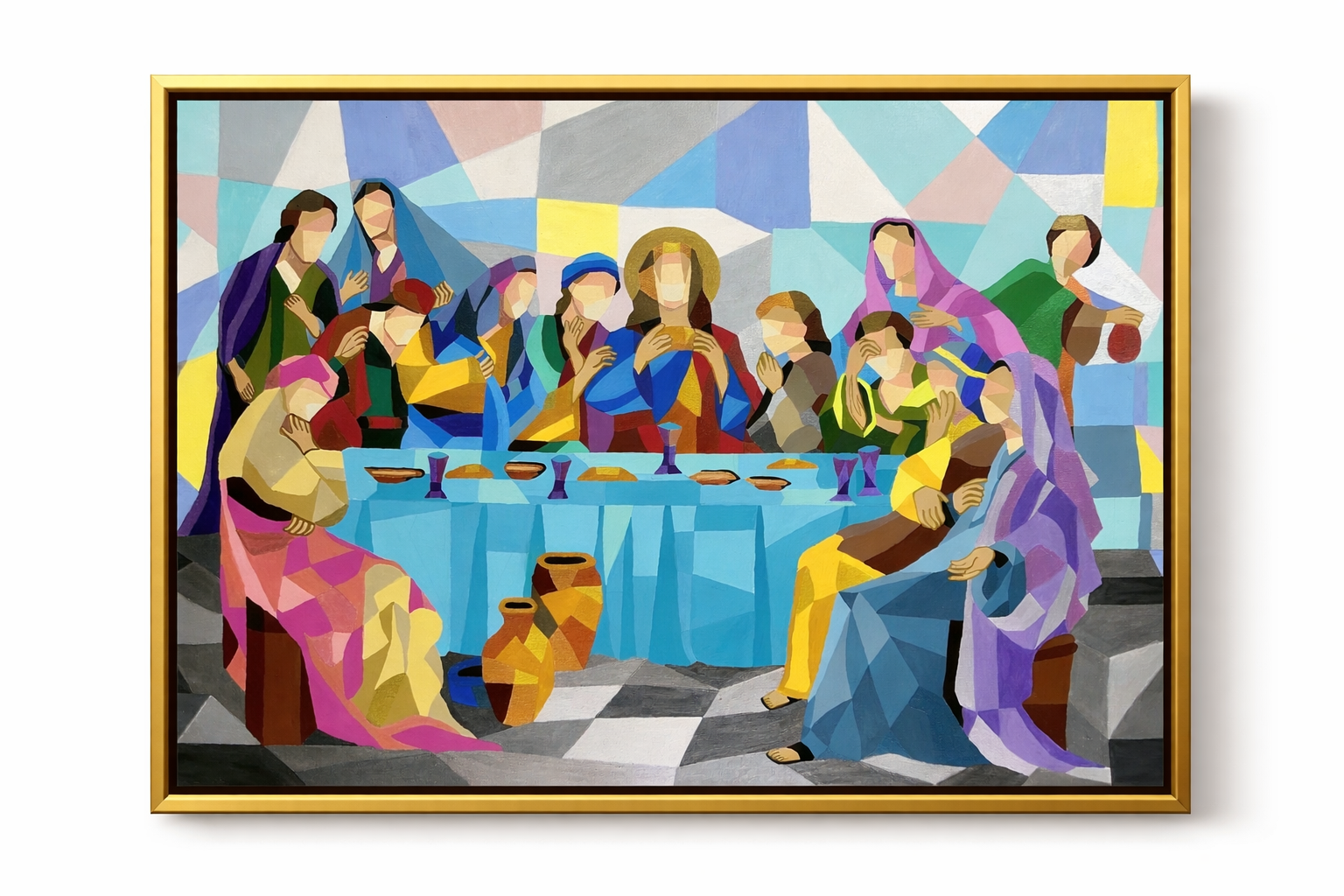 This is an acrylic painting of Jesus on the cross on canvas. The painting style is called pop/wpap art. It is a unique and artistic style for your home. It takes long hours to create this portrait.