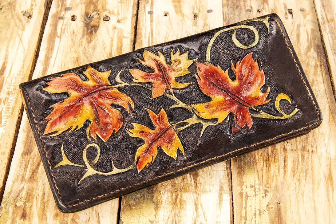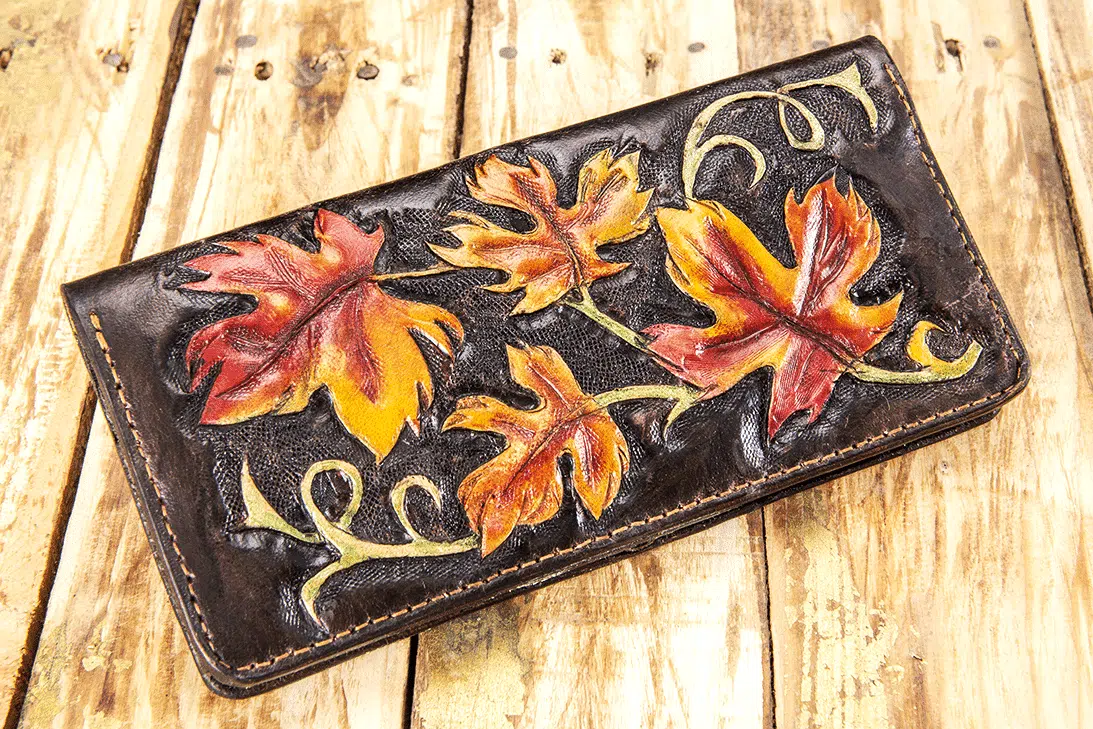 Genuine leather freehand carving Dimensions 20*11 6 card pockets 2 paper pockets 1 zipper pocket