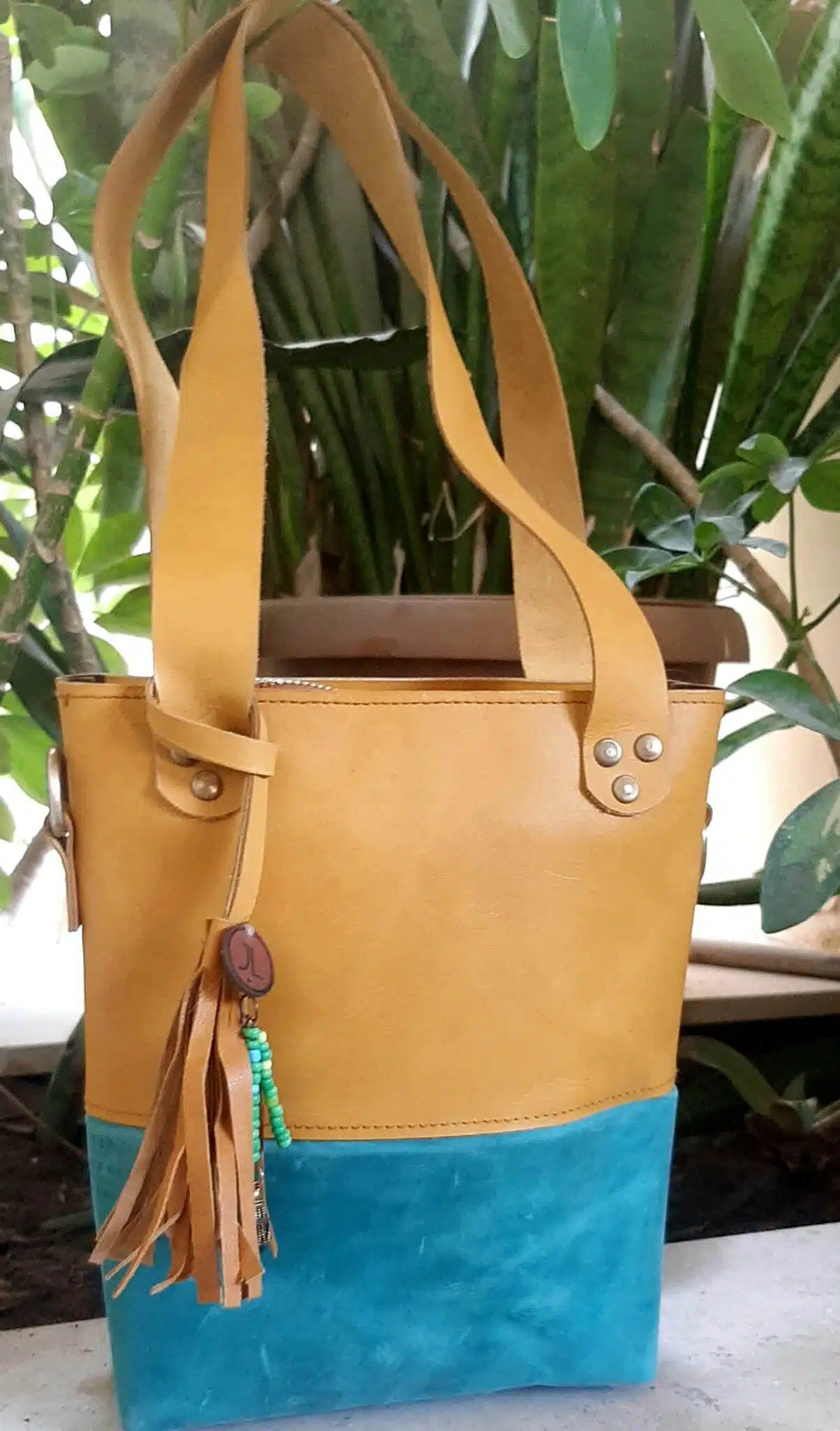 Meet your new favorite “every single day” tote with its two bright colors – Teal and Yellow. Beautiful and versatile, this bag ages beautifully, and suits all occasions.