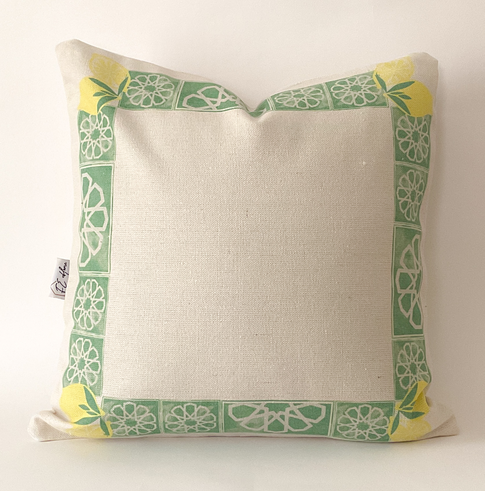 One cushion lemon pattern cushion cover. (45*45), made of linen, plain back with a hidden zipper for easy removal and washing