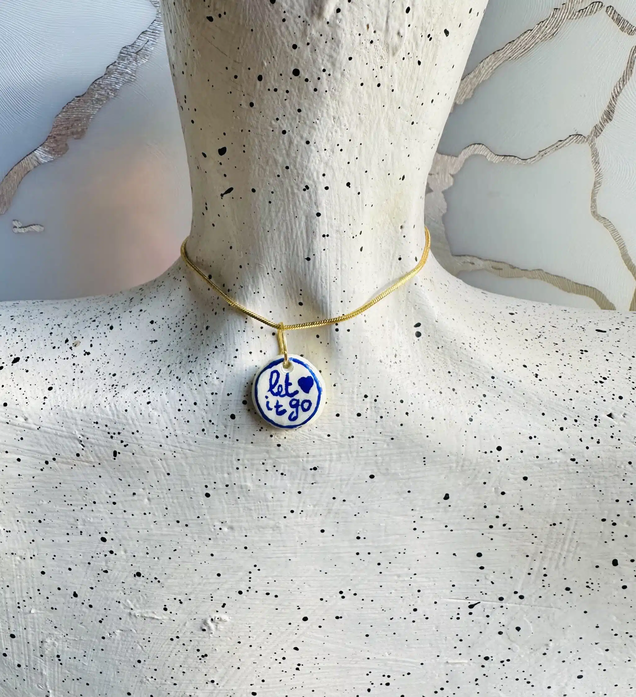 Handmade pendant with the words “let it go” written by hand, a soft little reminder to breathe and release, Comes with a stainless steel chain to carry the calm wherever you go.