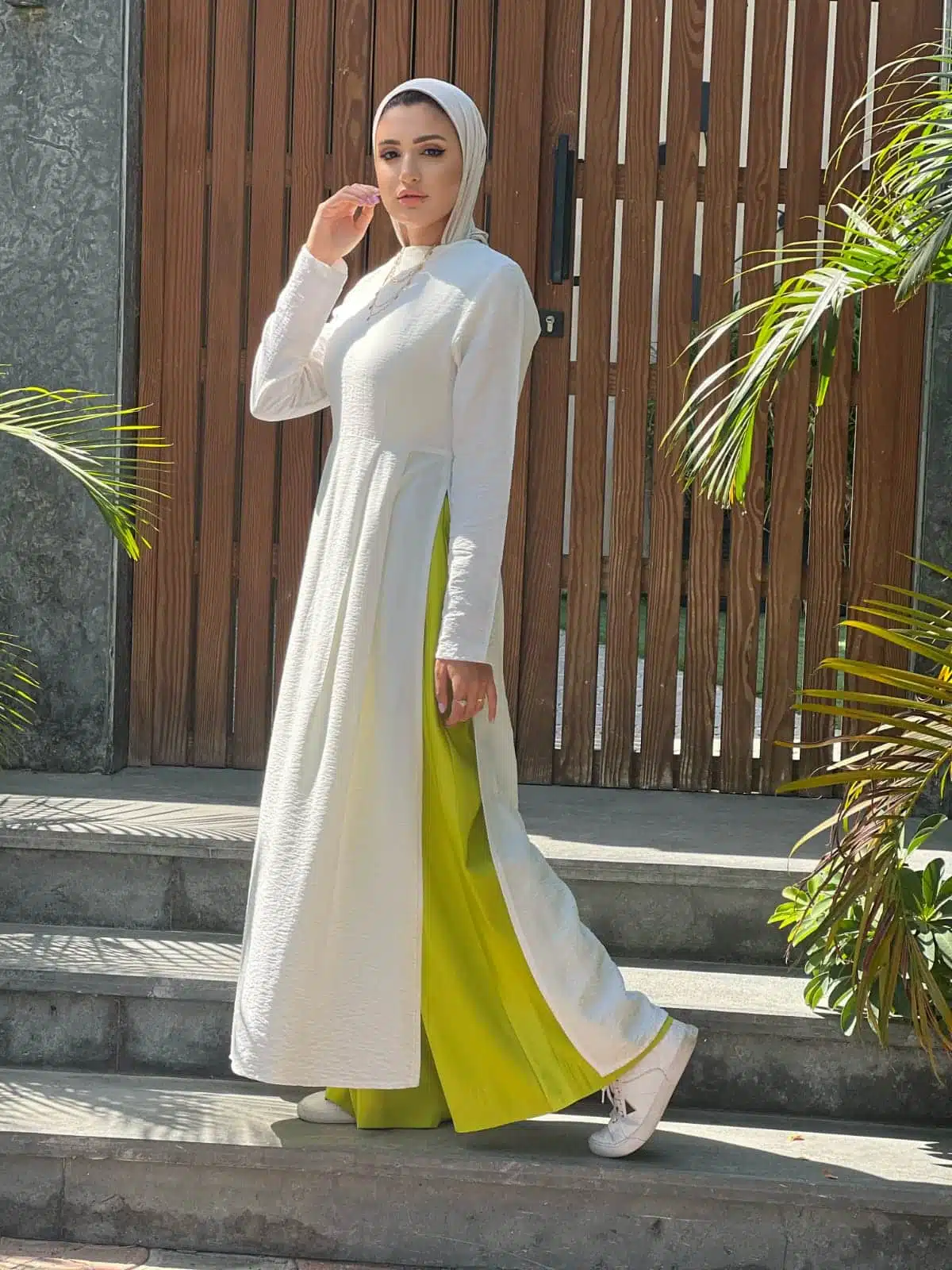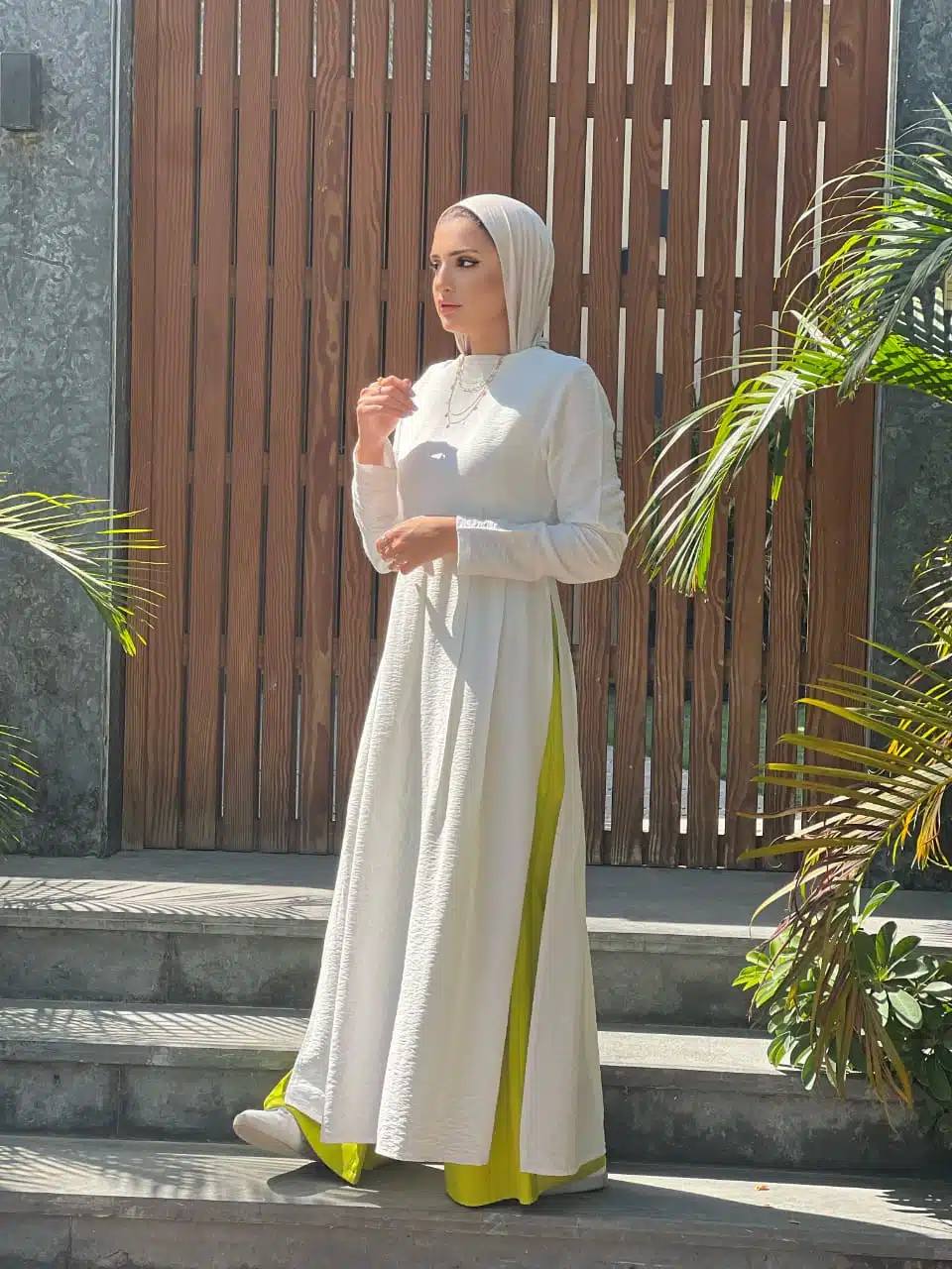 فستان كتان طبيعي مفتوح من الجمبين