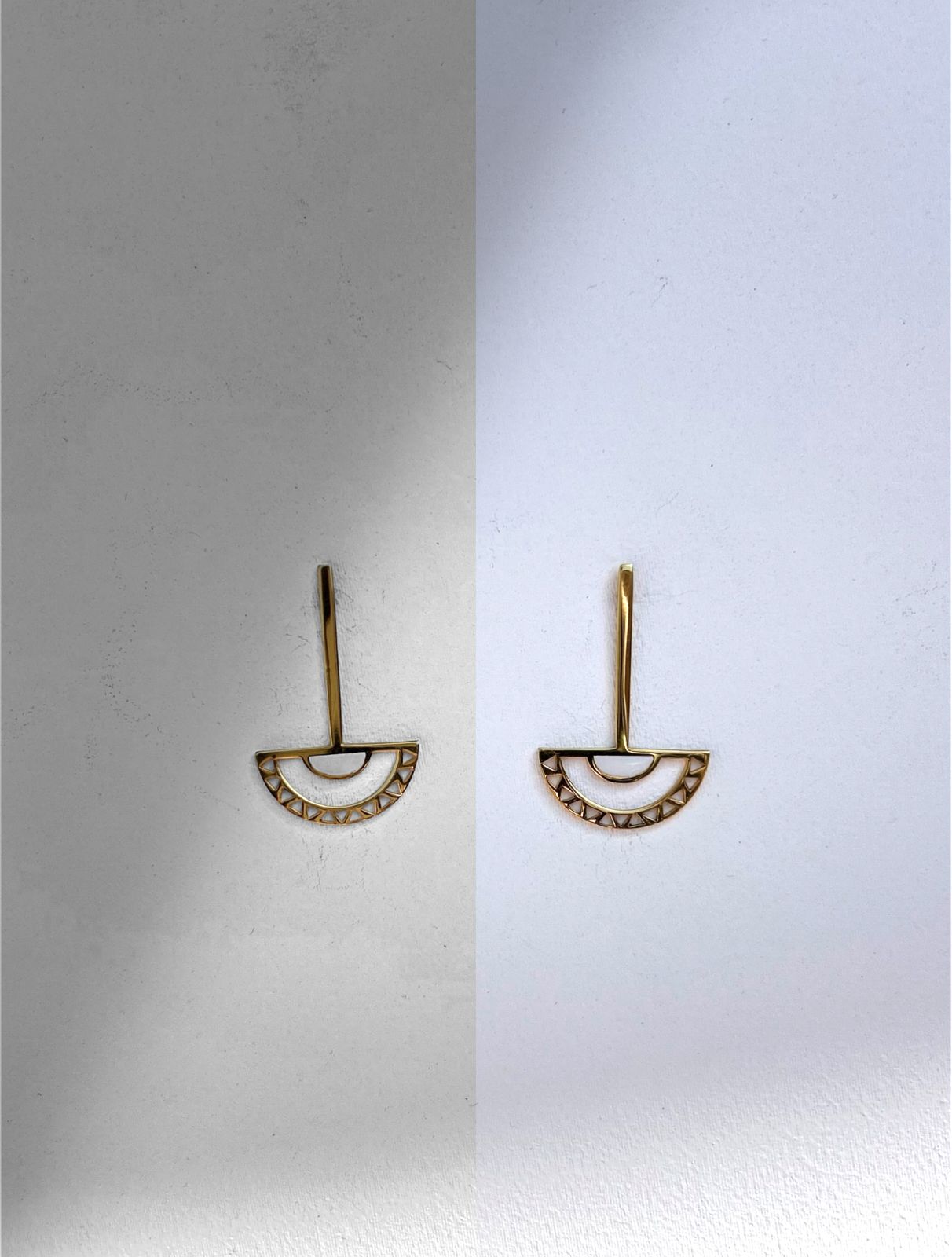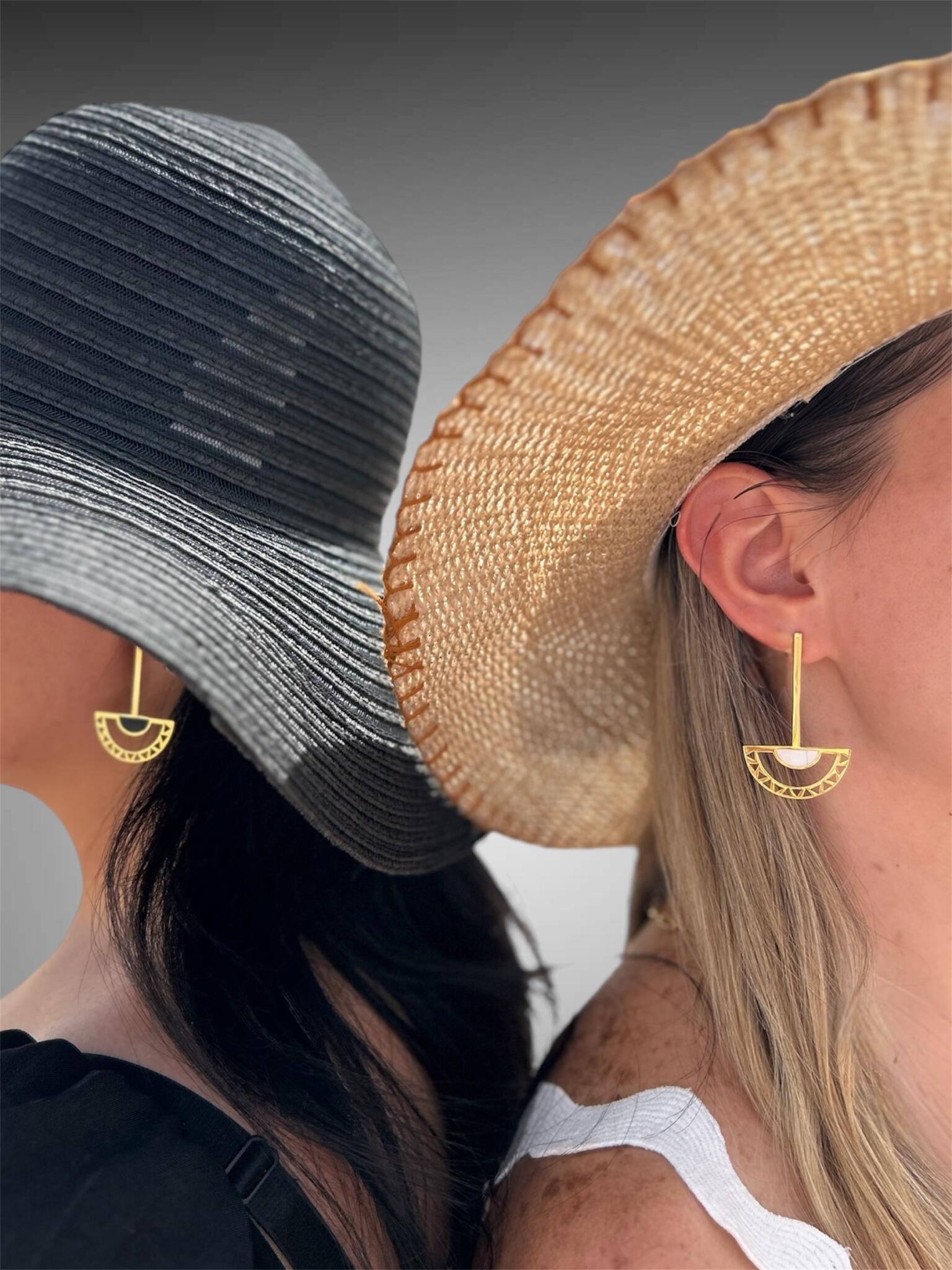 The Long Royal Earring embodies the grace and grandeur of ancient Egyptian artistry with a modern, elegant twist. Its elongated, slender silhouette flows into a polished half-circle, centered with a bold accent available in black or white, symbolizing both strength and purity.
