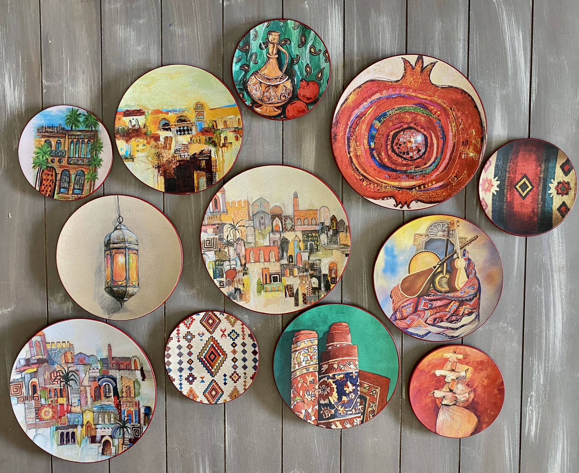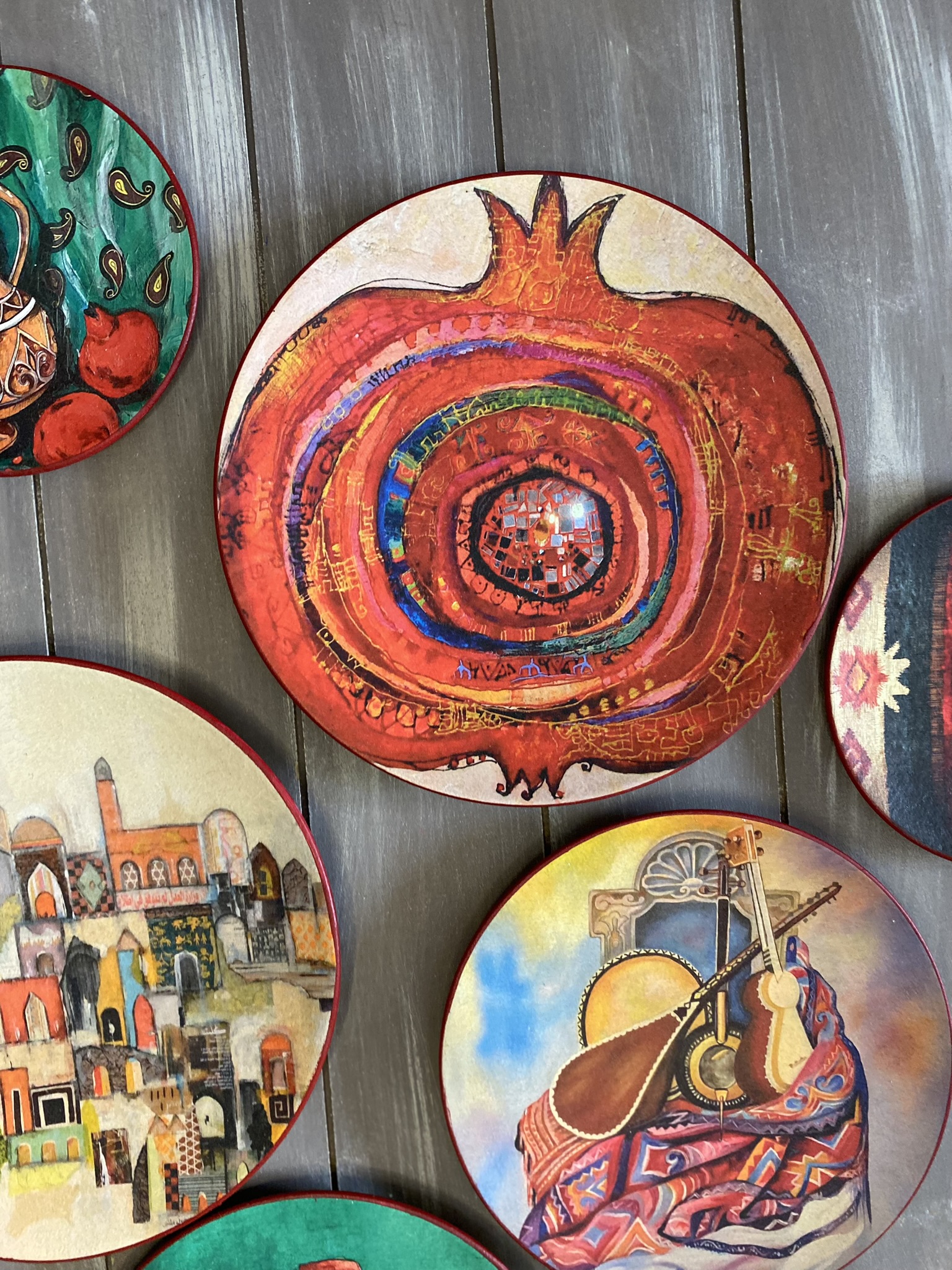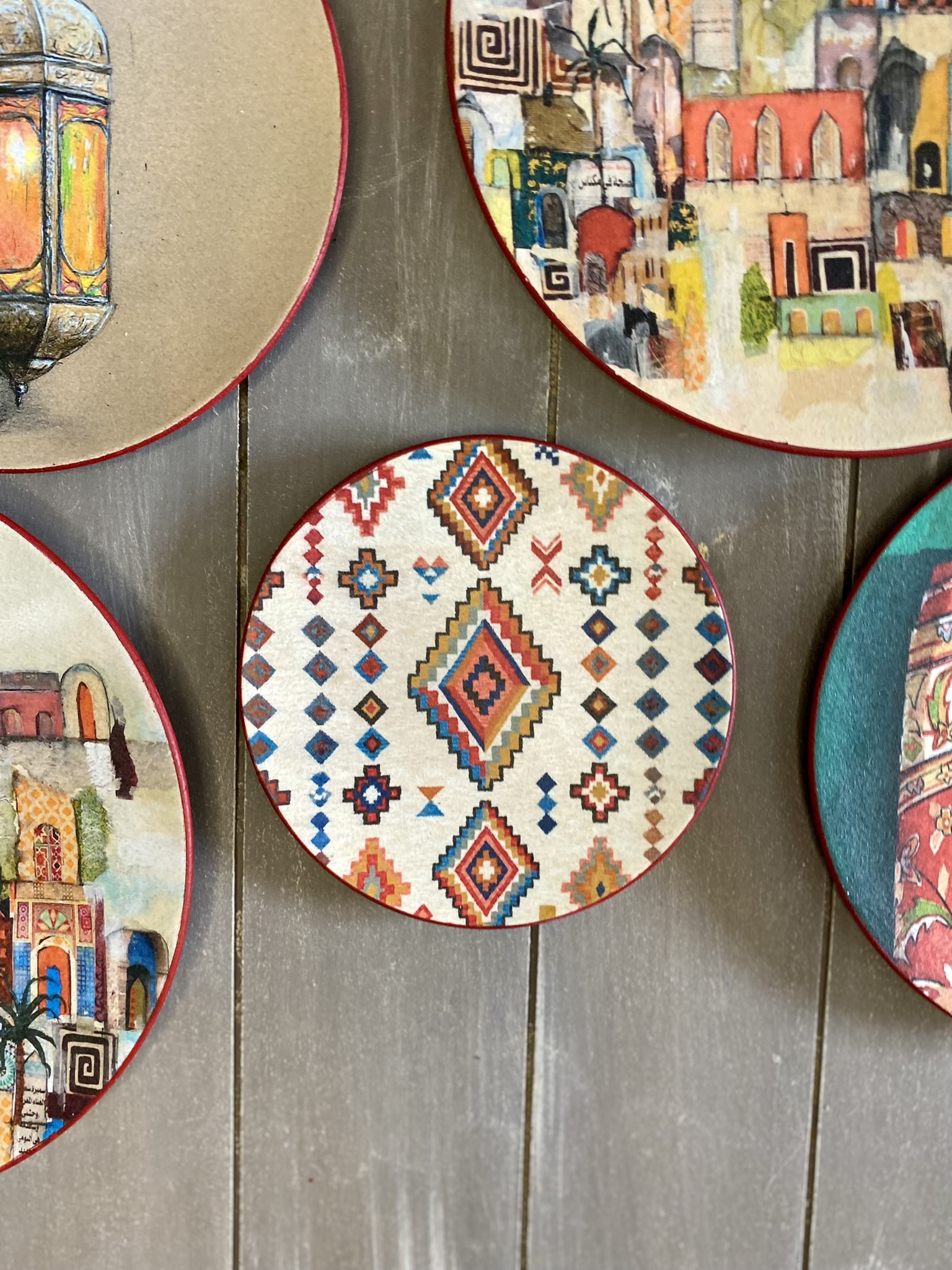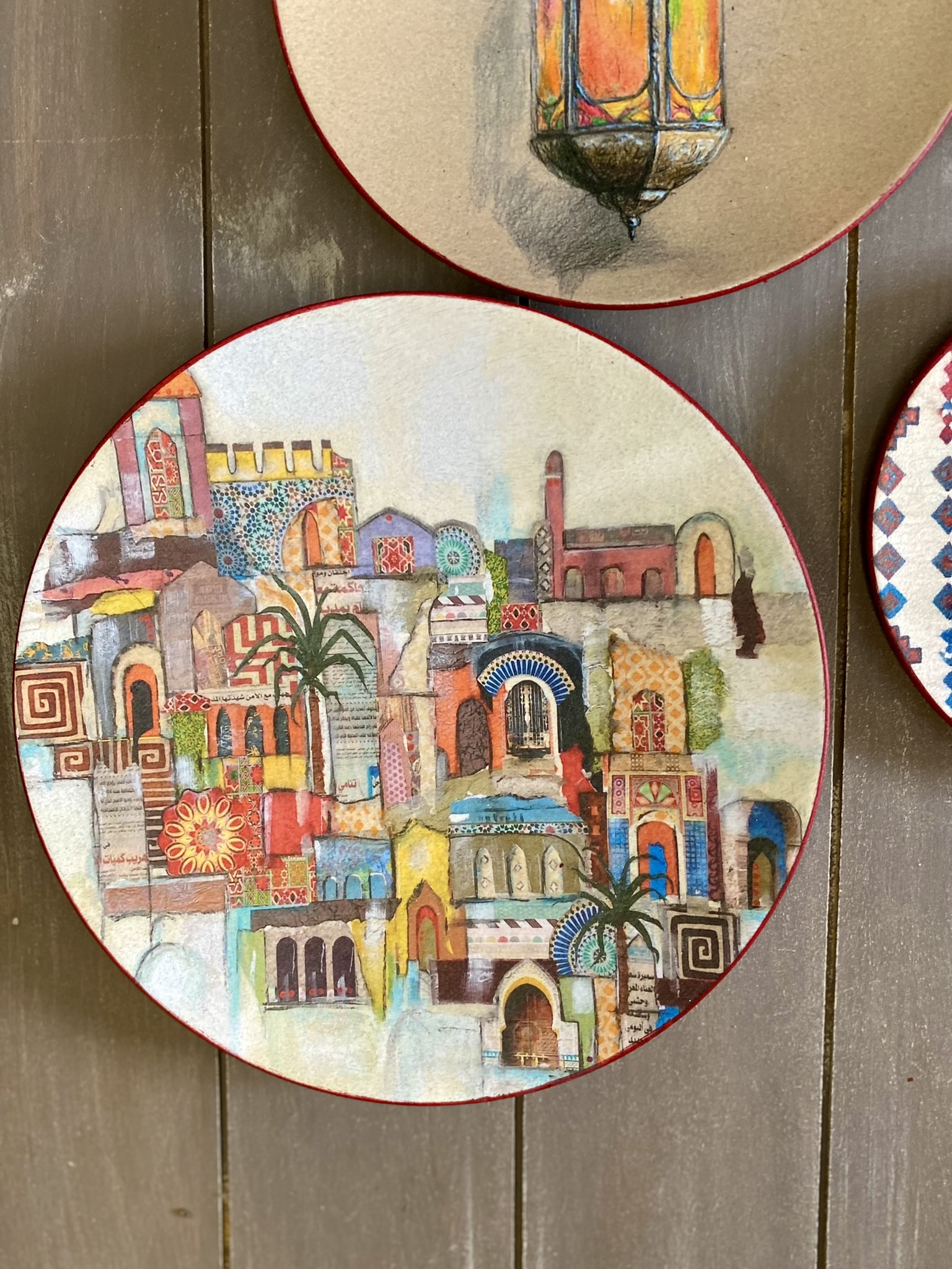 Decoupaged wall plates in eastern spirit