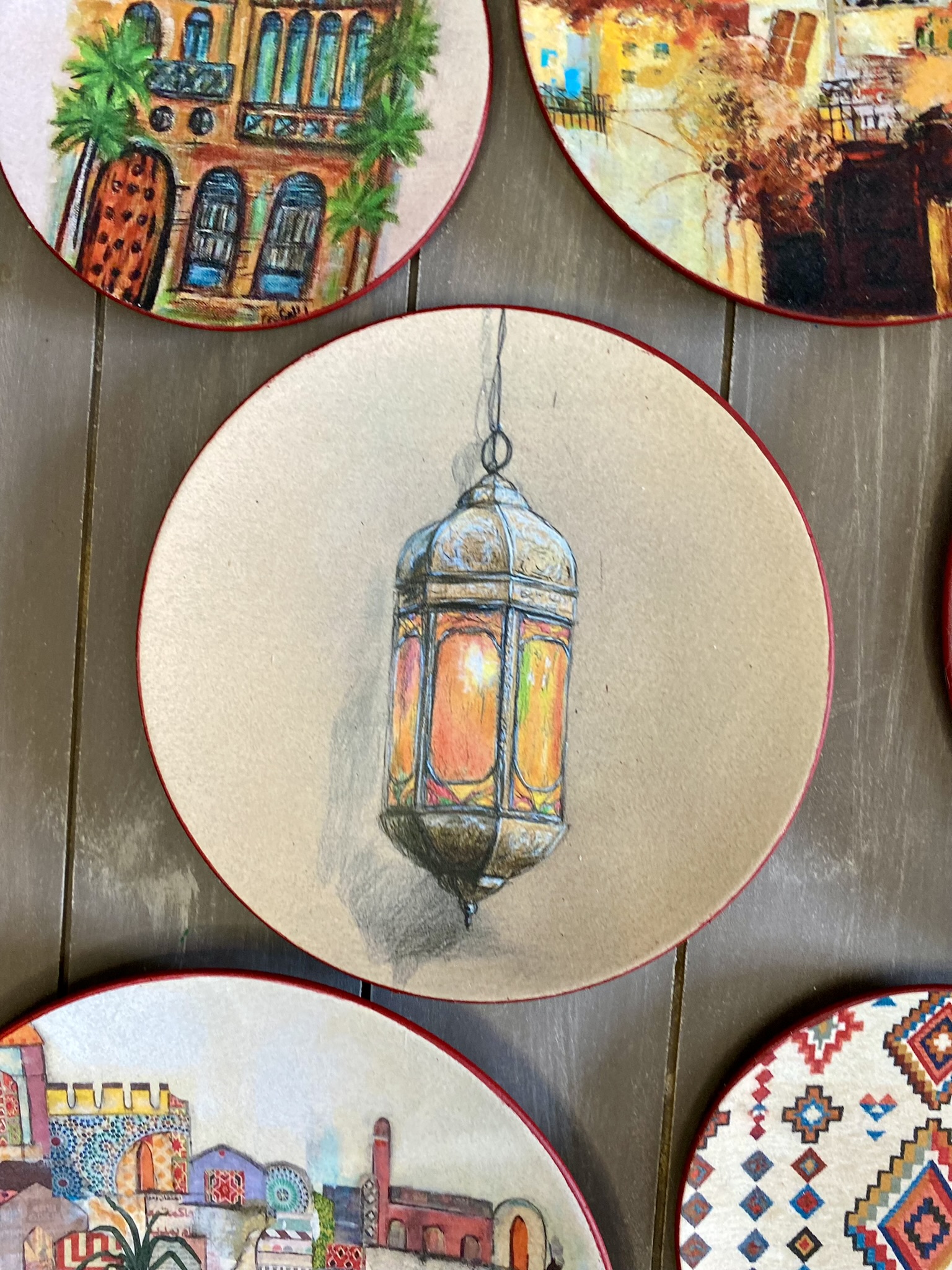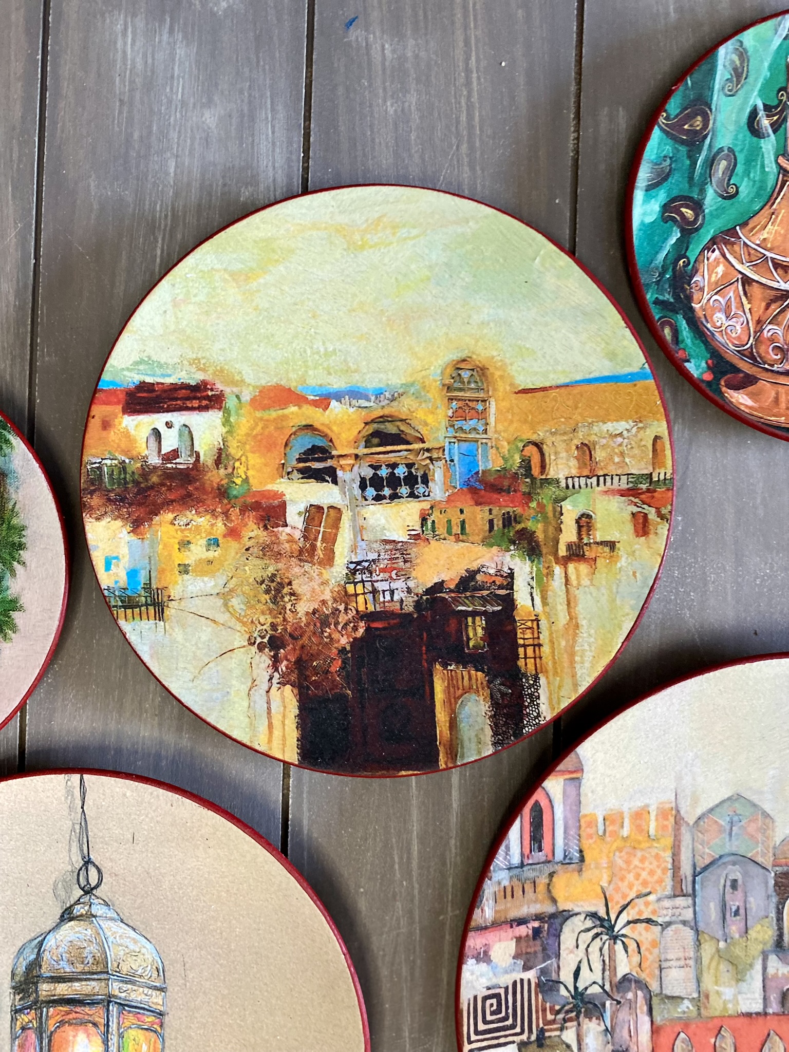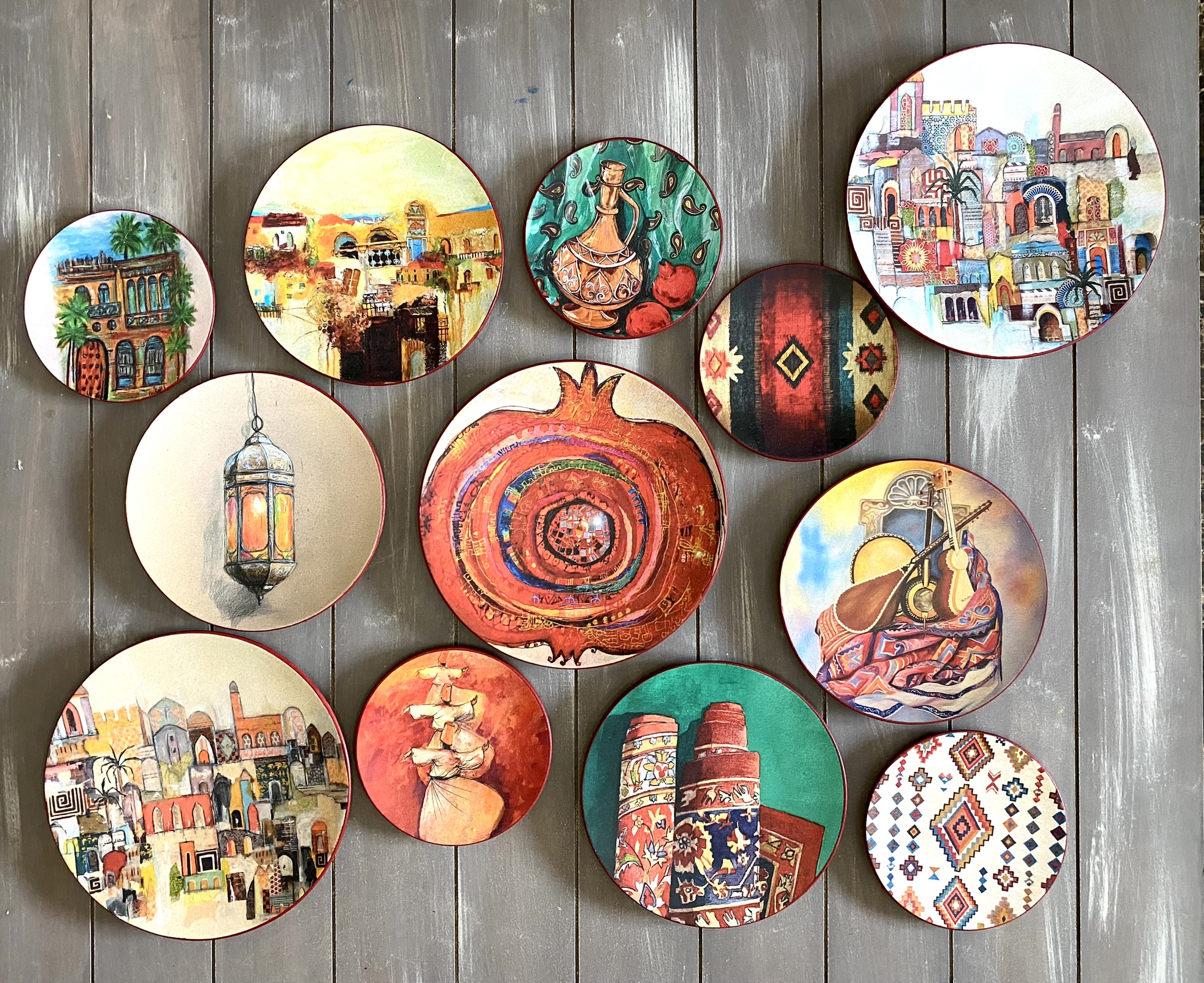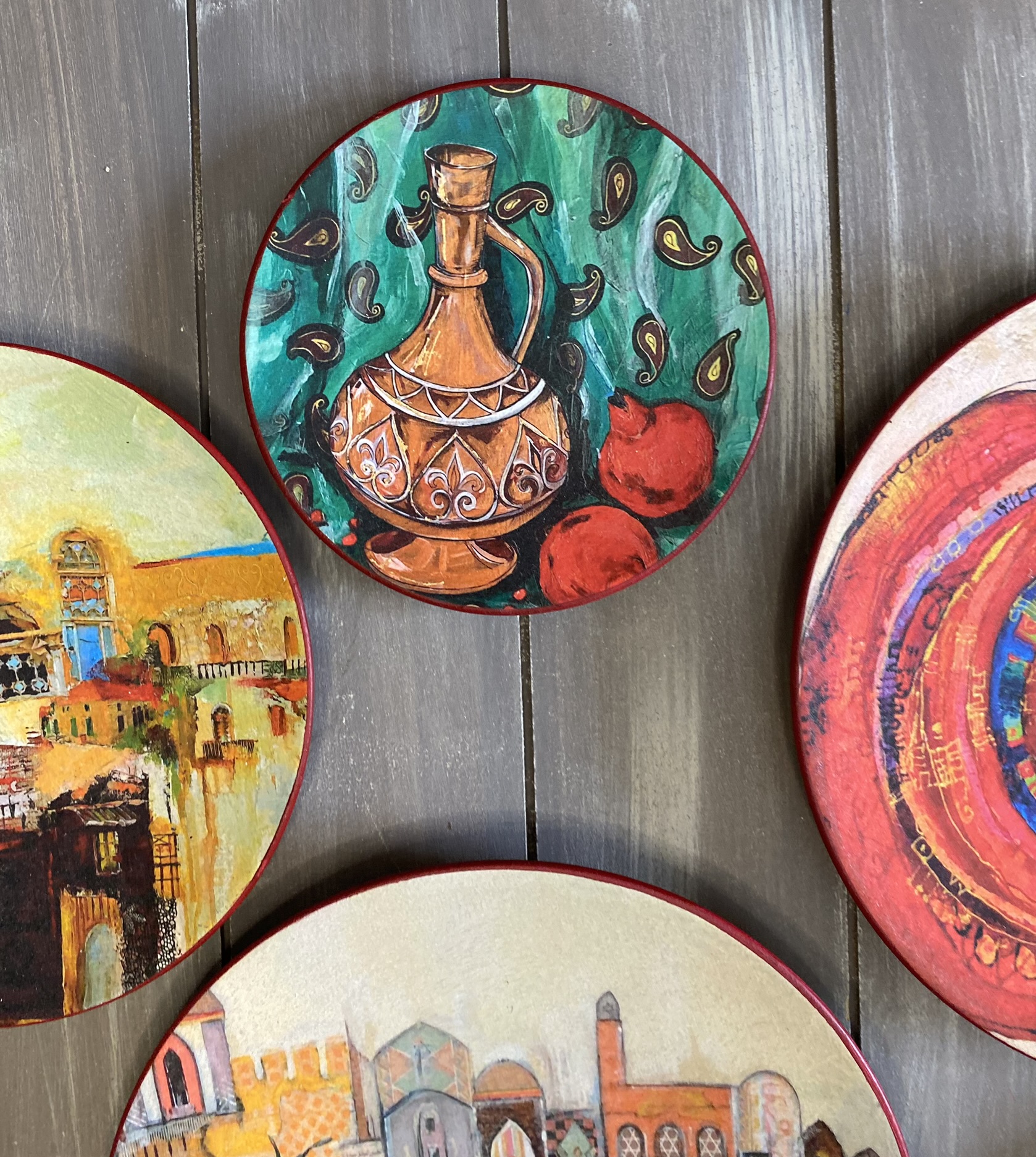 Decoupaged wall plates in eastern spirit
