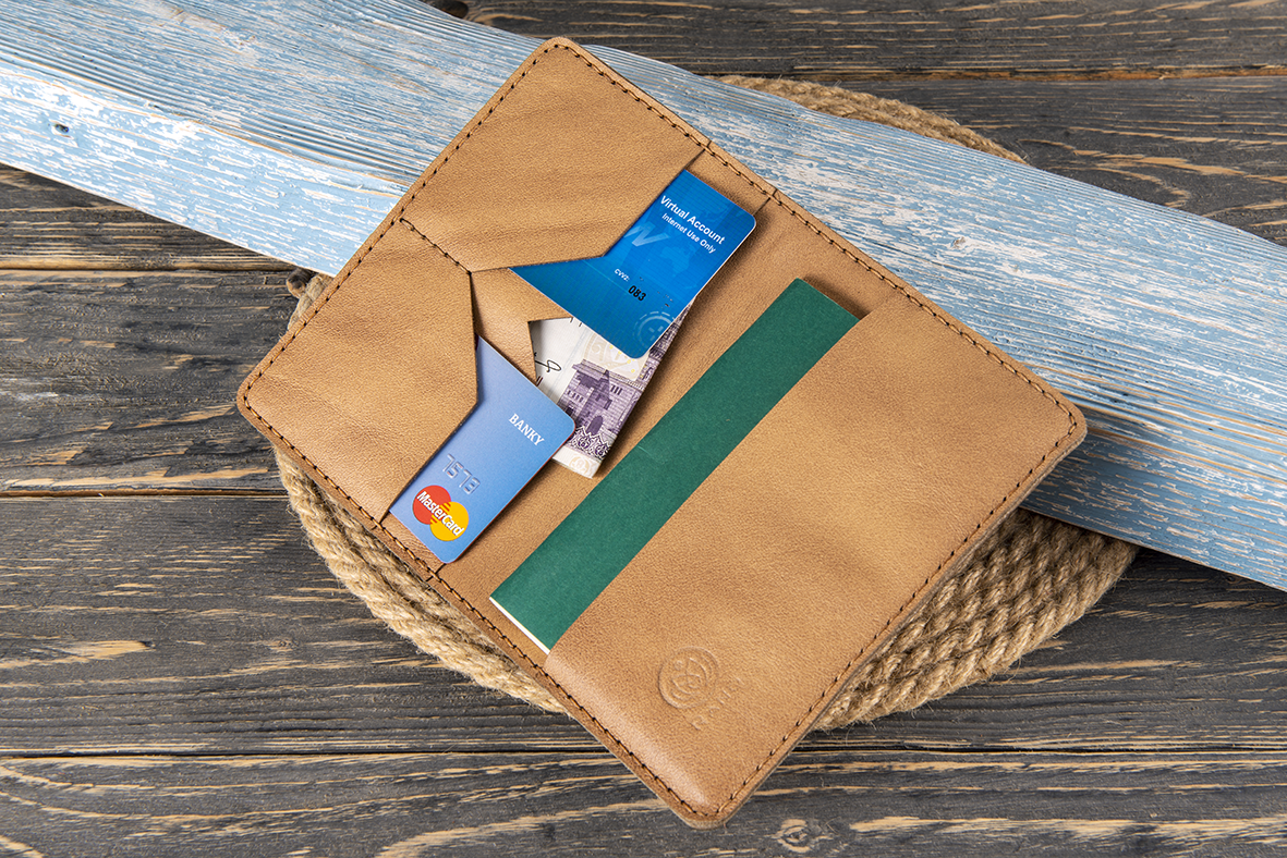 Sized at 11 × 15 cm, it’s designed to be as practical as it is beautiful. It features dedicated slots for cards, bank cards, travel documents, and a space for keeping important papers organized and secure. Its slim profile fits the passport perfectly without adding bulk, making it an ideal travel companion.