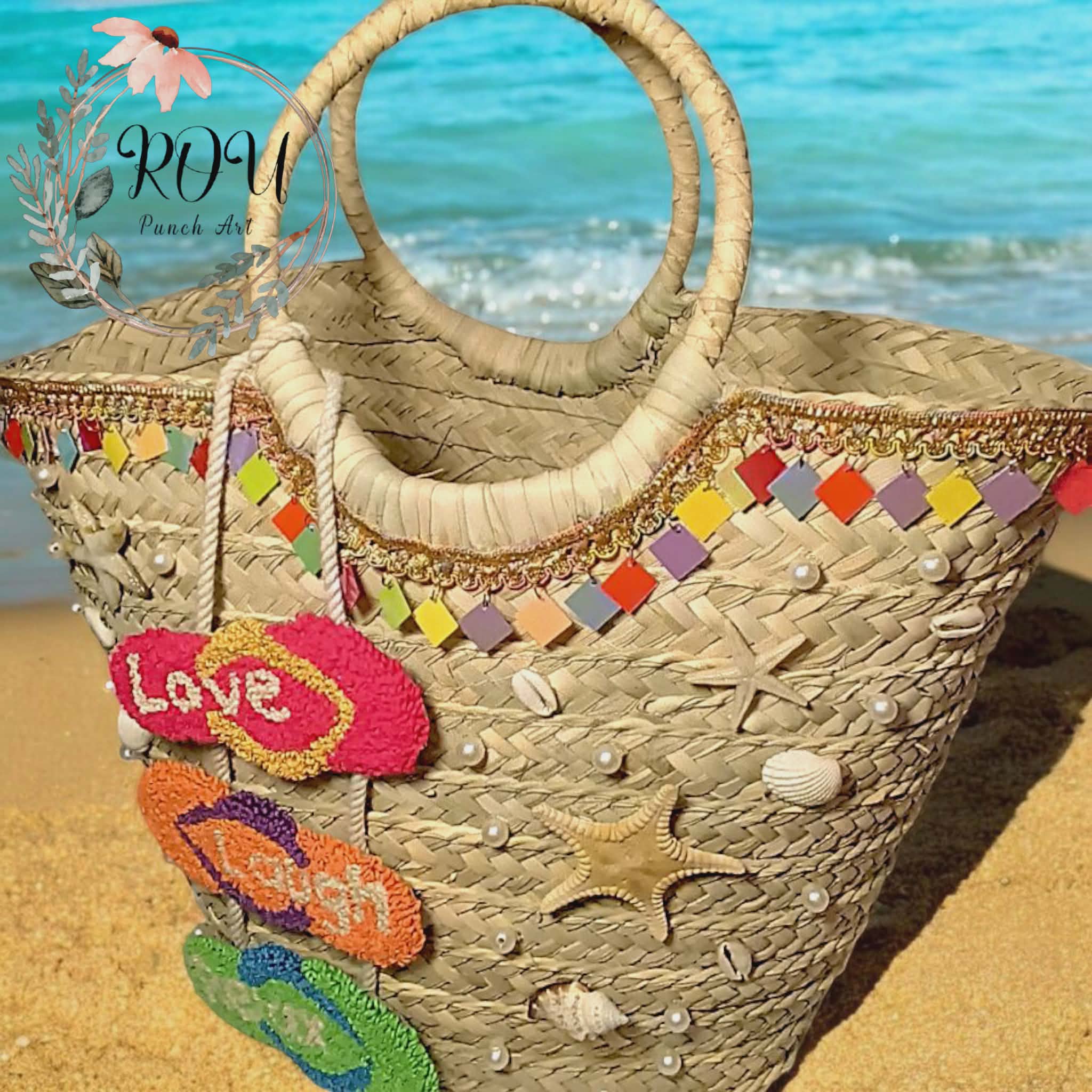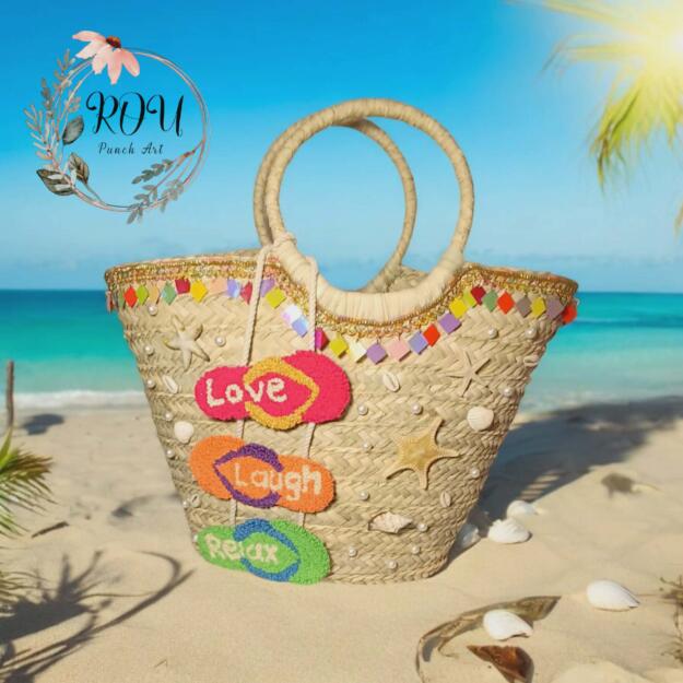 Handmade happiness in every stitch! Love, Laugh, Relax- your perfect beach day essential is here!