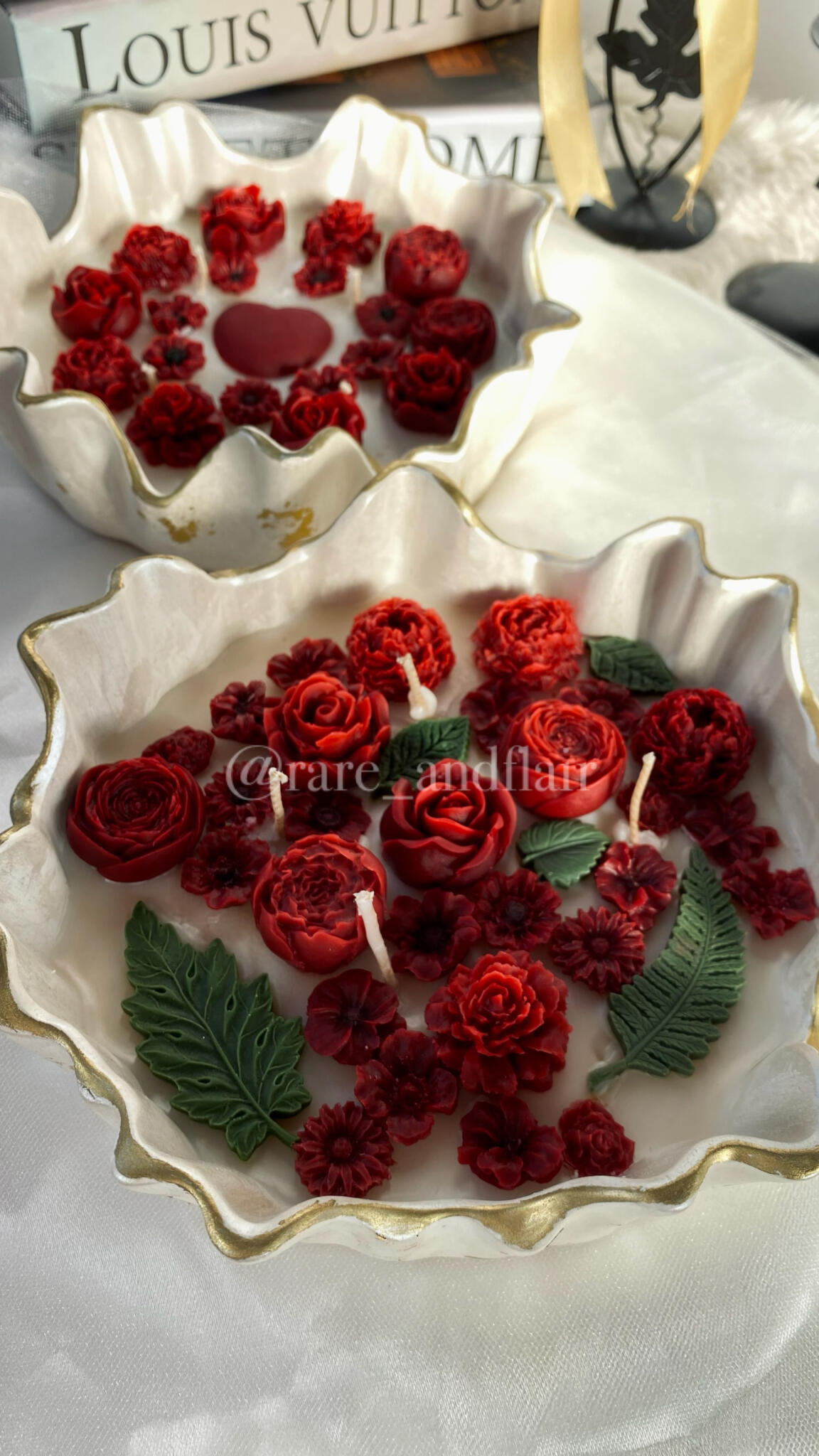 This large candle bowl is a true statement piece, designed to stand out in any space. It features rich red wax that instantly adds warmth, passion, and elegance to the room. The bold color makes it perfect for creating a cozy, romantic, or luxurious atmosphere, whether in your living room, bedroom, or on a special dining table.