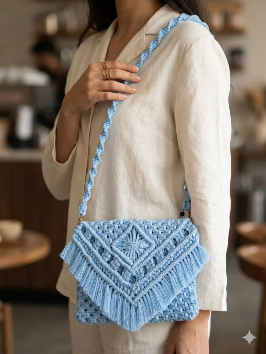 شنطة مكرمية هاند ميد بتفاصيل مميزة: 🤍 شغل يدوي بالكامل بدقة وحرفية