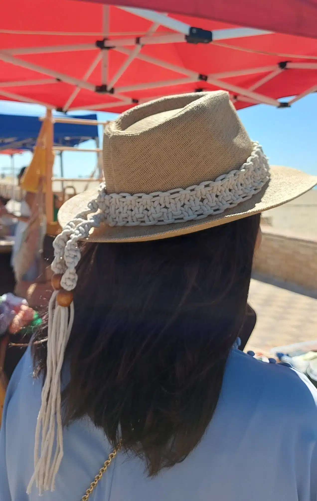 The neutral beige tone pairs beautifully with its intricate, cream-colored band