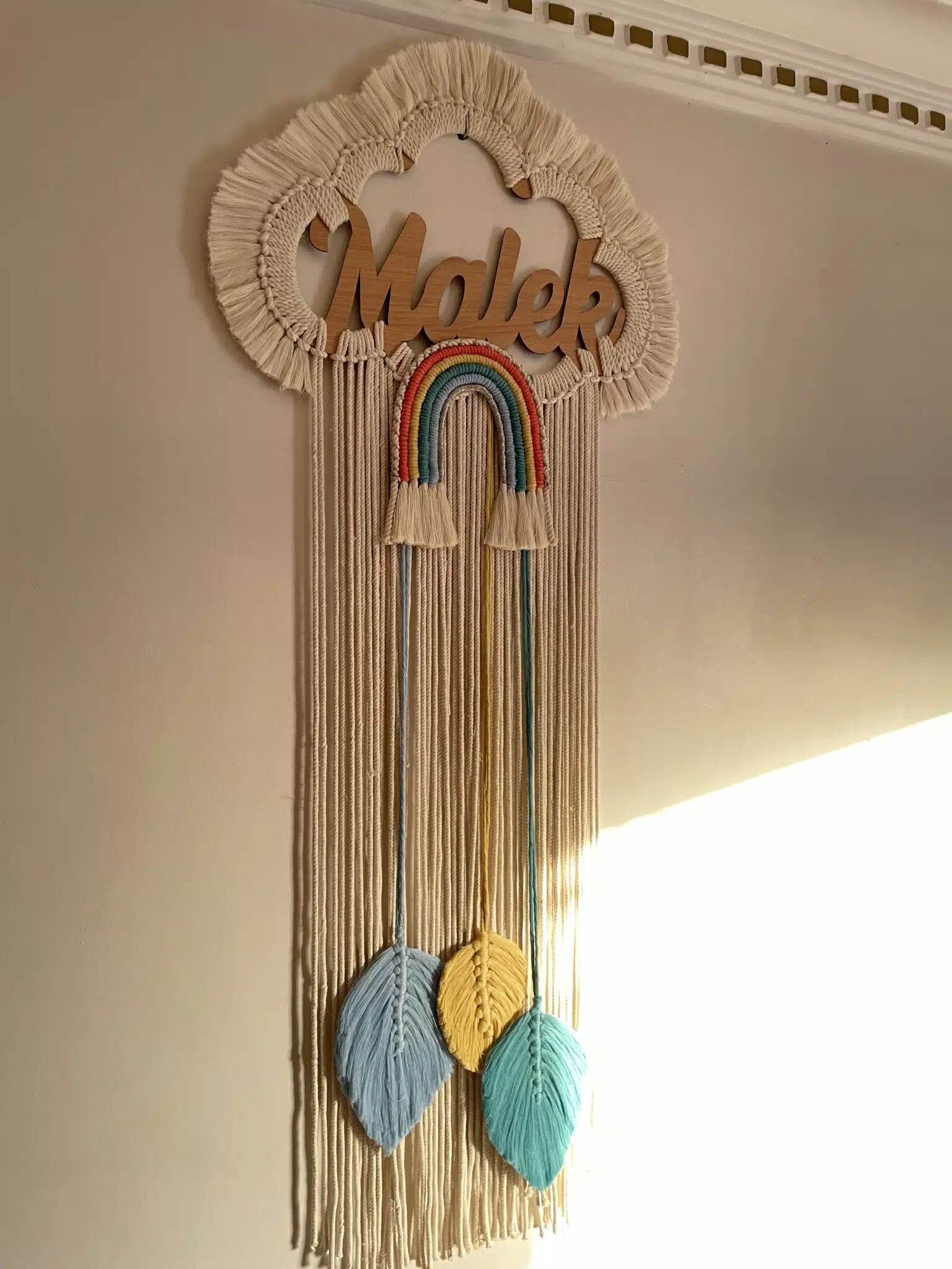 The macrame rainbow , feathers, and beautiful colours make the wall hanging unique . This wall hanging would be a perfect customized gift