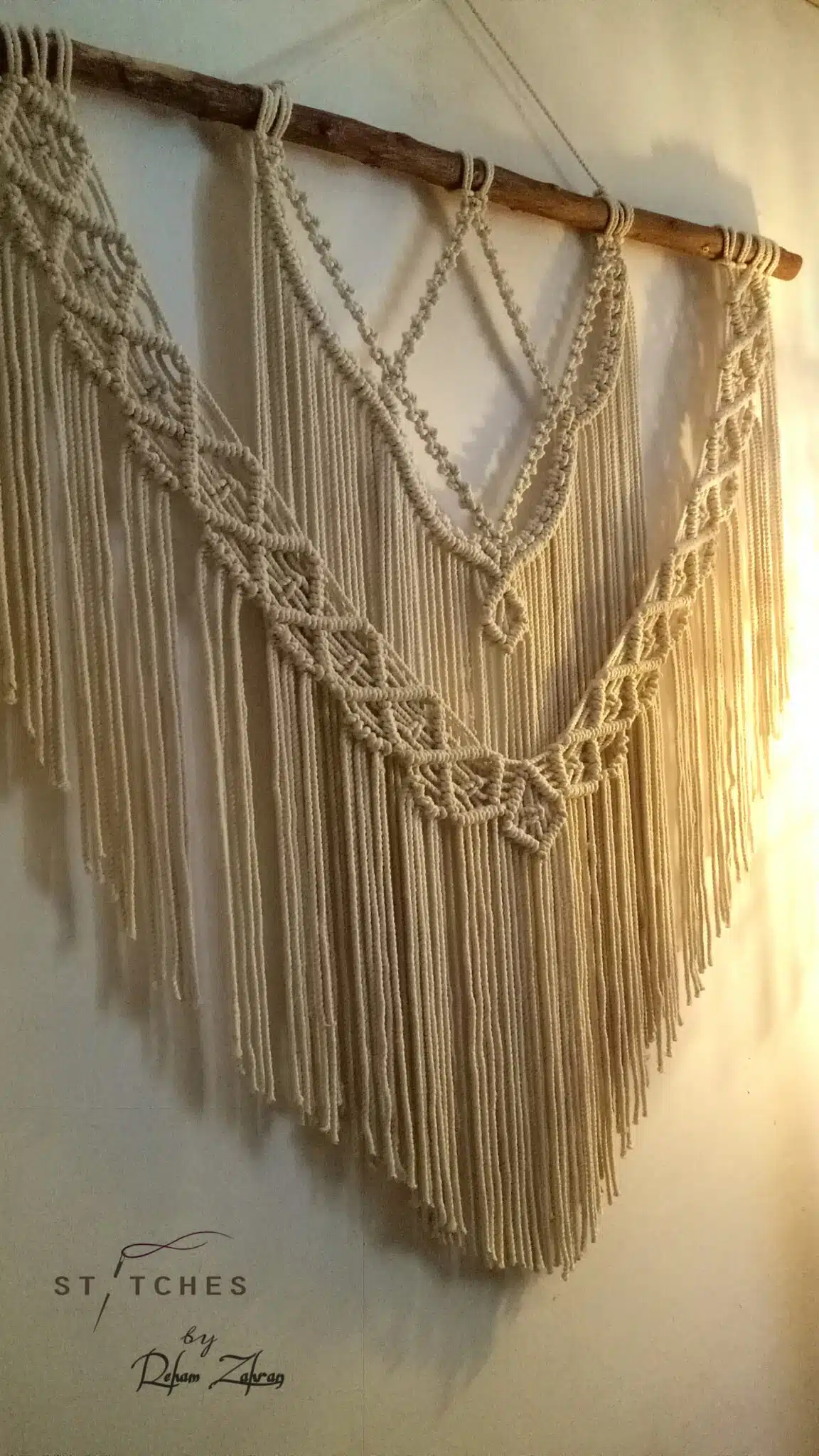 Made with 100% cotton on a wooden stick, the macrame wall hanger is completely handmade with well-crafted knots to provide your space with endless styling solutions.
