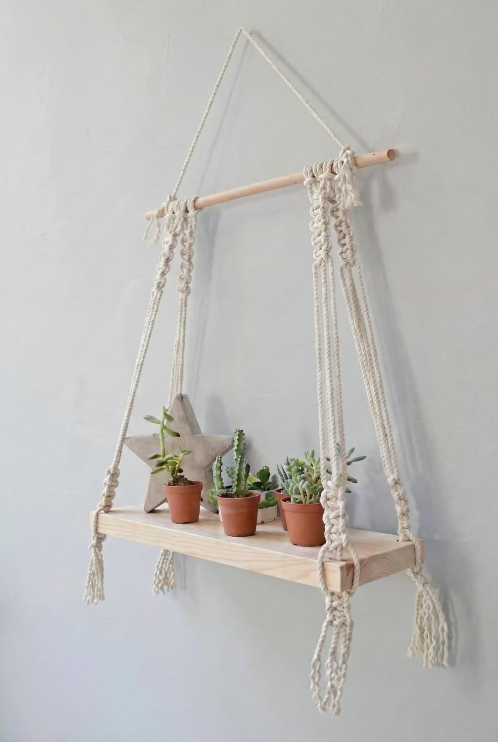 Macrame wall hanging shelf – Wood