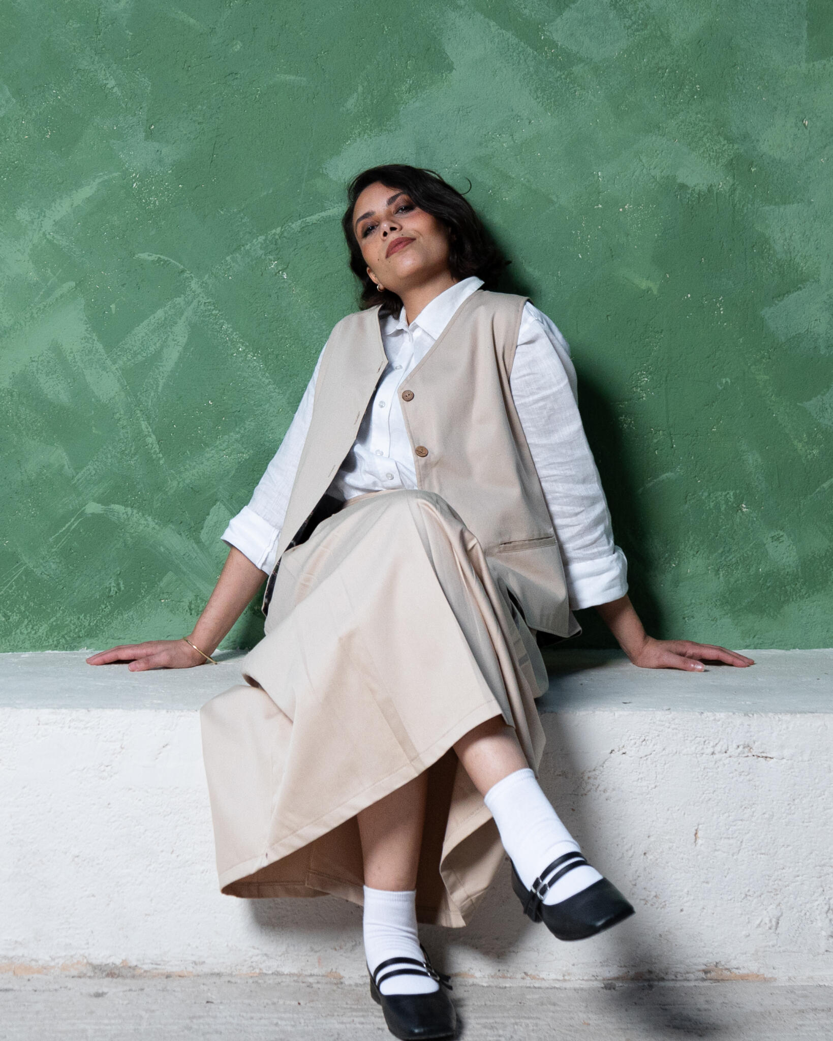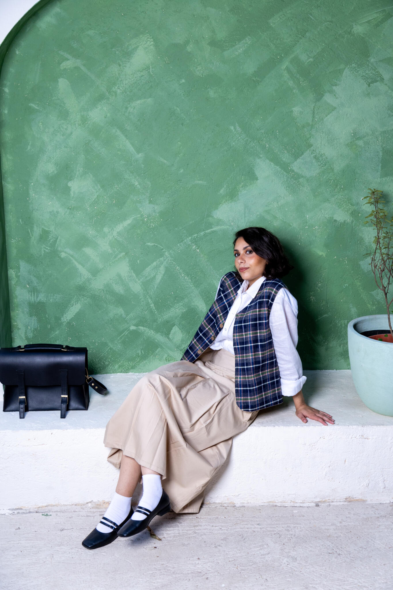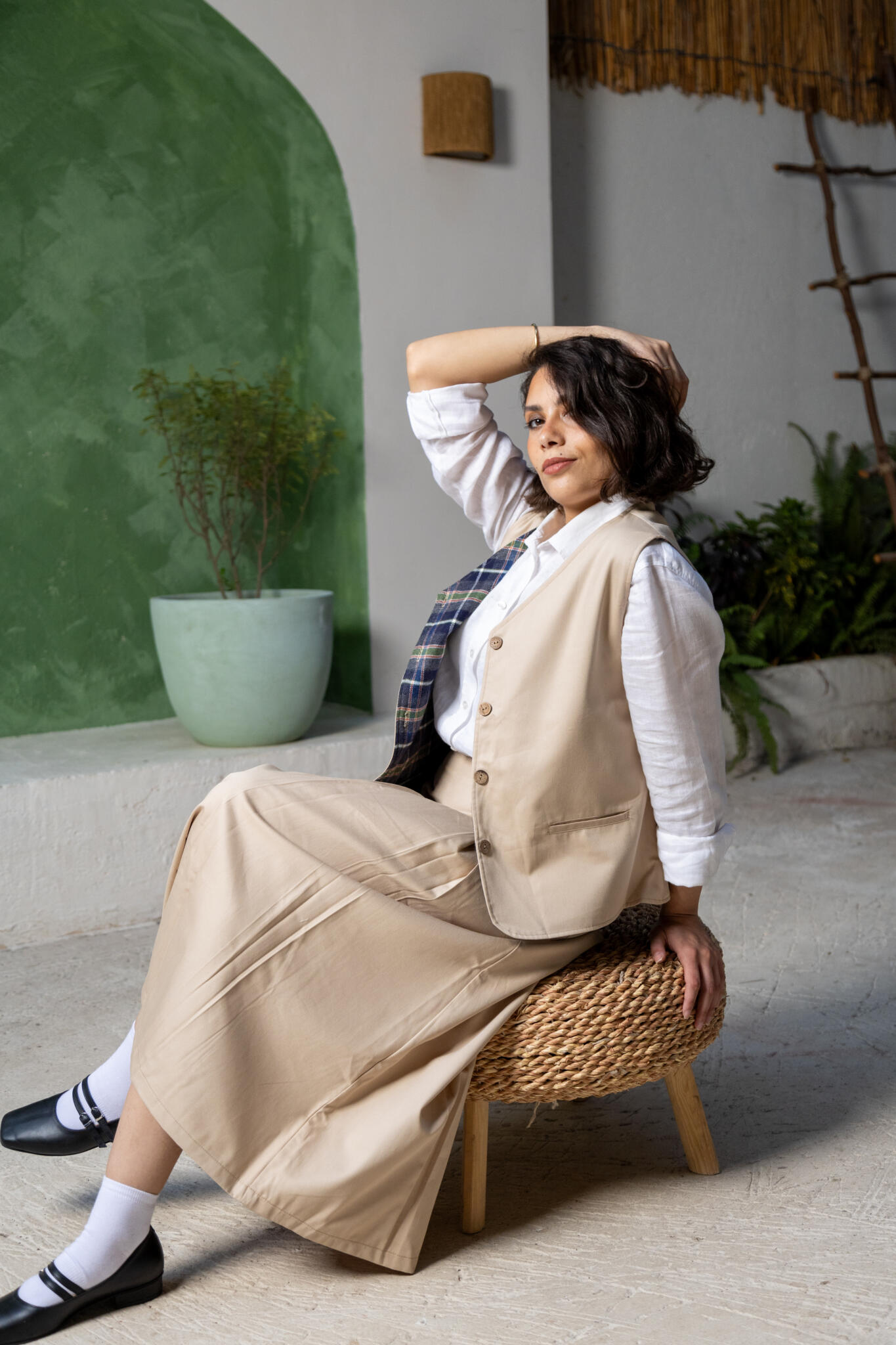 The Malak Vest is double- sided piece designed for versatility and timeless charm. One side offers a clean, minimal aesthetic, while the other reveals a subtle plaid pattern that adds a hint of winter warmth. Crafted from the finest Egyptian cotton, it features practical side pockets for every day ease and sustainably produced coconut buttons made in Egypt. The Malak Vest beautifully embodies the essence of sustainability- thoughtful design, natural materials, and lasting elegance.
