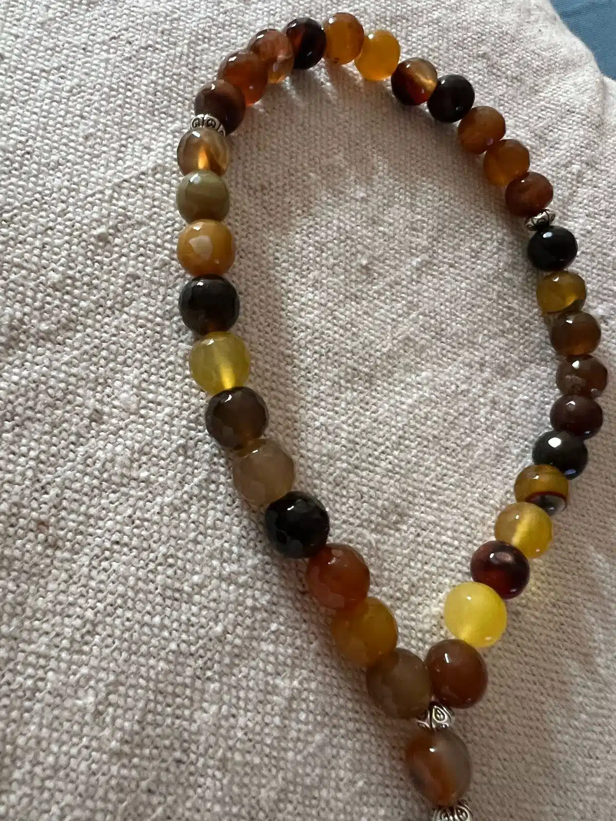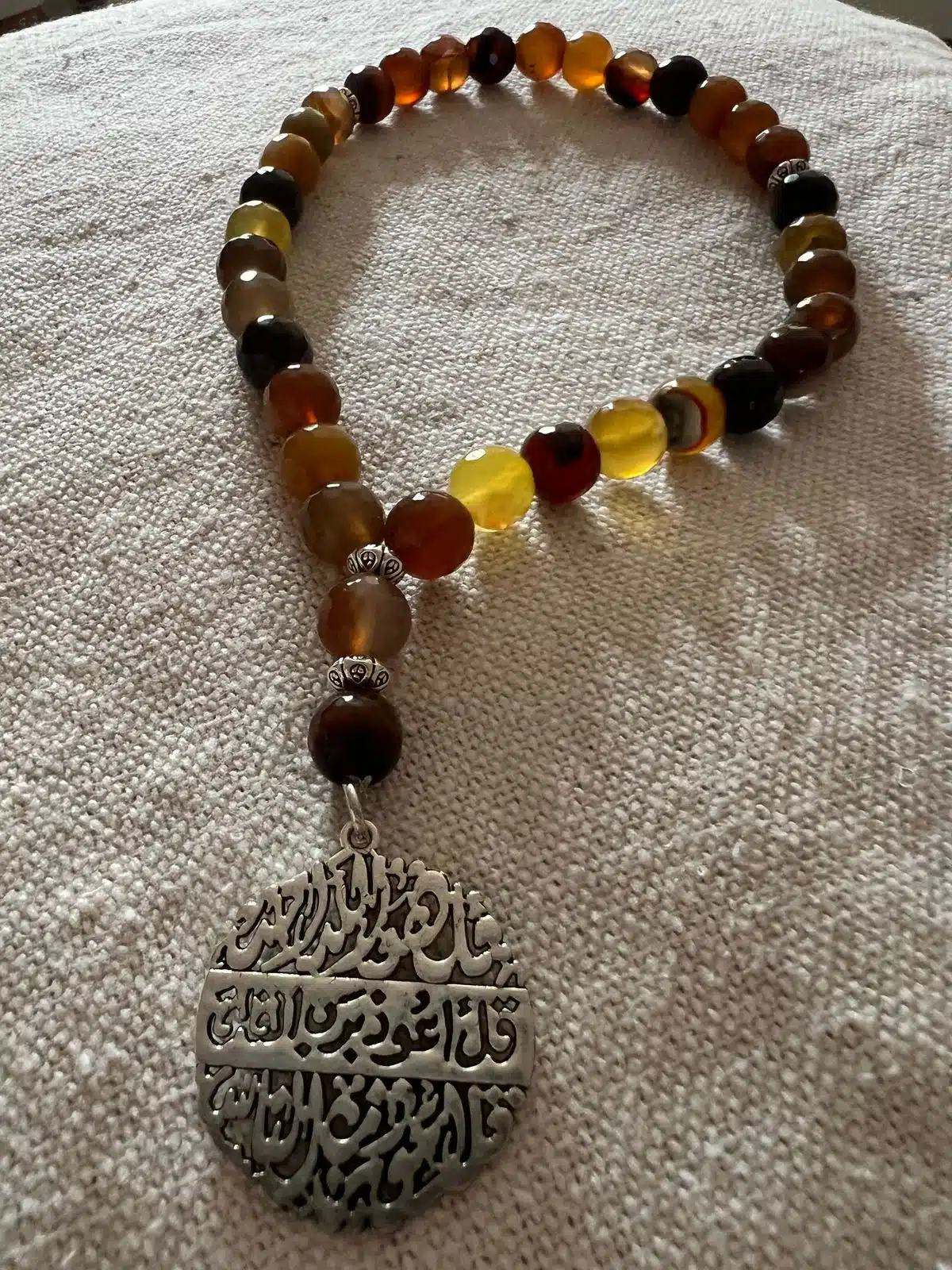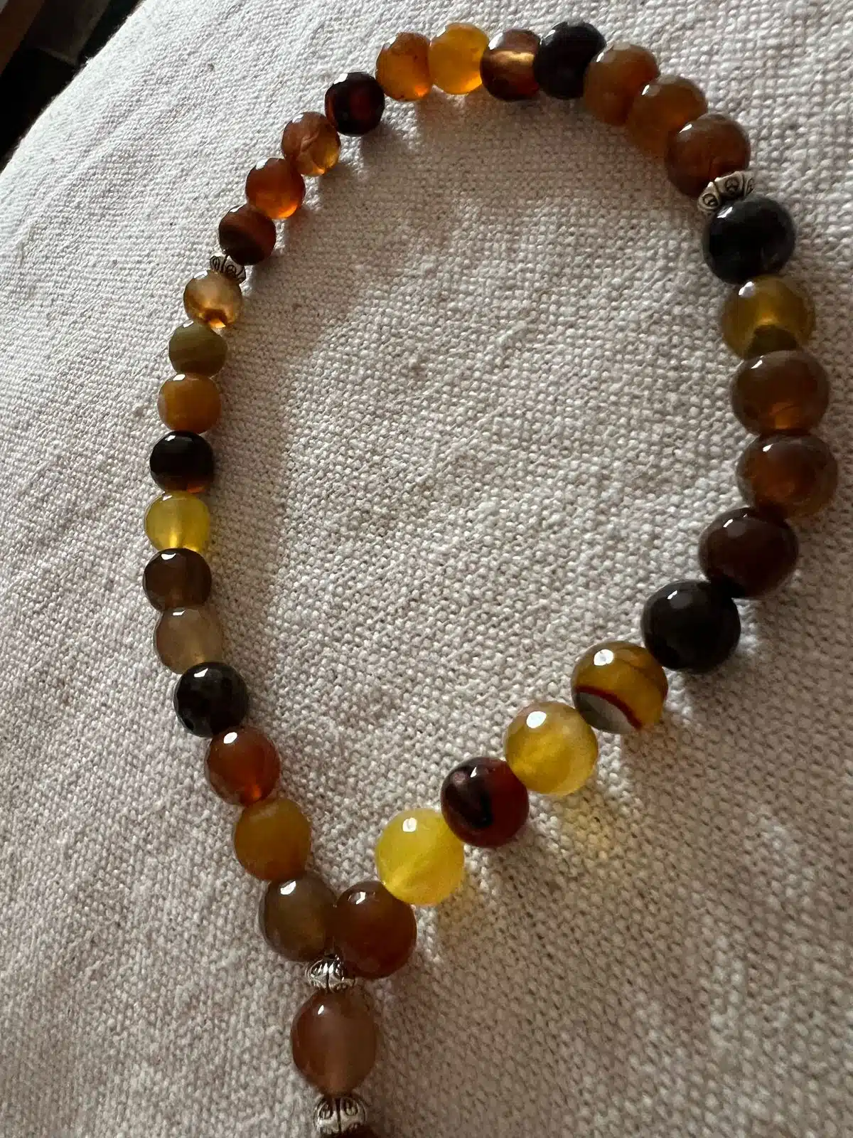 Mawaddah Sebha of 33 large stones 10 mm in different dark brown shades and silver dangling