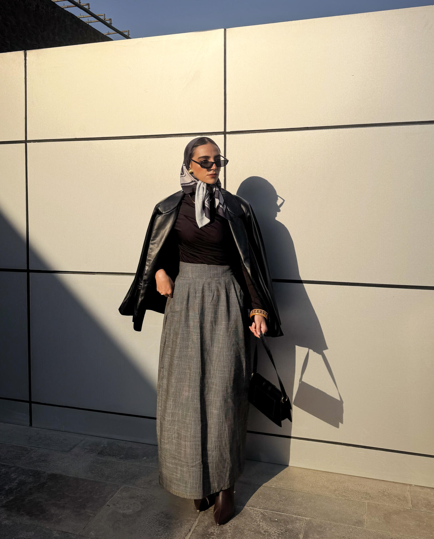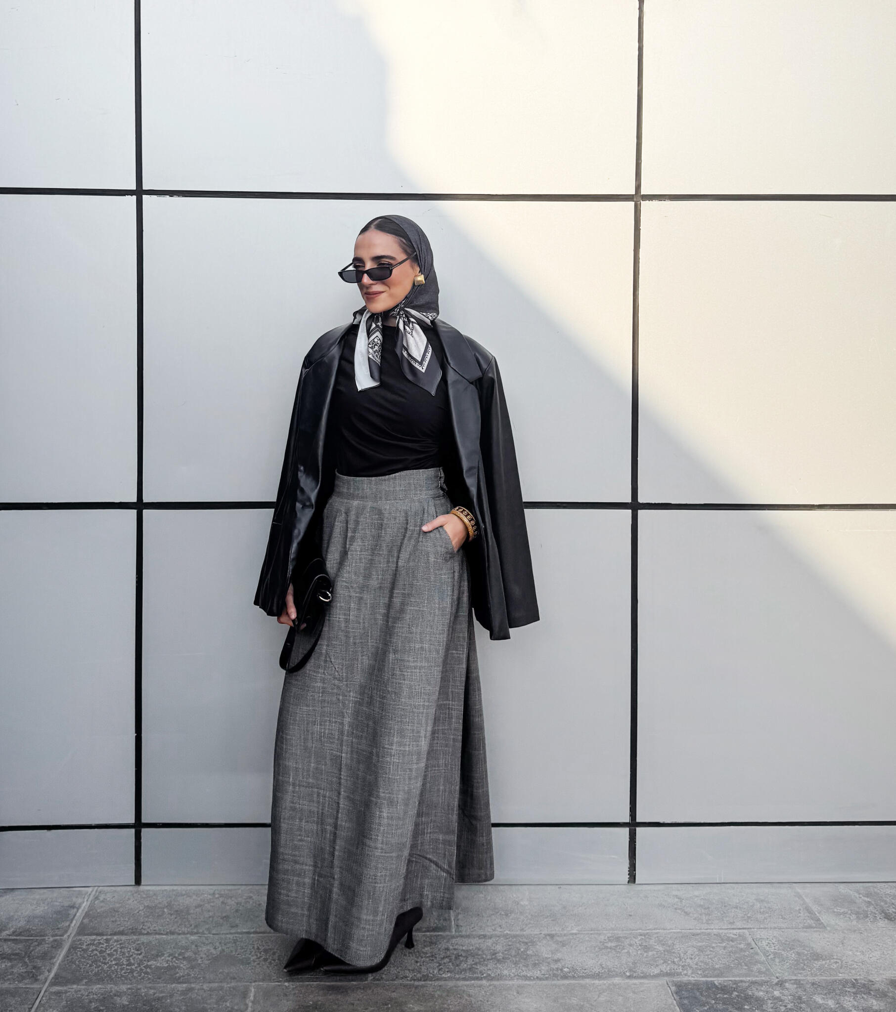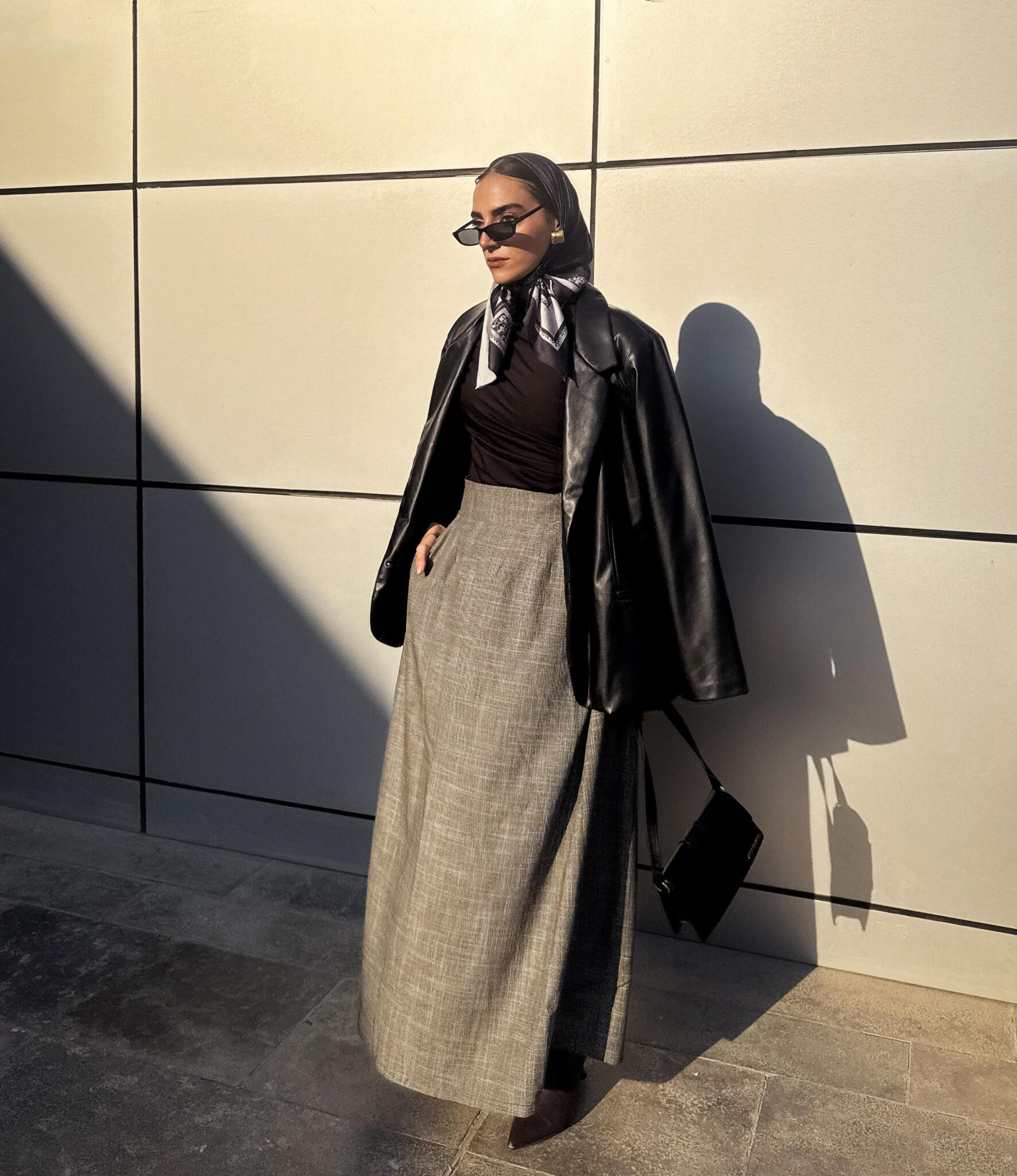 High-waist maxi skirt ,made from a wool-blend yarn. side pockets with side metal hook and zipper.