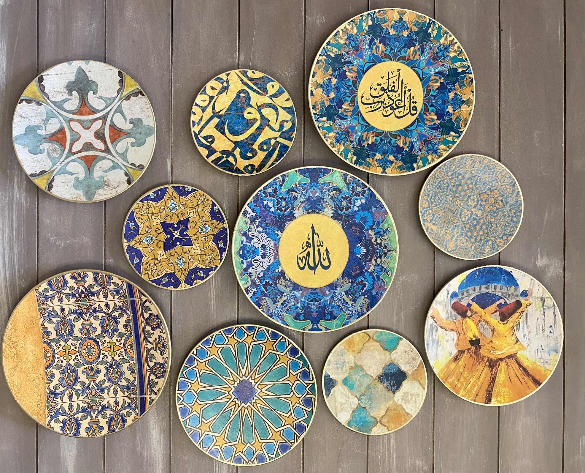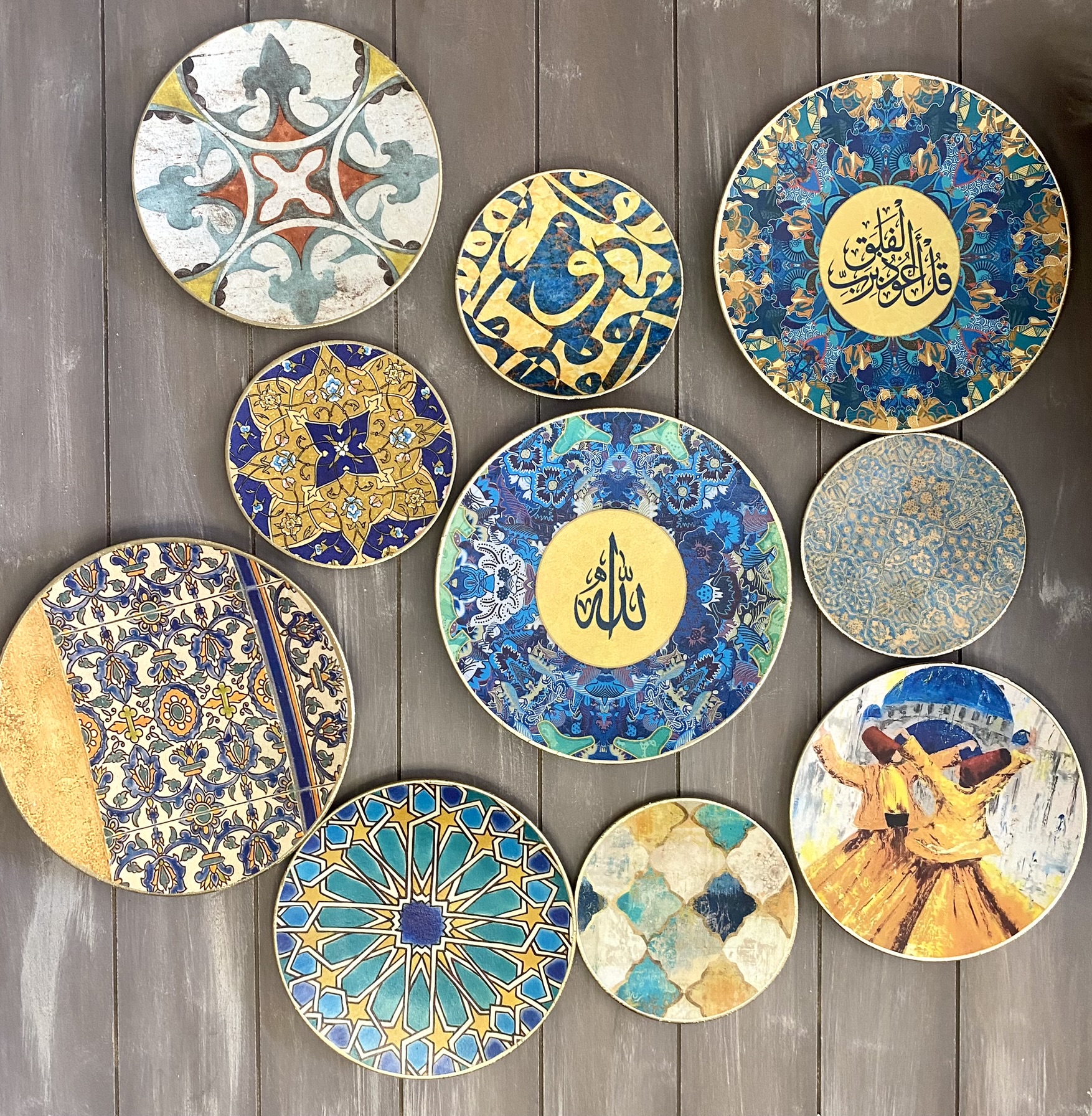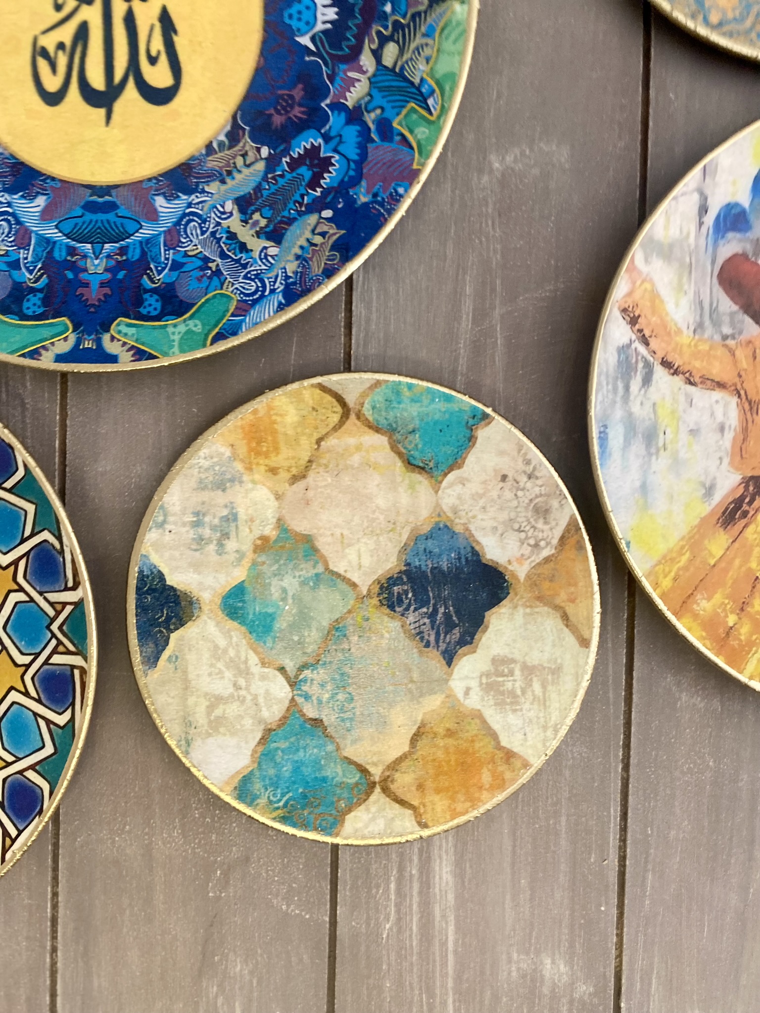 Decoupaged handmade wall decor plates