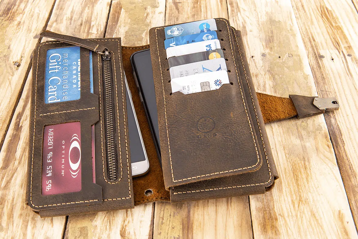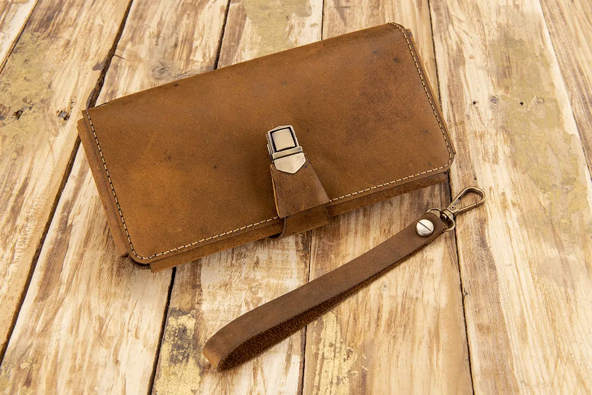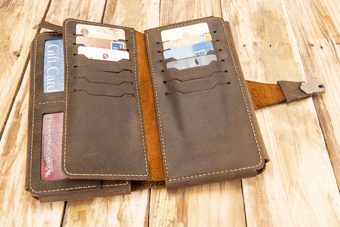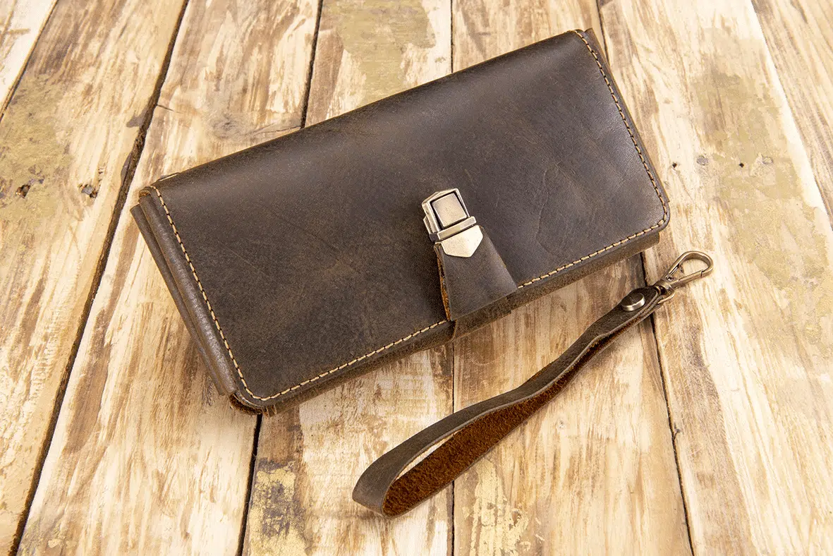 Men’s handbag Pull-up skin 20 card pockets Magic pocket Mobile pocket Pocket money Zippered pocket