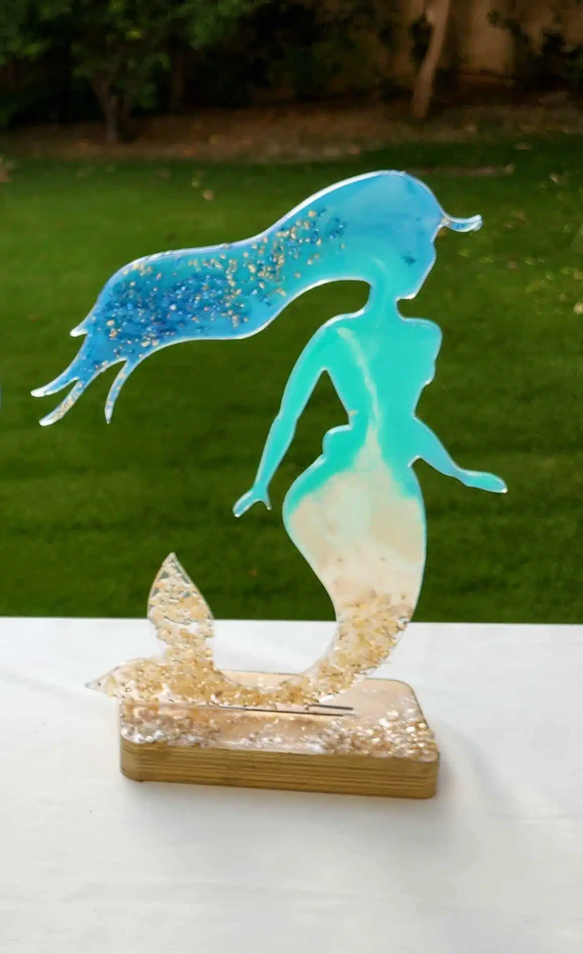 Mermaid on stand Made from different materials acrylic, resin, wood and natural seashells …